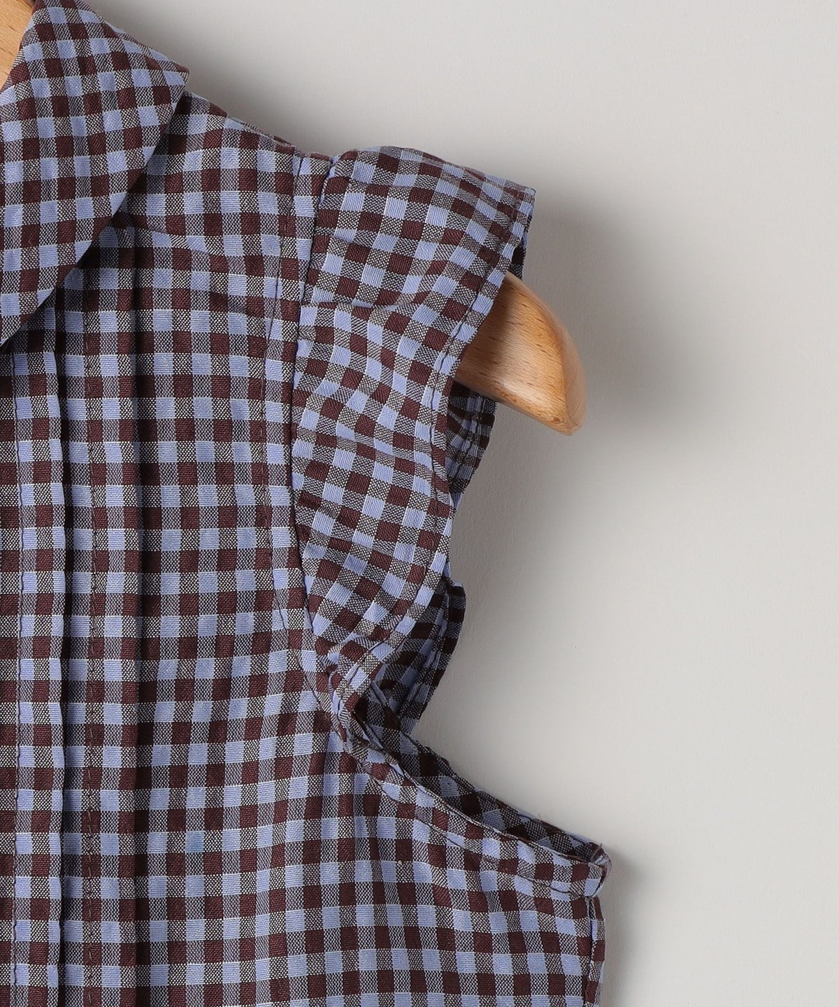 今シーズンは新たに軽やかでより薄手な素材感のギンガムチェックが登場!ライトブルーとブラウンのカラーリングが清涼感たっぷりな一枚。