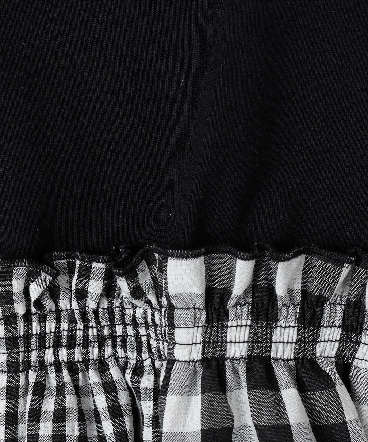 ブラックは、スカート部分を大きさの異なるチェックのテキスタイルで、シンプルながらも目を惹く一枚に仕上げました。