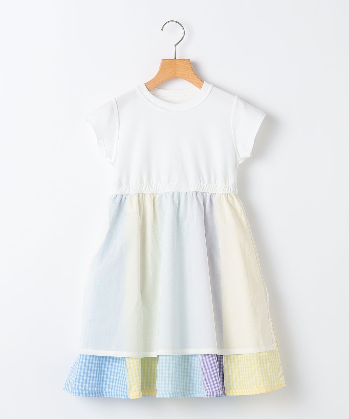 オフホワイトは、パステルカラーのギンガムチェックを贅沢に使ったクレイジーパターンでポップな一枚に!