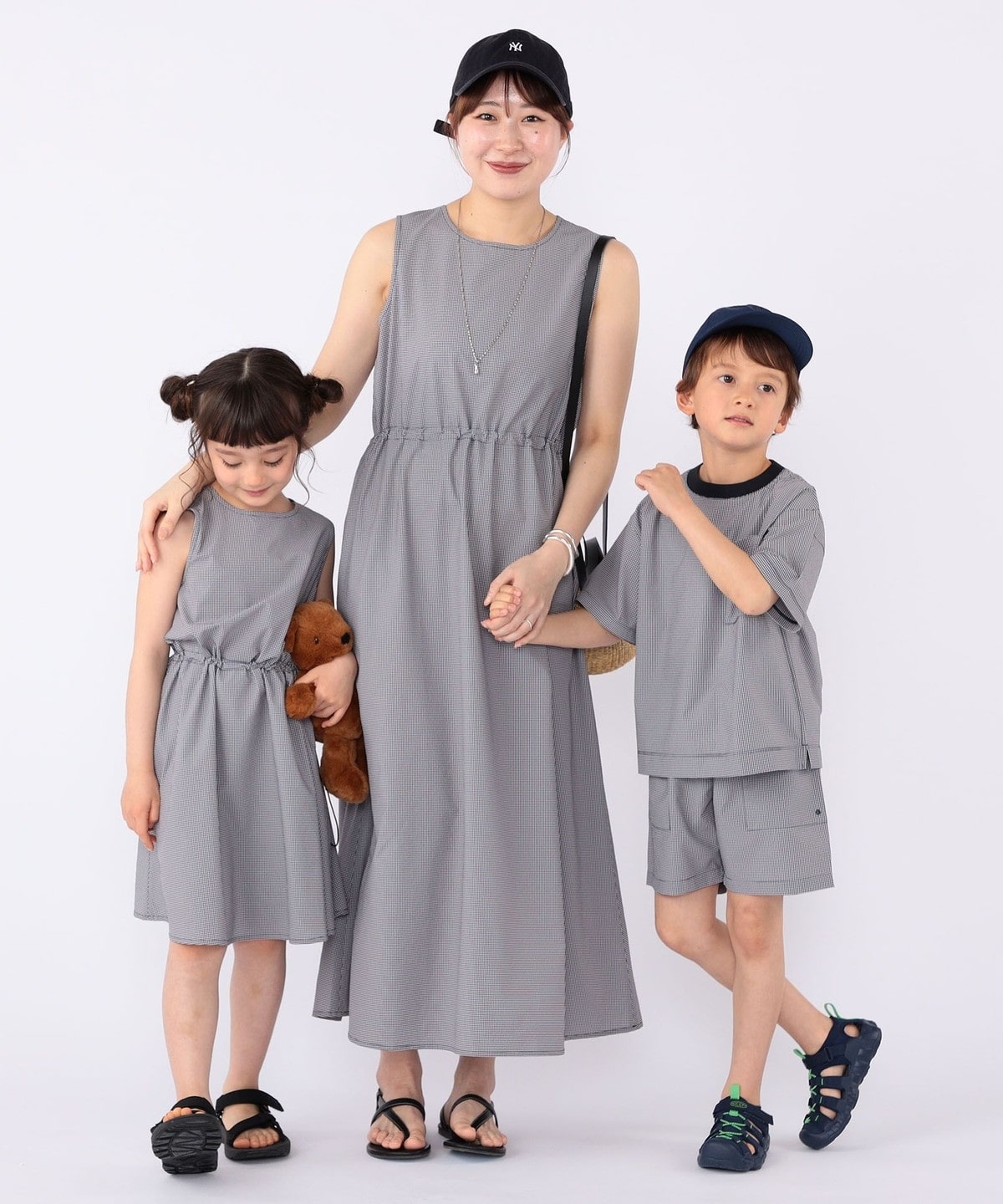 KIDSサイズは元気で動きやすい膝丈、大人サイズはリラックス感のあるマキシ丈でご用意しました。