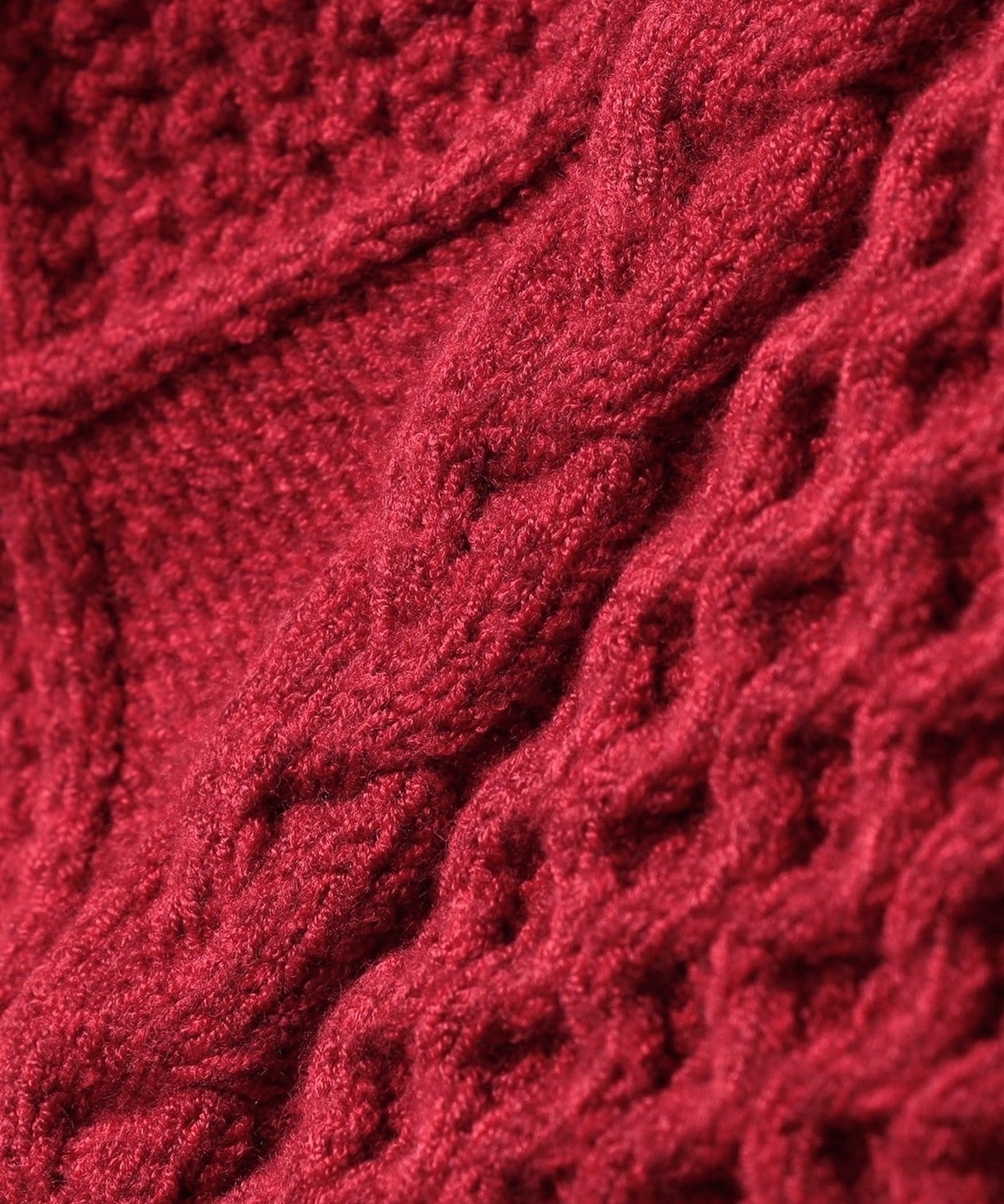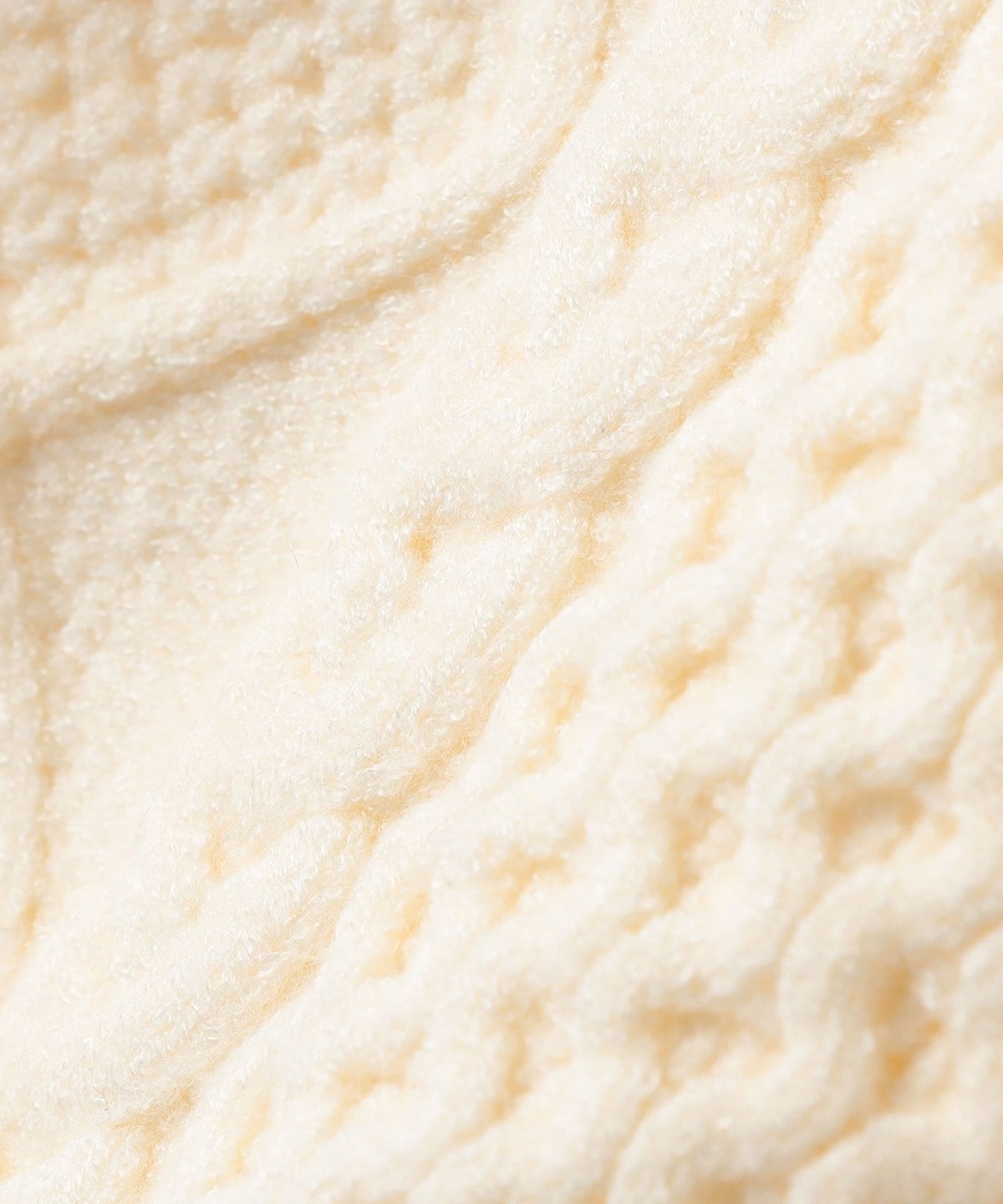 身頃には様々なケーブル柄を組み合わせ、より立体的で表情豊かな編地に仕上げています。