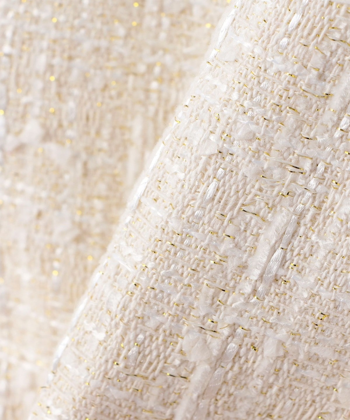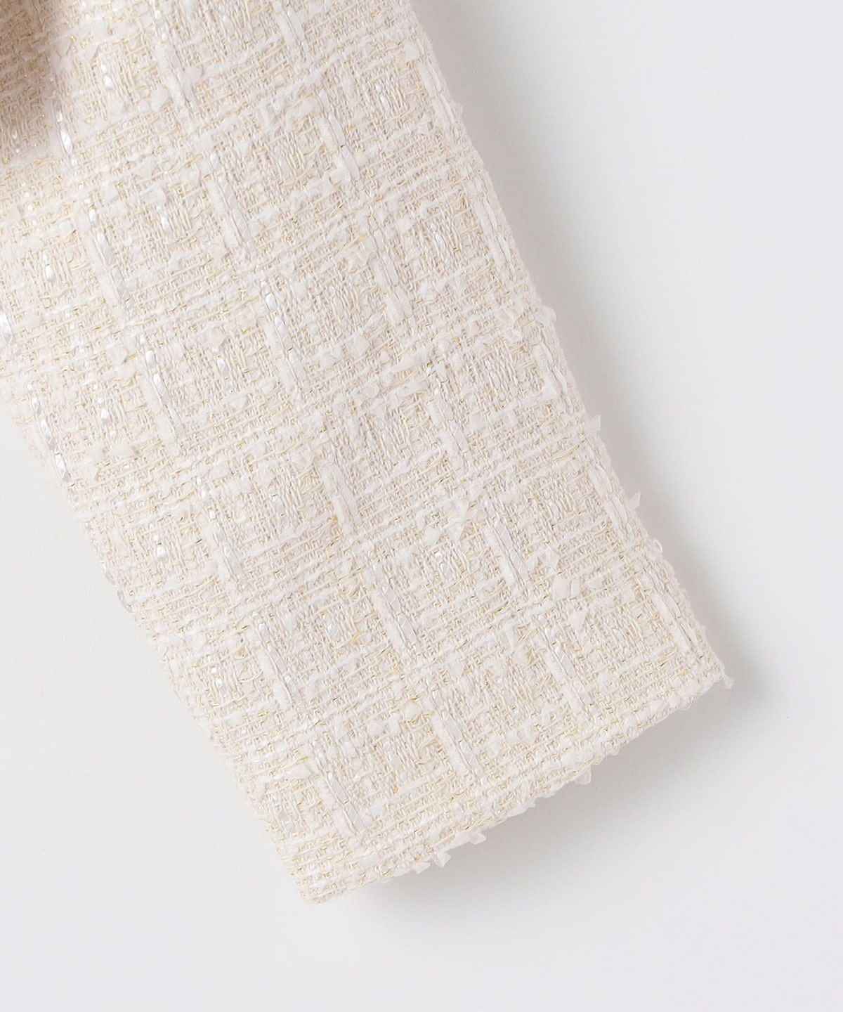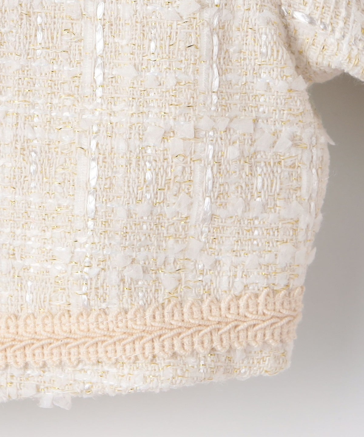 意匠糸やラメ糸を織り込んだ表情豊かなツイードを使用したボレロ。