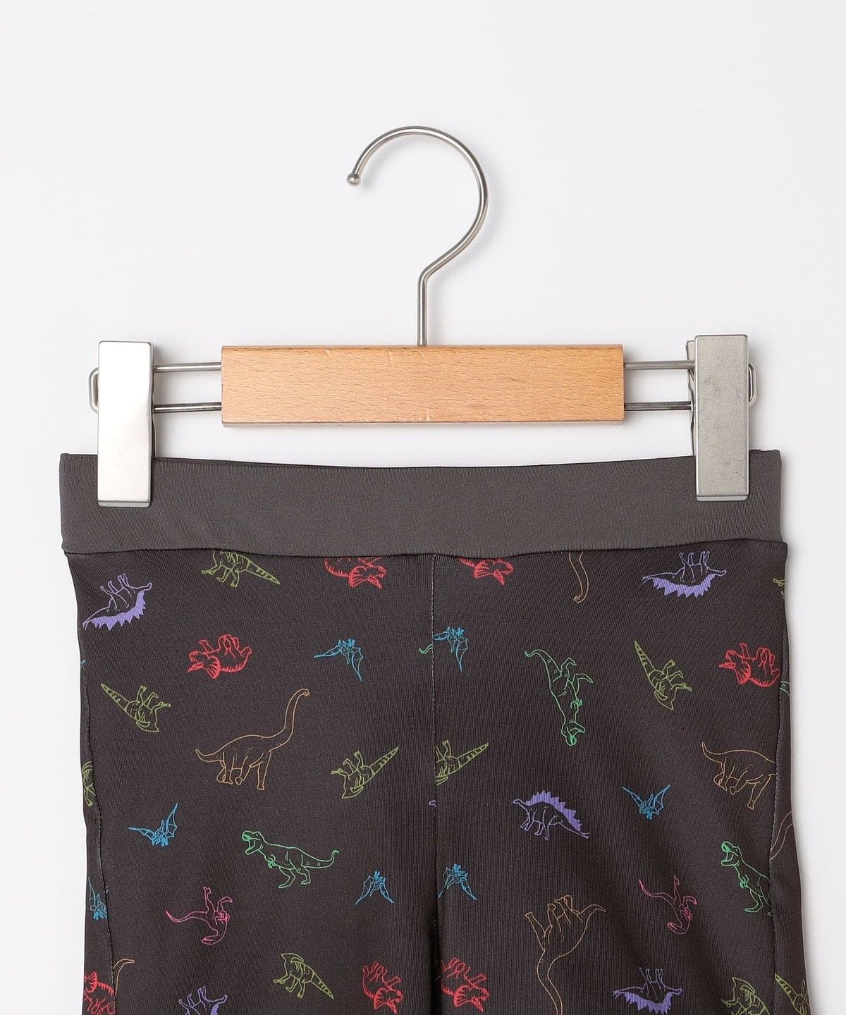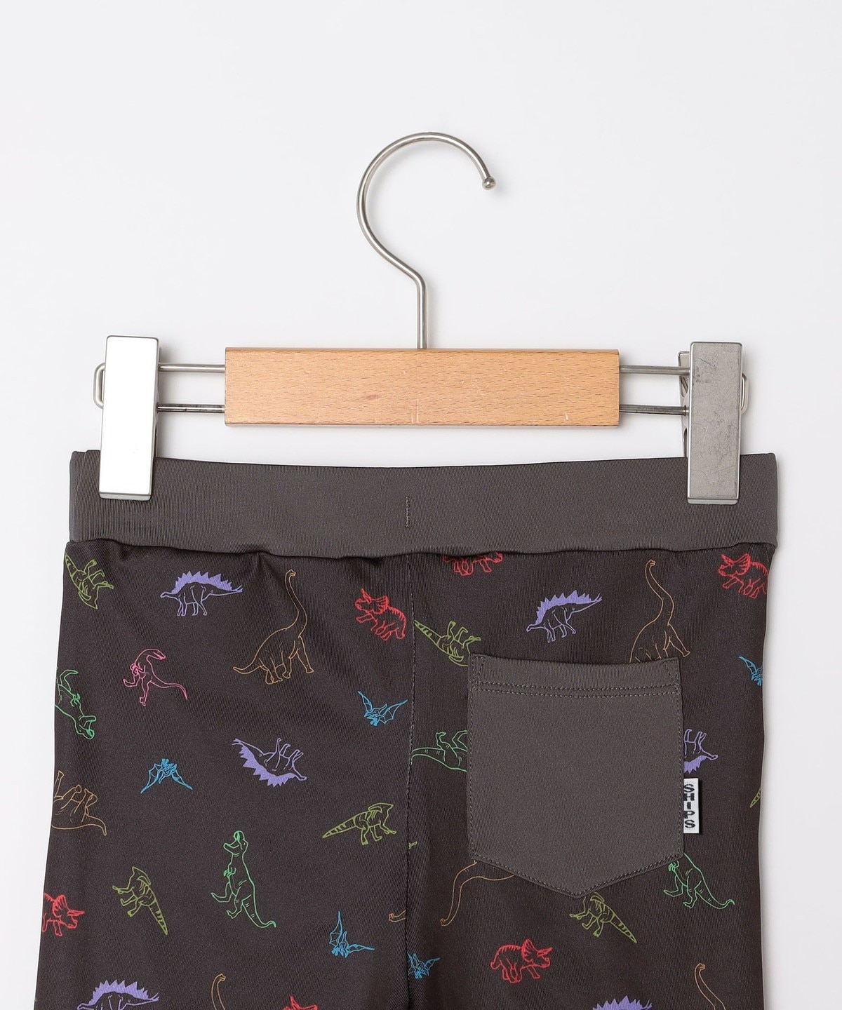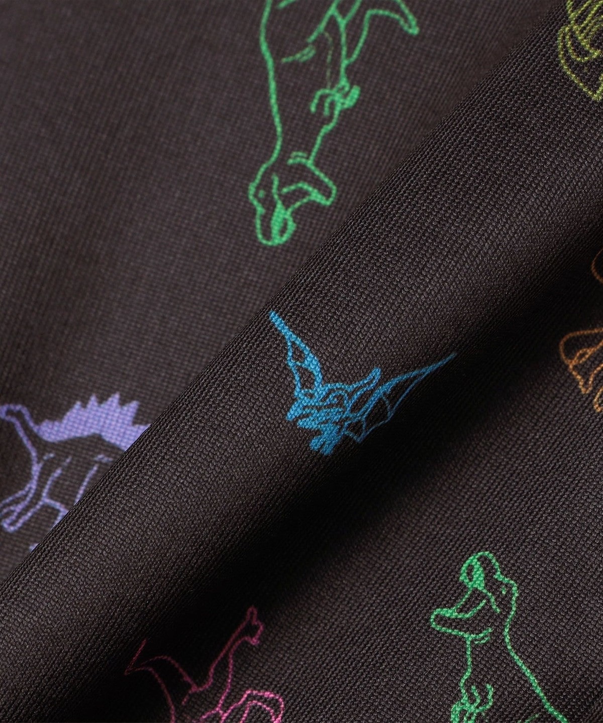 恐竜柄が映えるよう、ベースは落ち着いたチャコールグレーを採用。からだにフィットするシルエットで、内側の紐でウエストの調節も可能なところも嬉しいポイント◎