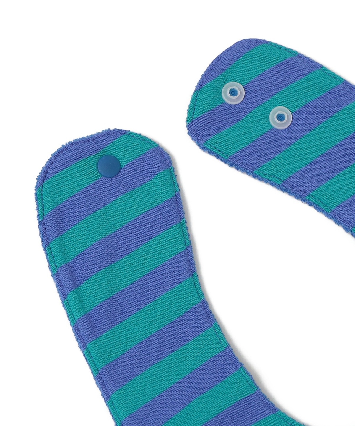 天竺のボーダーとパイル素材を組み合わせたリバーシブルのスタイ。