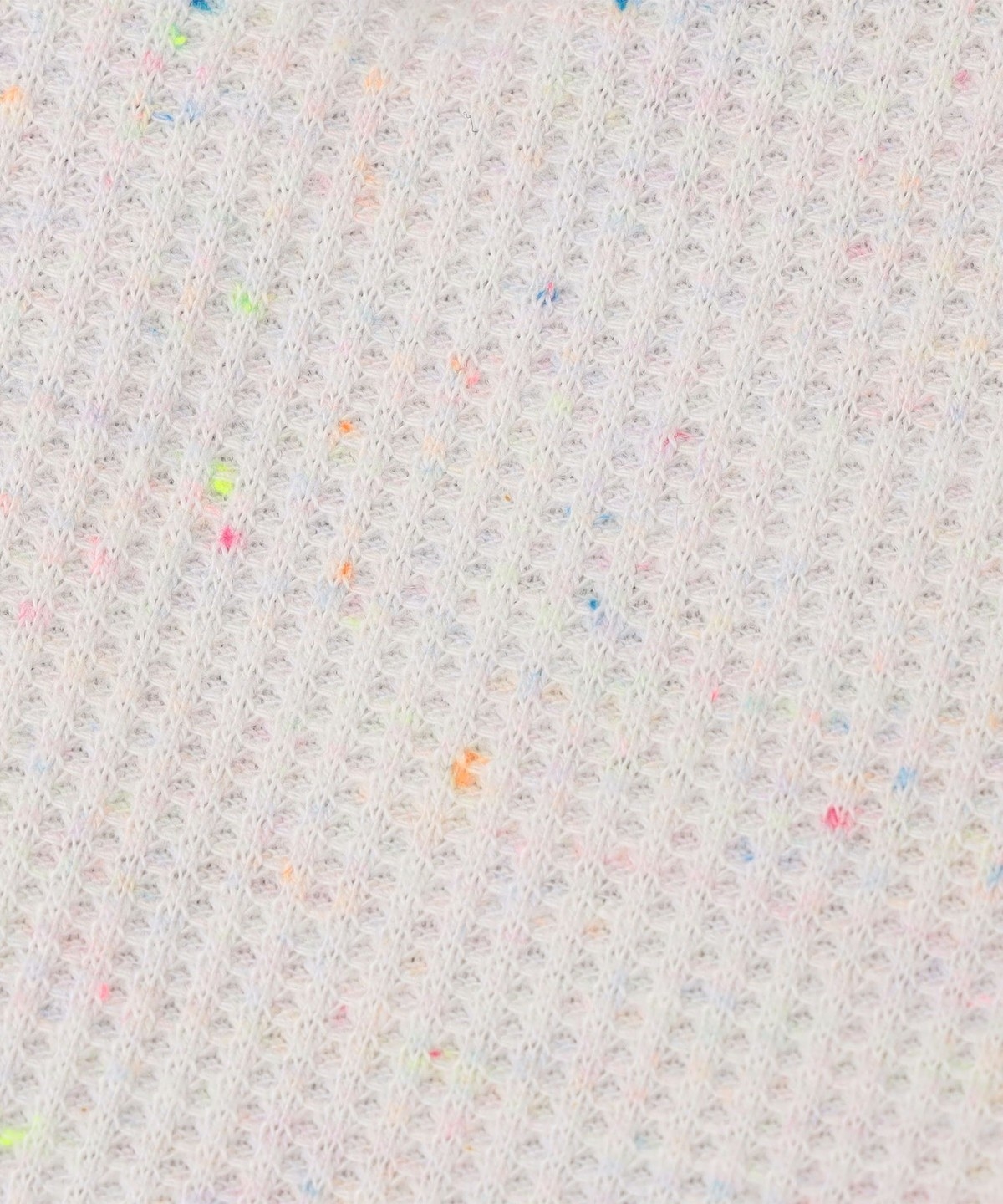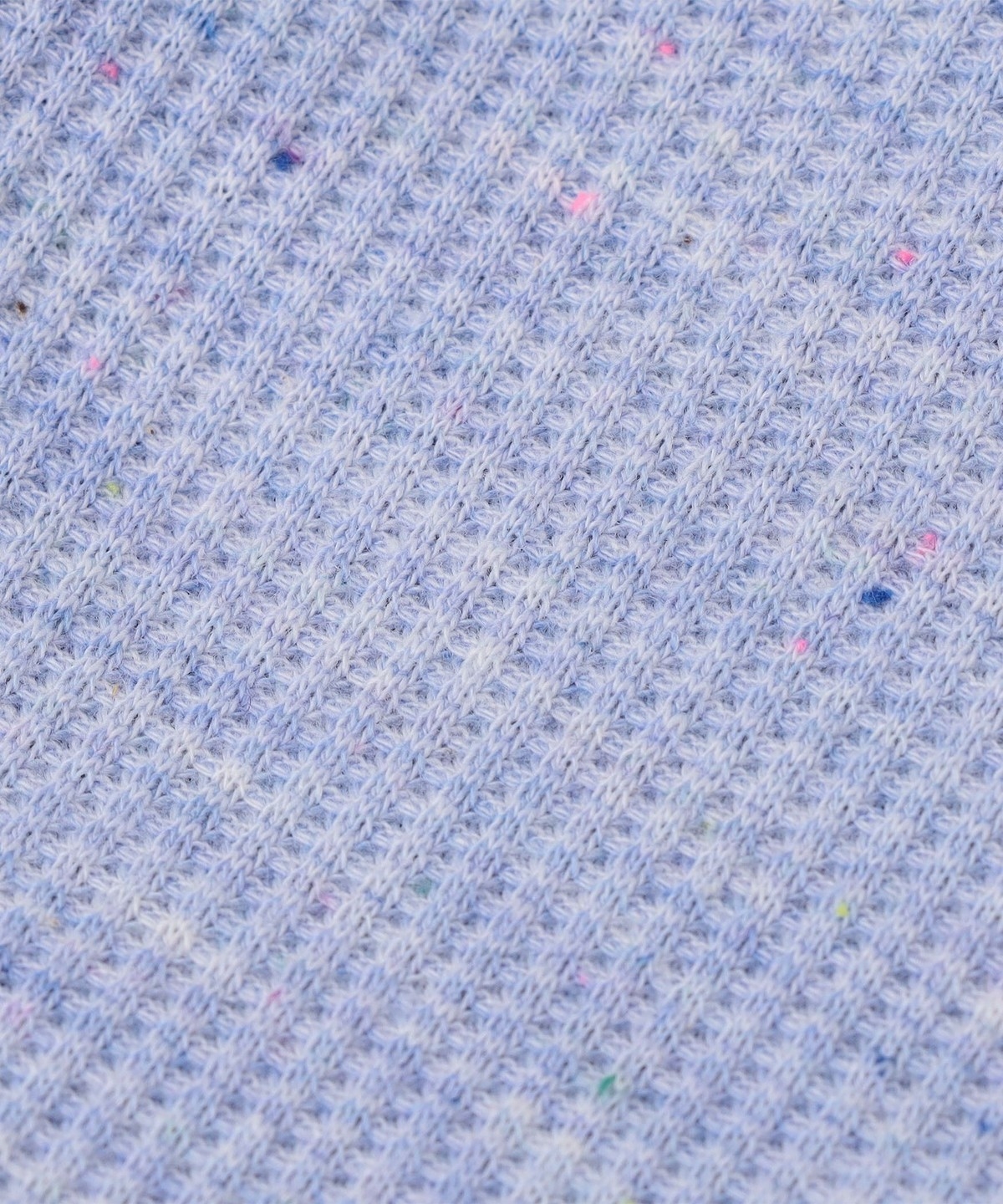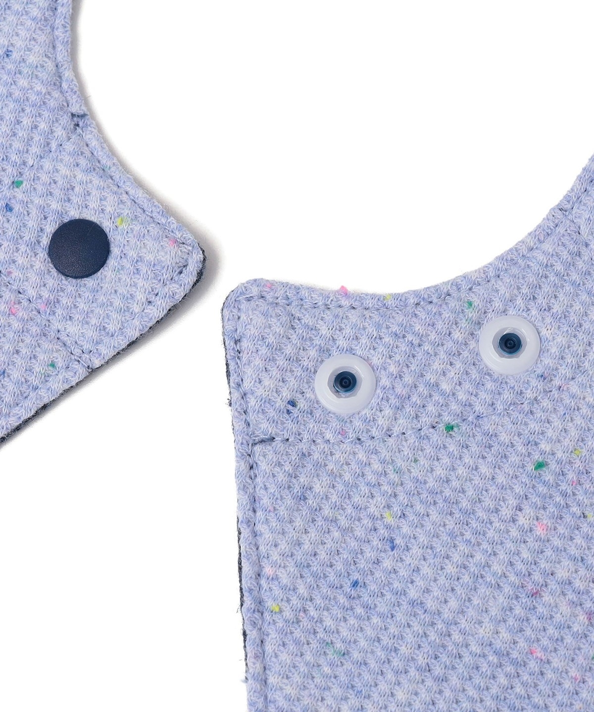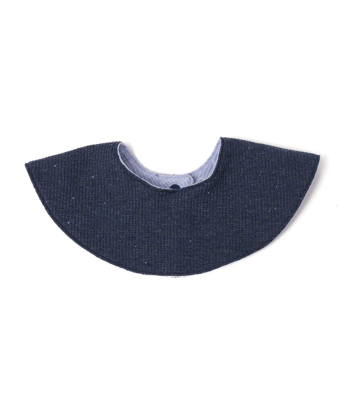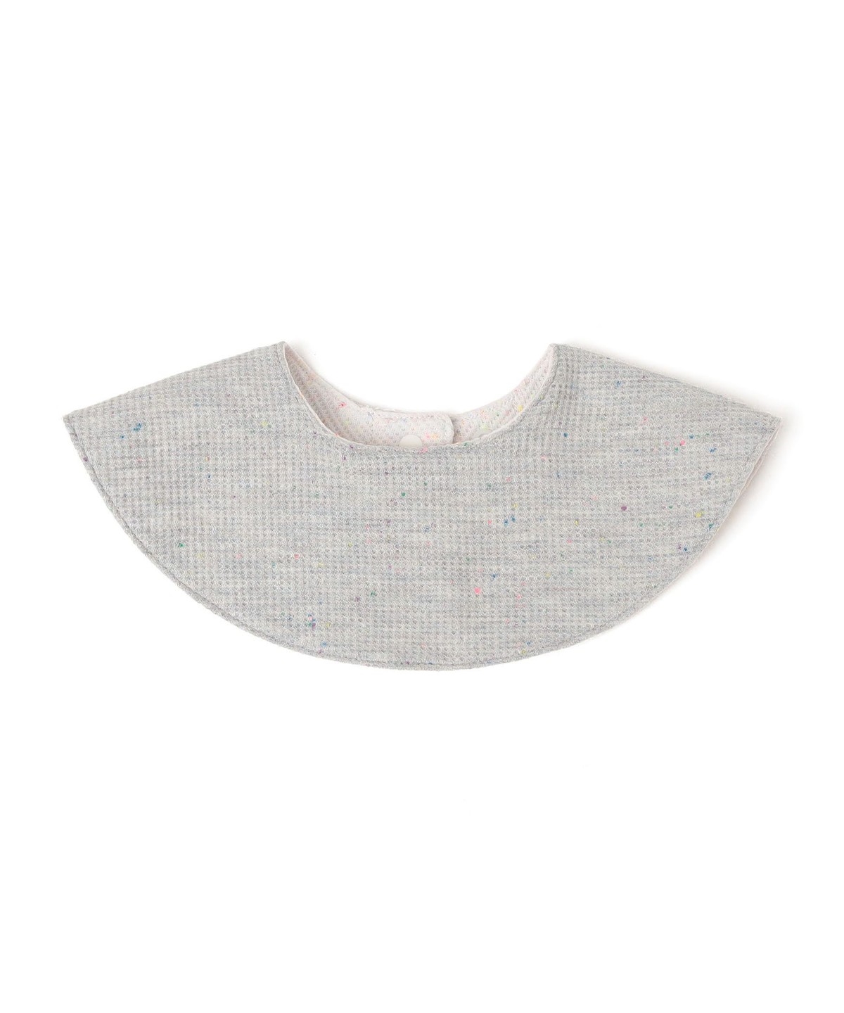 ネップワッフル素材を使用した肌馴染みの良い、丸型のスタイ。