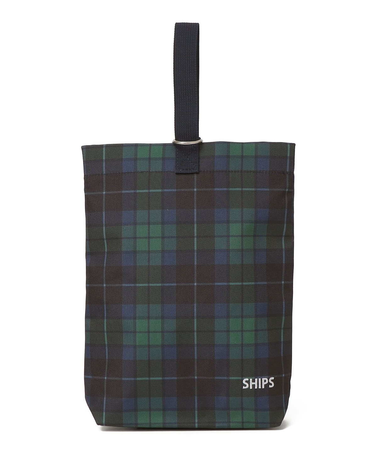 オリジナルのシップスタータンチェック生地を使用したシューズバッグ。