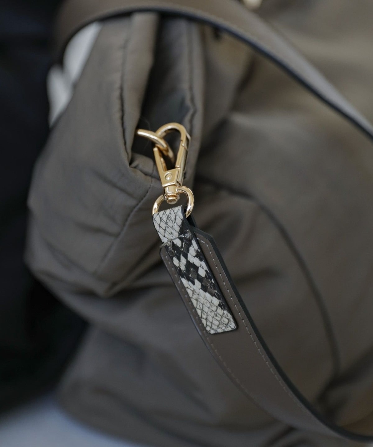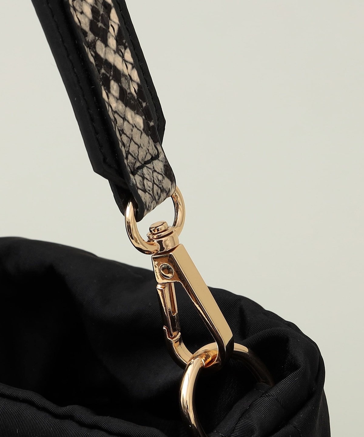 取り外し可能なショルダーベルトはパイソン柄で、コーディネートのアクセントにも。