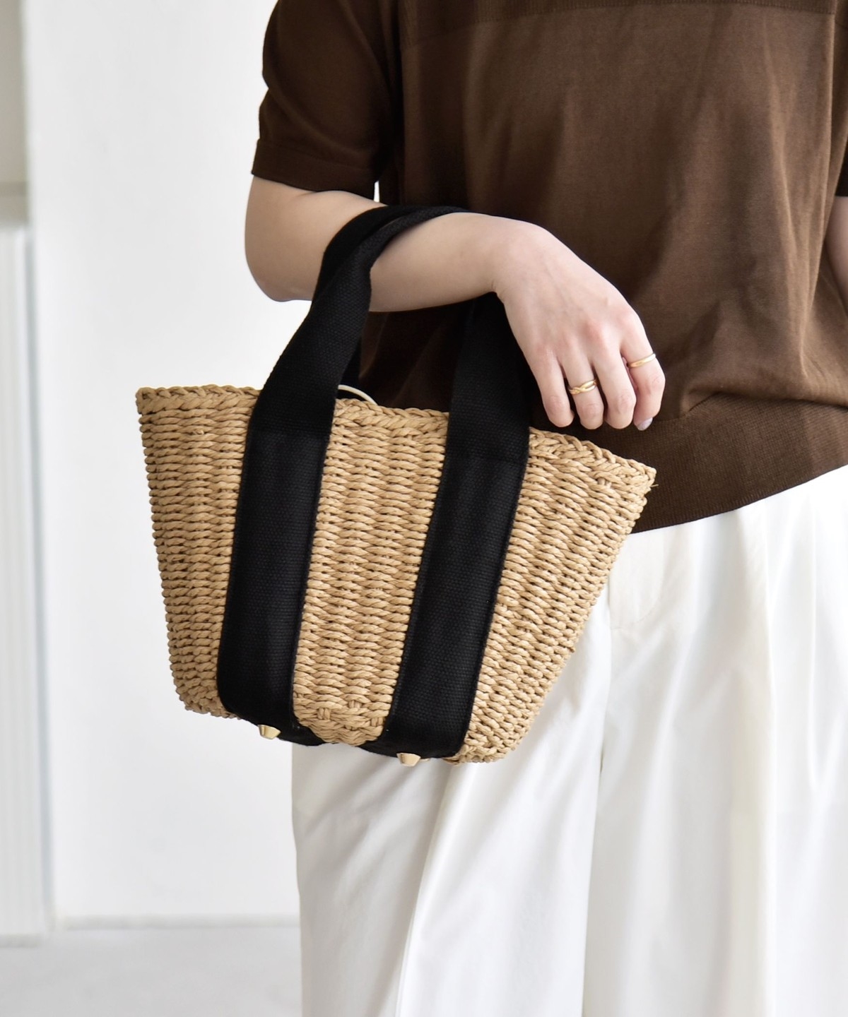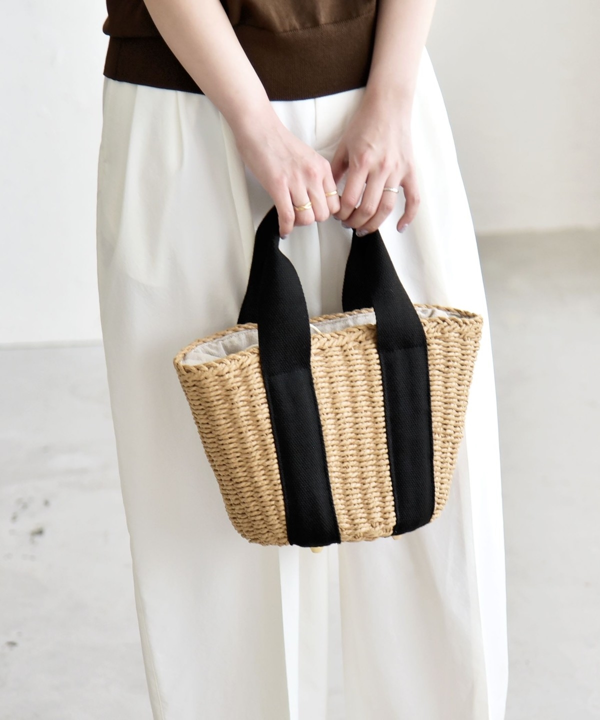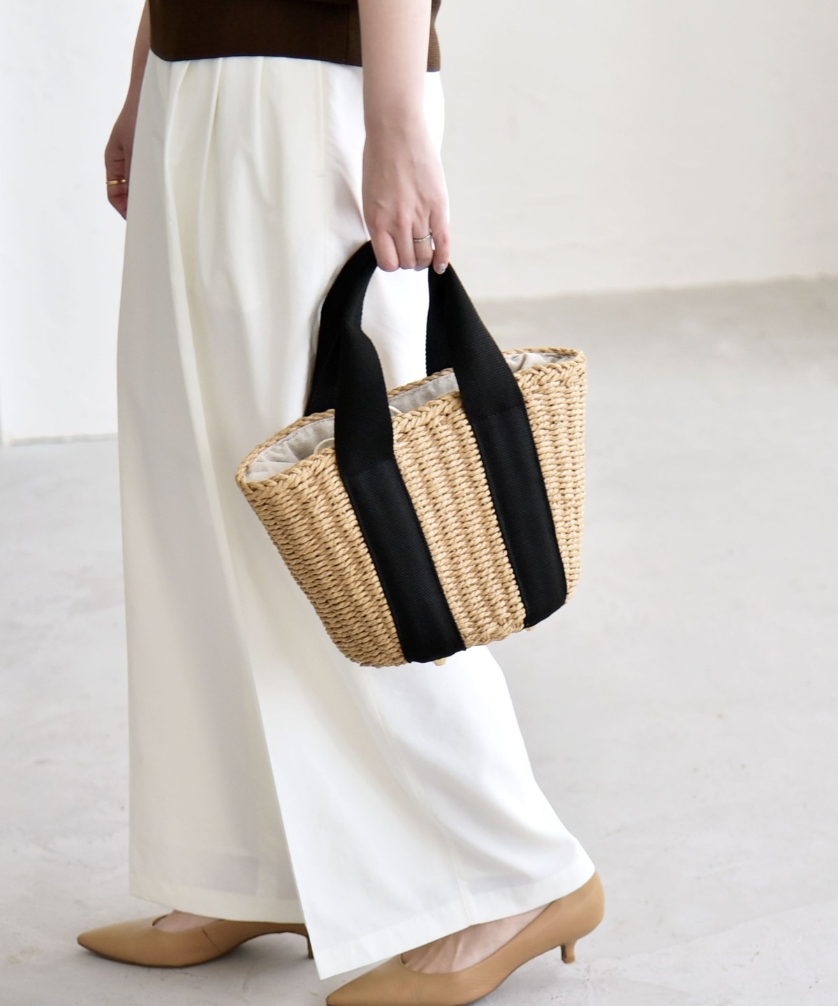 1. 《予約》quaranciel: バイカラー テープハンドル ペーパー トート バッグ ナチュラル
