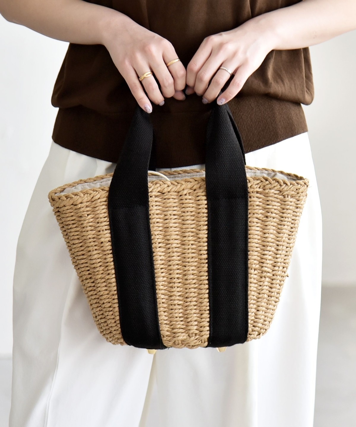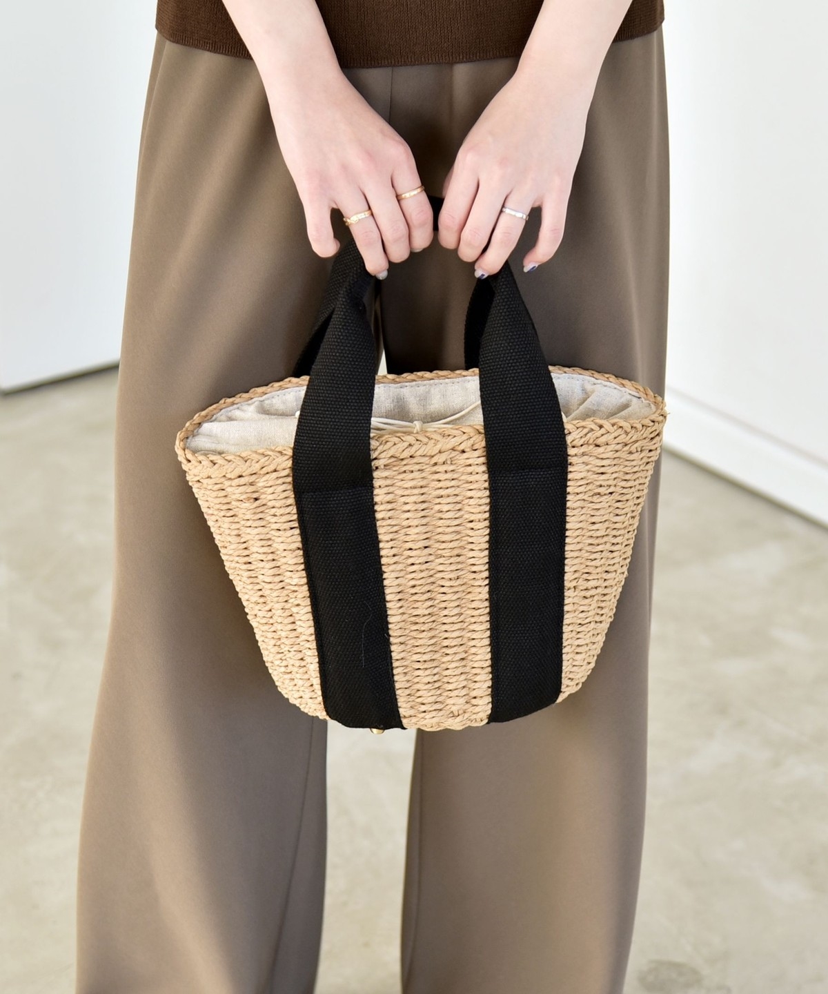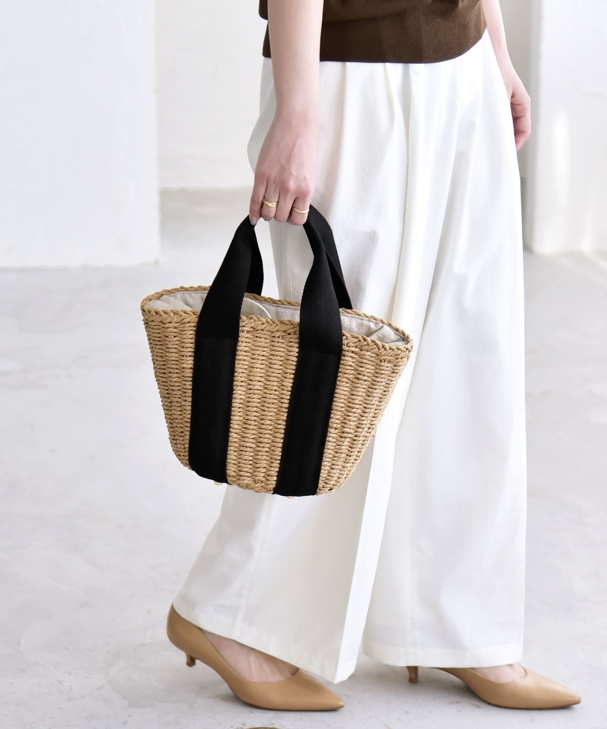 3. 《予約》quaranciel: バイカラー テープハンドル ペーパー トート バッグ ベージュ