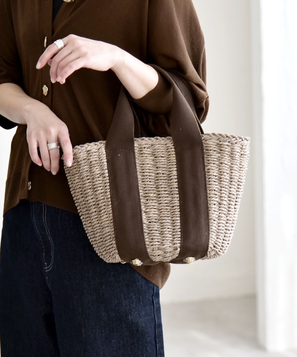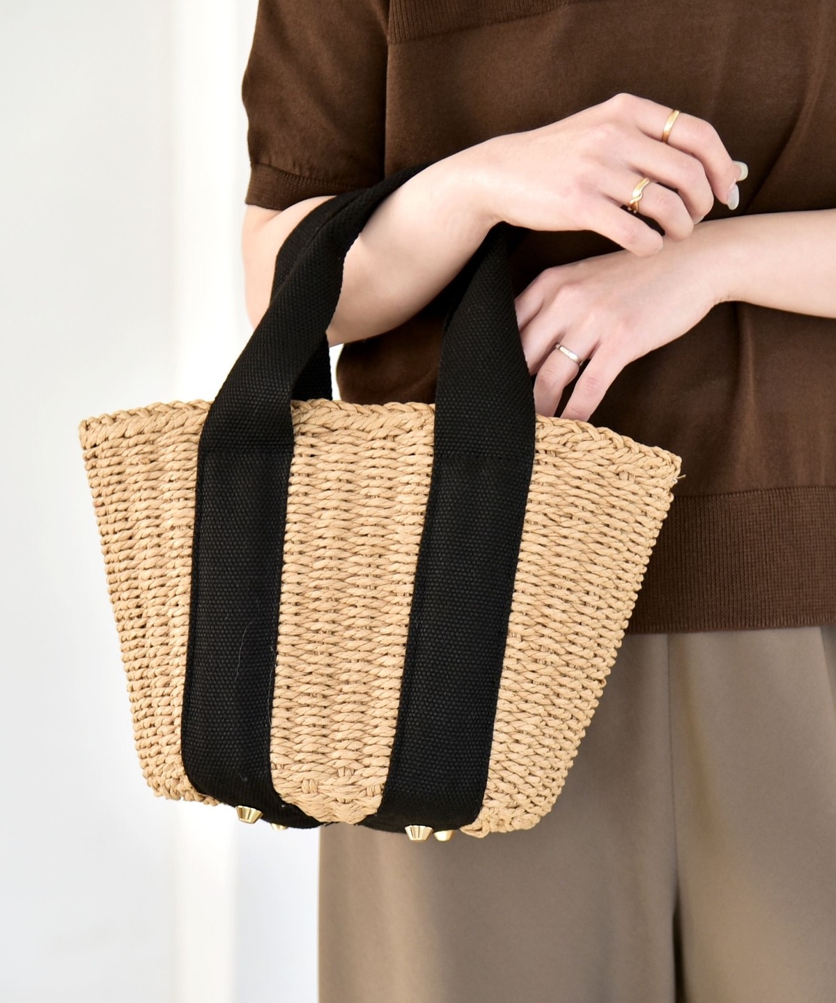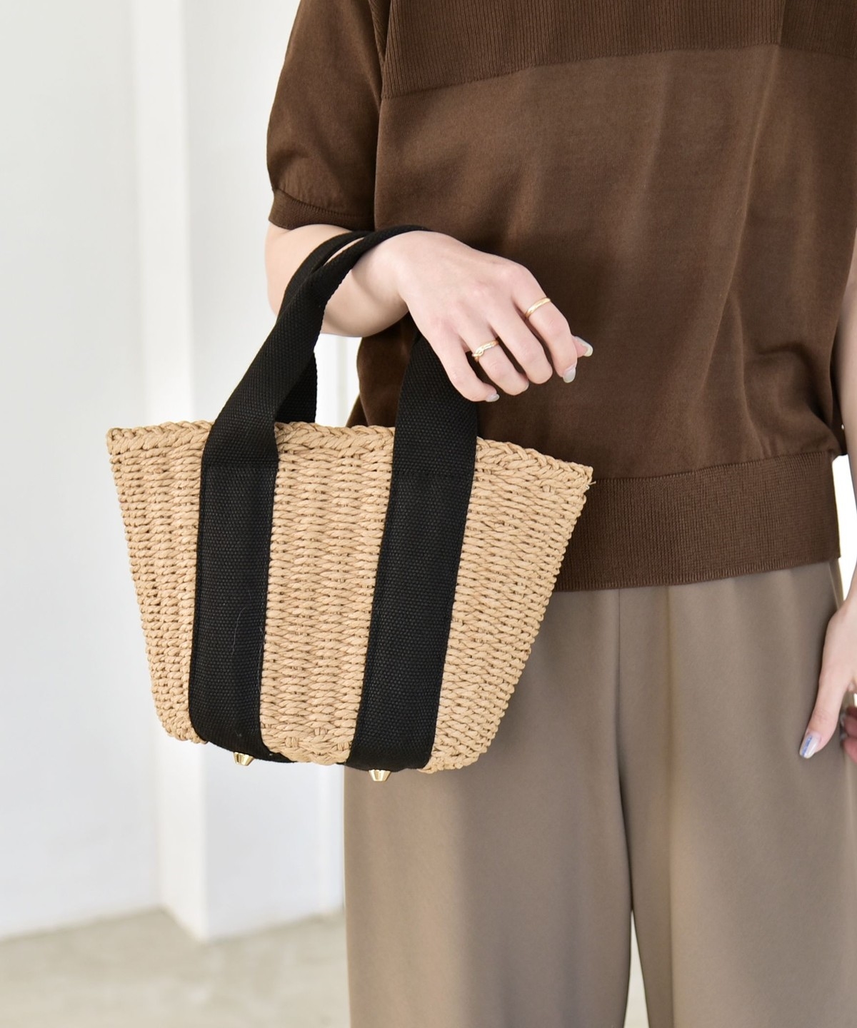 3. 《予約》quaranciel: バイカラー テープハンドル ペーパー トート バッグ ベージュ