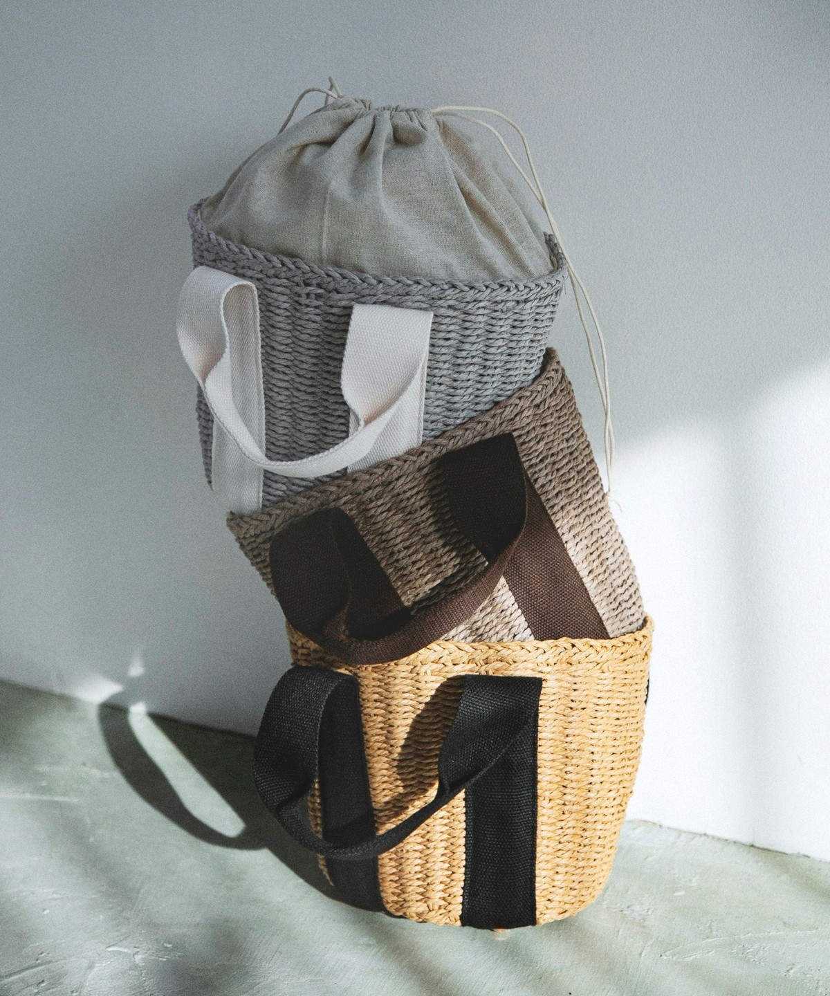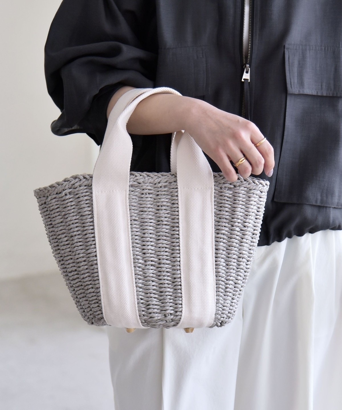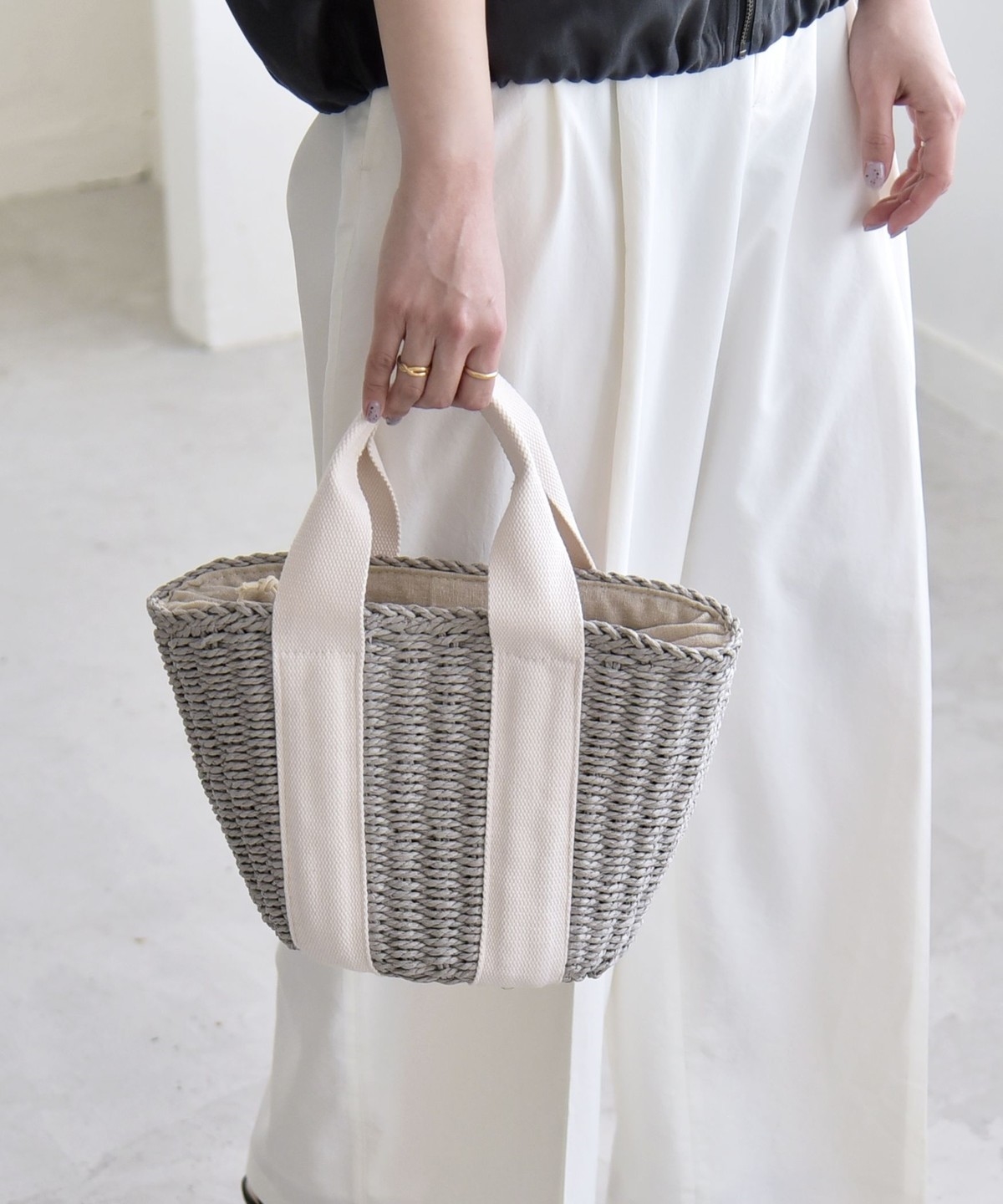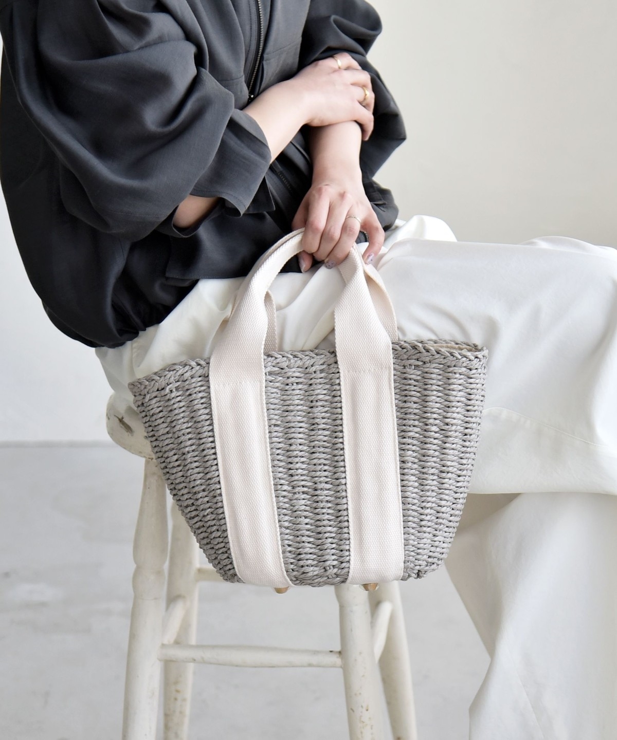 2. 《予約》quaranciel: バイカラー テープハンドル ペーパー トート バッグ グレー
