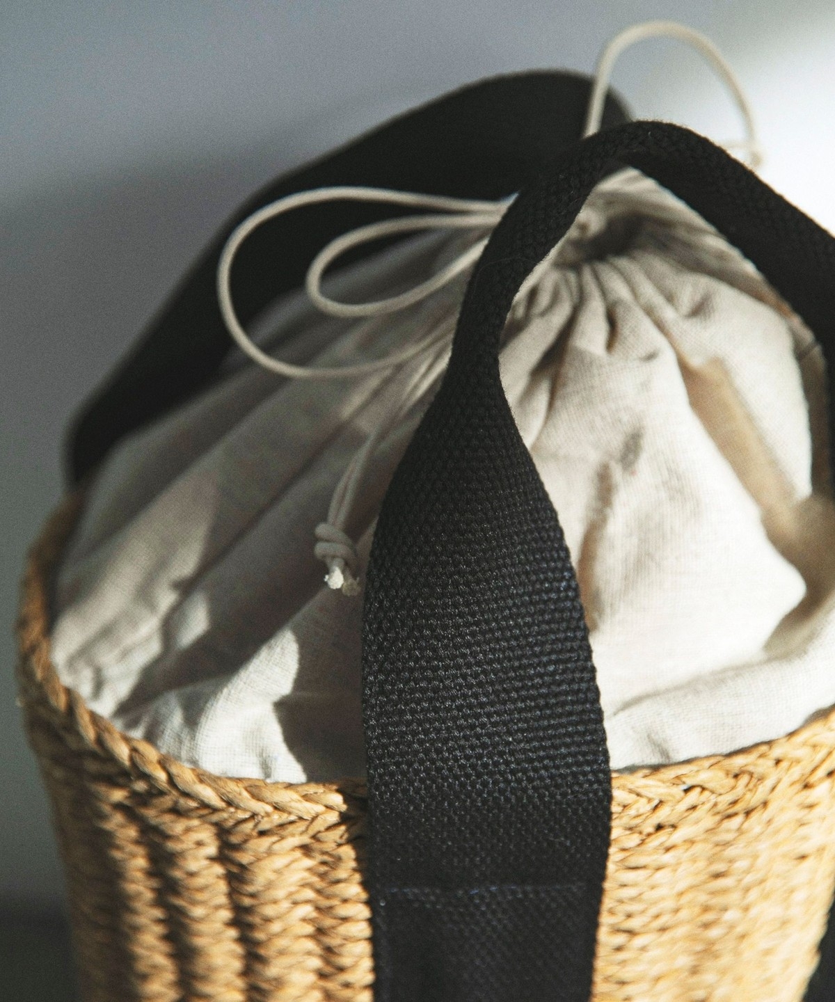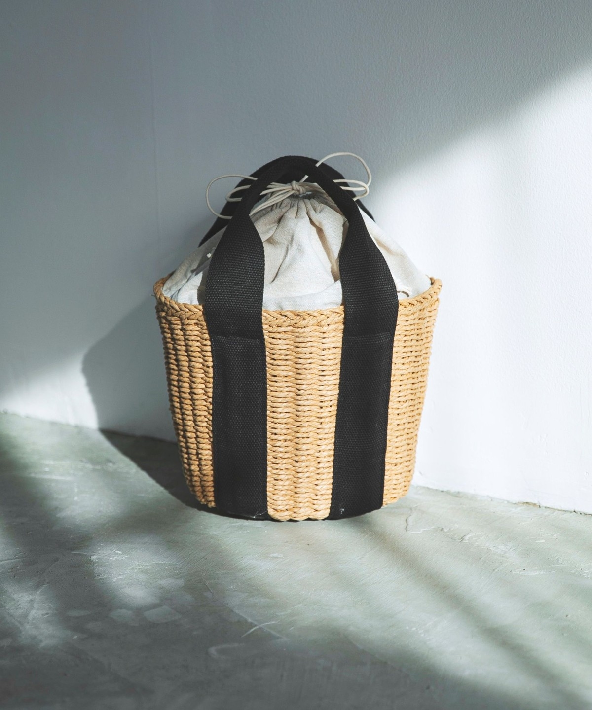 ナチュラルな風合いと、配色ハンドルがアクセントになったバケツ型トートバッグ。