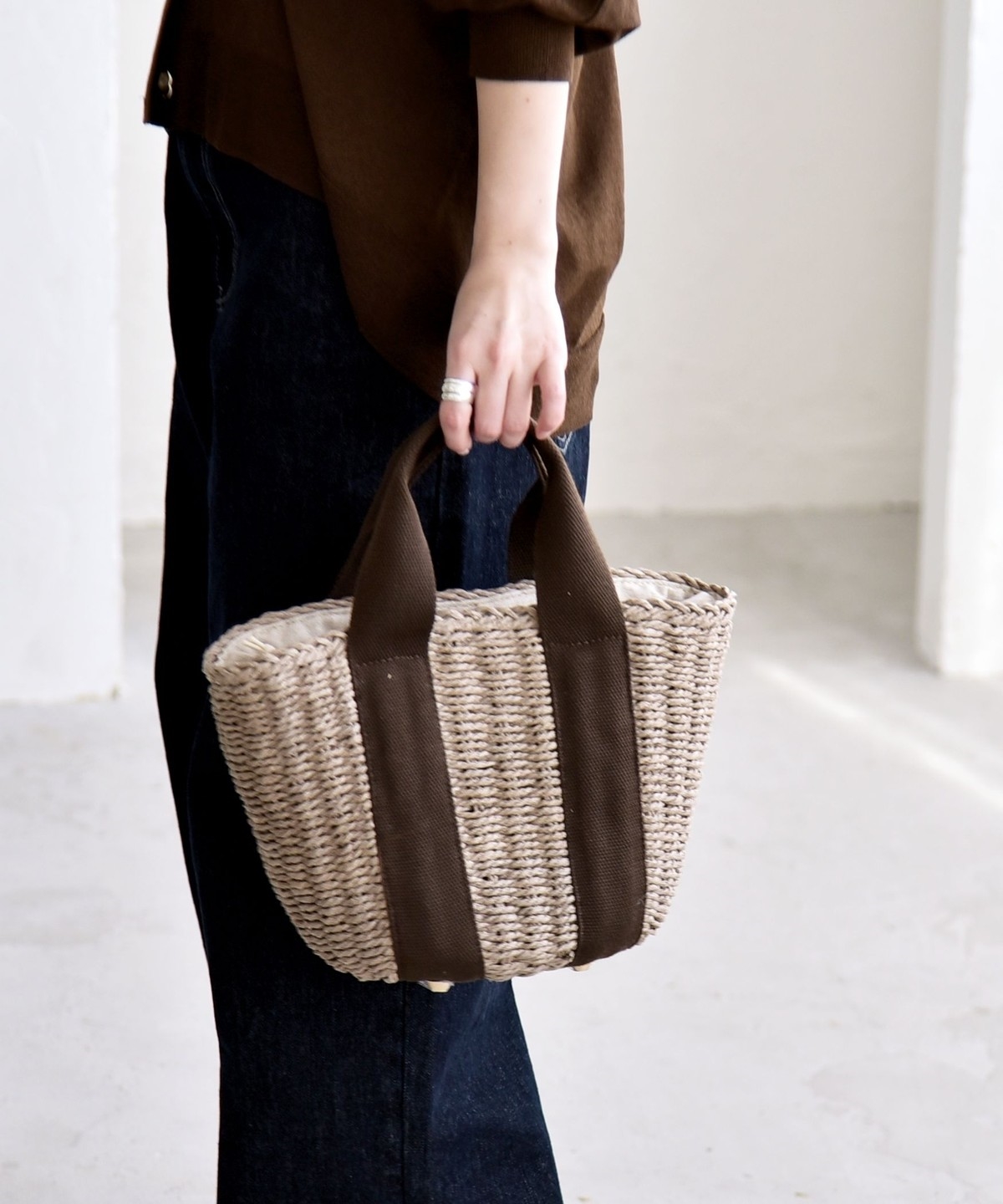 17. 《予約》quaranciel: バイカラー テープハンドル ペーパー トート バッグ