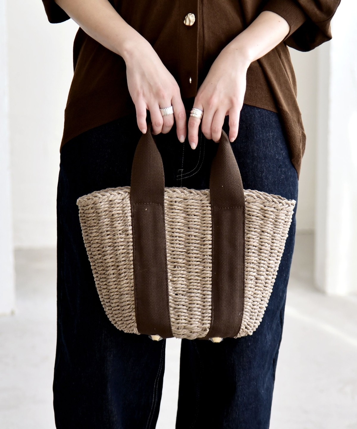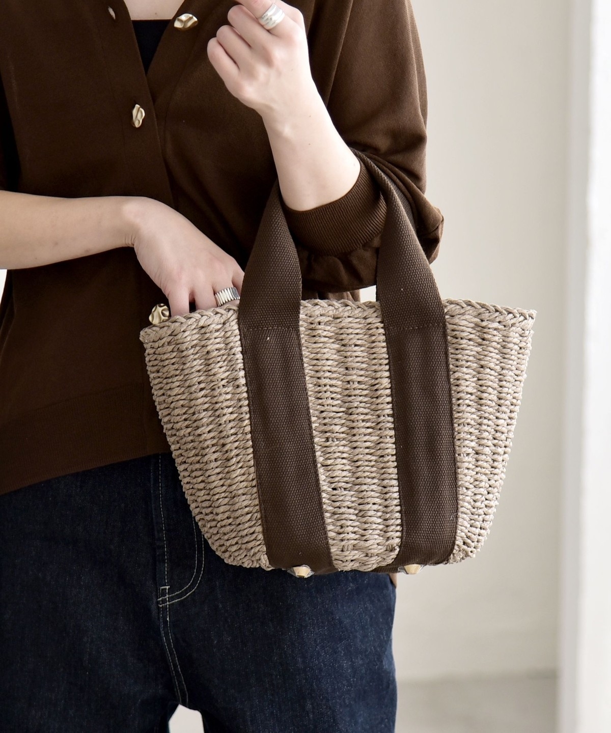 19. 《予約》quaranciel: バイカラー テープハンドル ペーパー トート バッグ