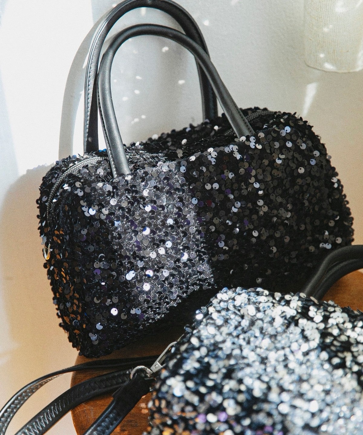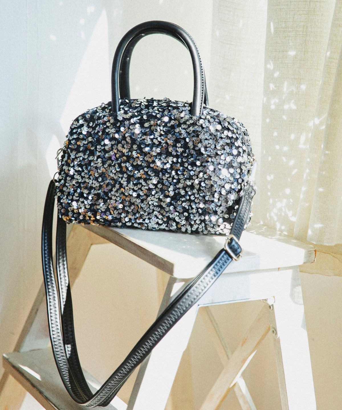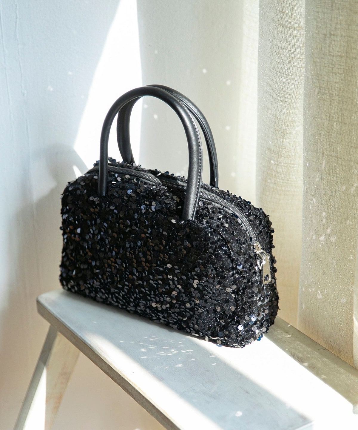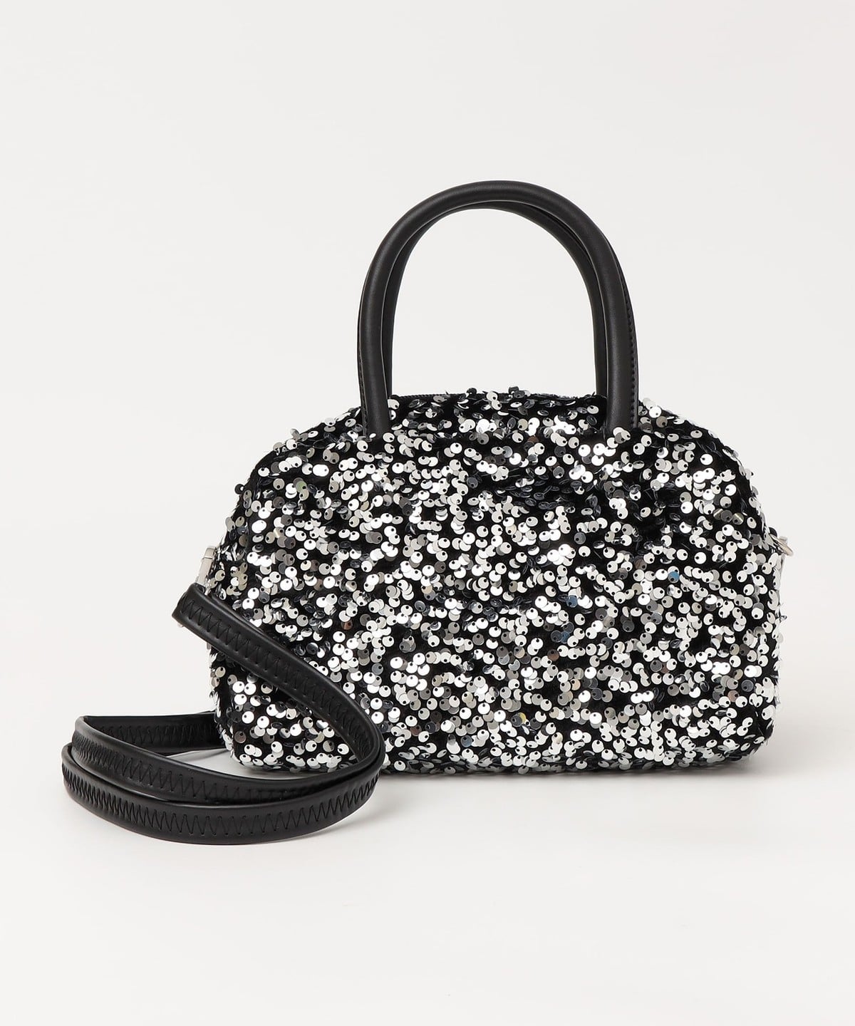 華やかさと上品さを兼ねそろえた、スパンコールのミニボストンバッグ。