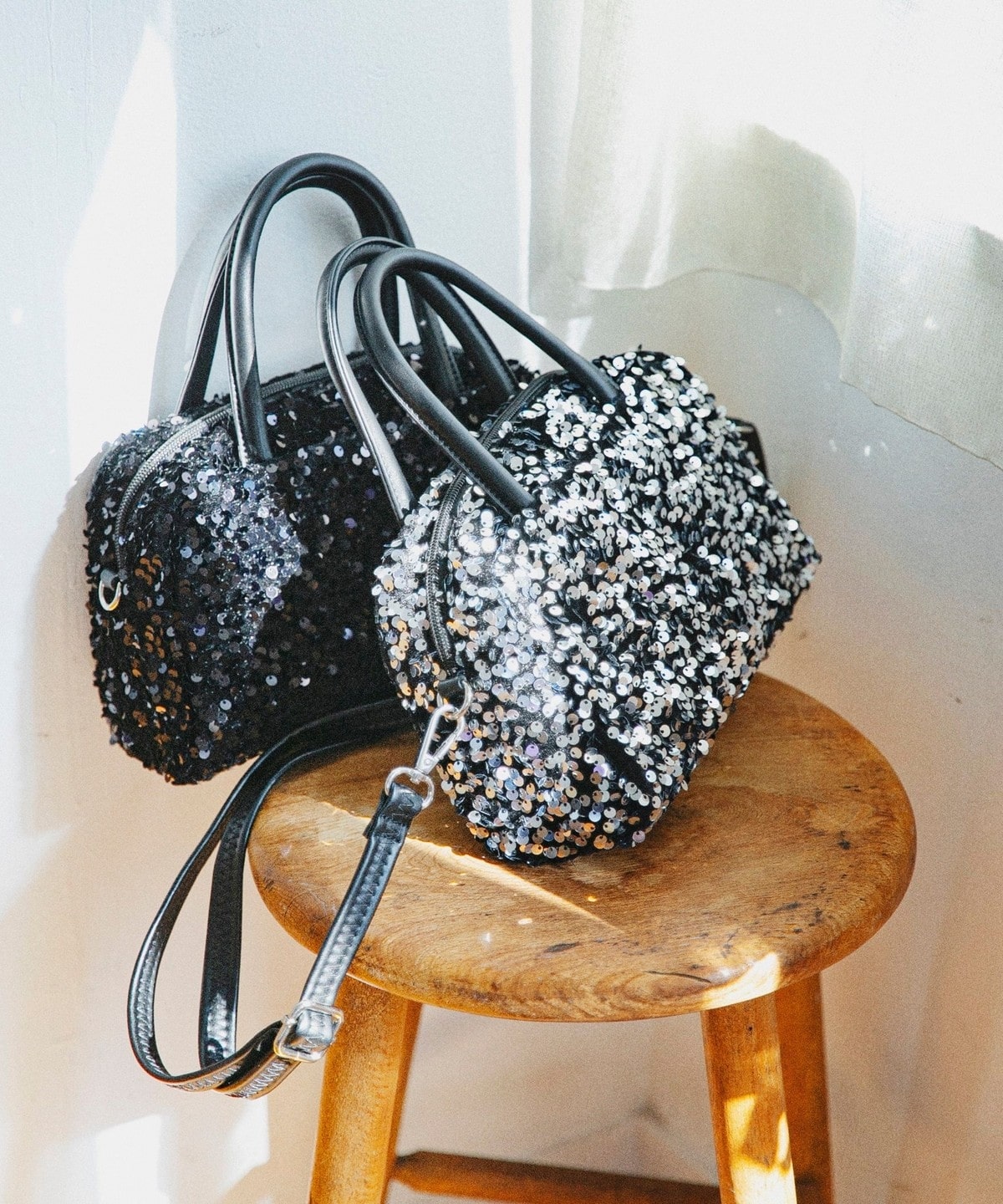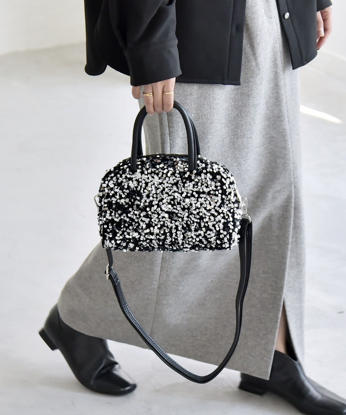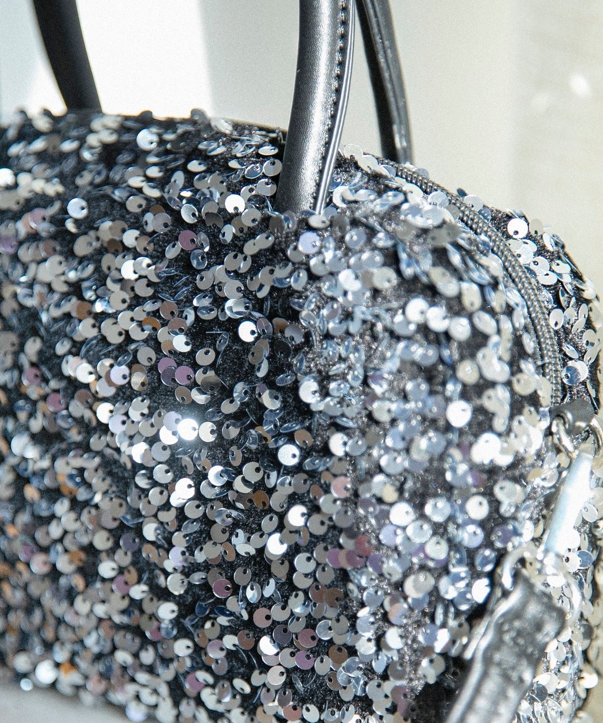 華やかさと上品さを兼ねそろえた、スパンコールのミニボストンバッグ。