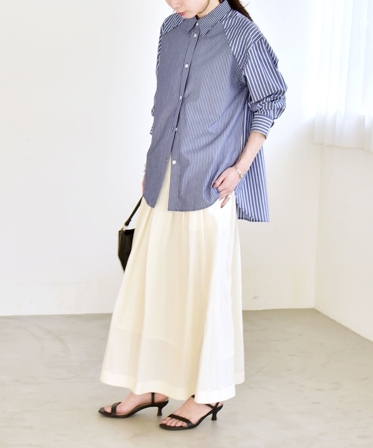着心地:程良いハリ感がありさらっとしています。ボタンの開け具合によって抜け感が調整できて◎