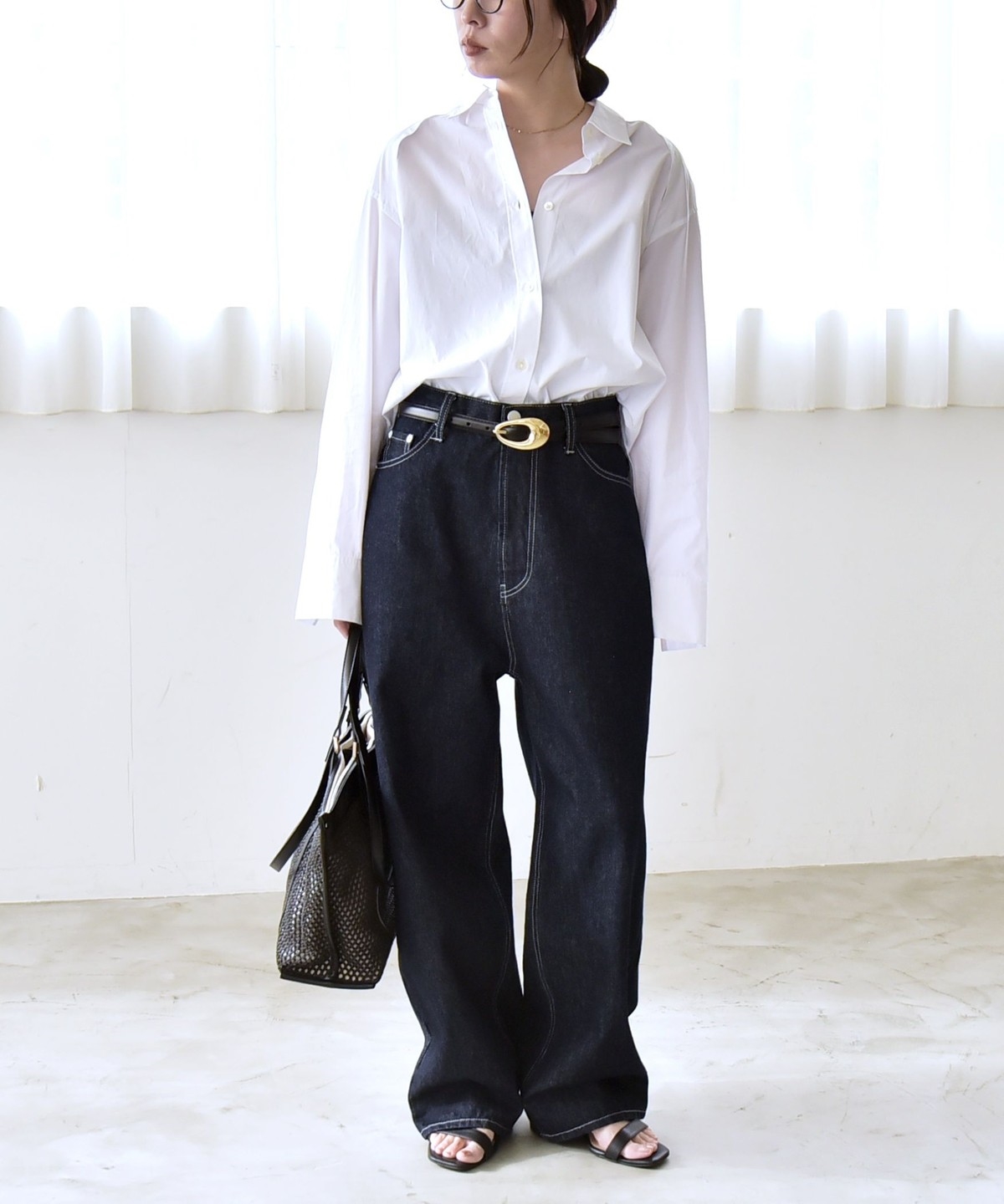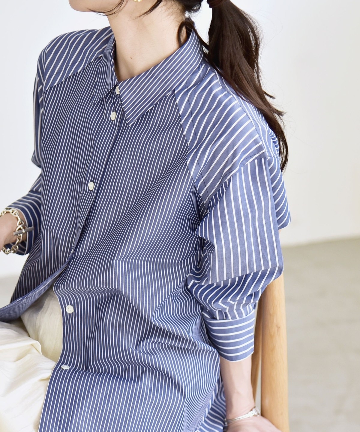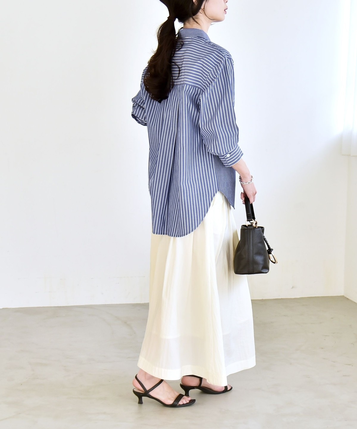 オフシーンには、キャミやタンクなどにビッグシャツ感覚でさっと羽織ったり、ラフな装いにもおすすめ。