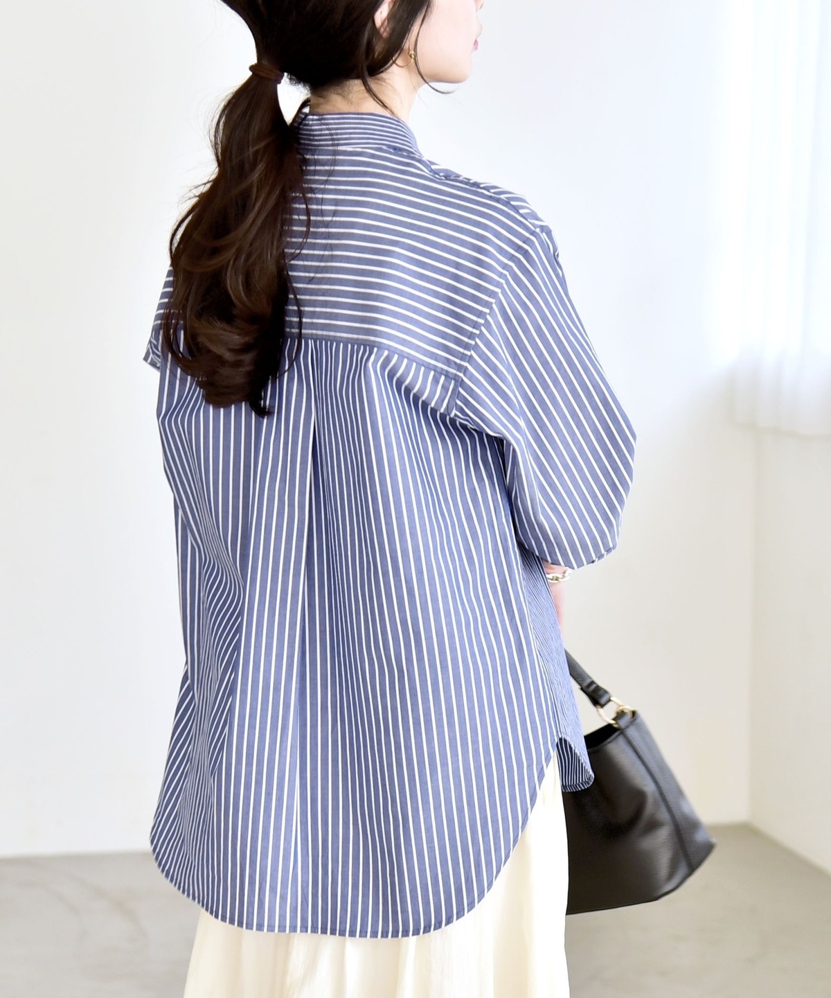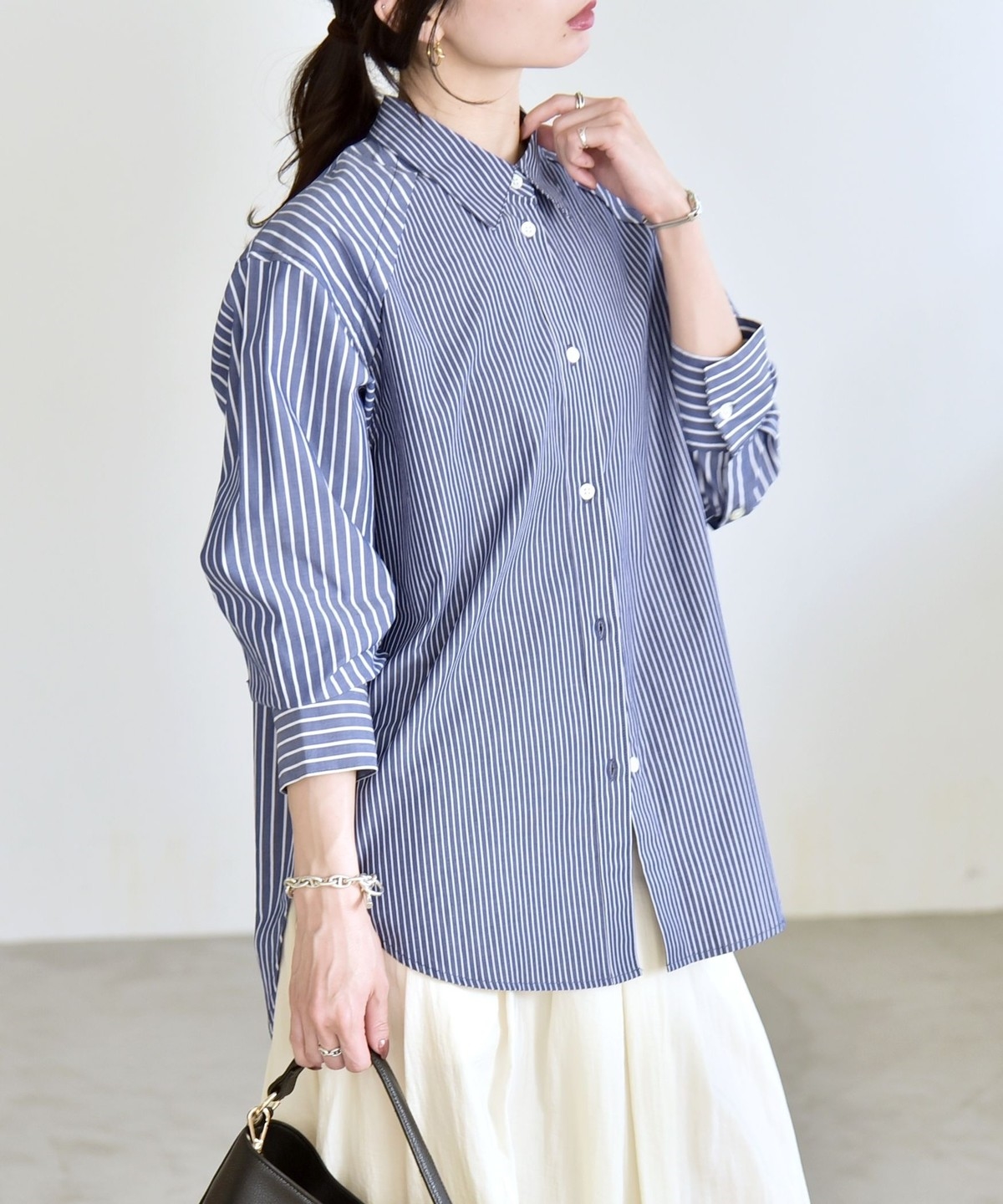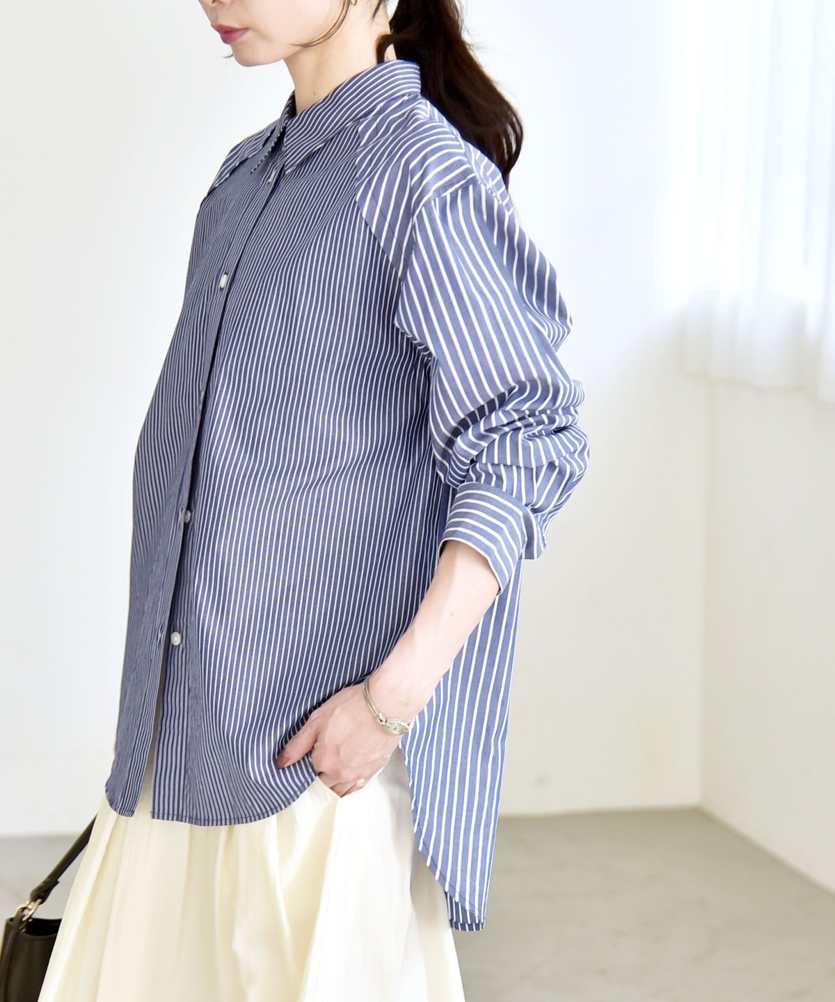 ミニマルさもありながらシンプルすぎず、一枚で着映えするシャツです。