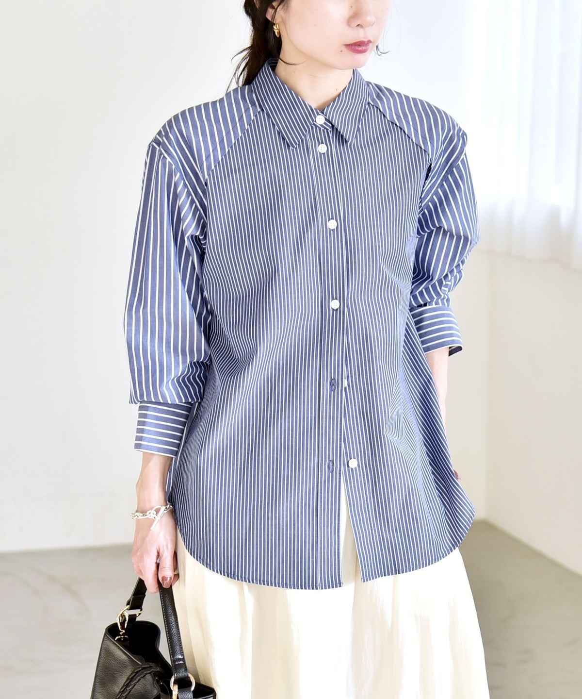 ヨークや袖の切り替えデザインがポイントで、着るだけで自然と立体感が出てくれます。