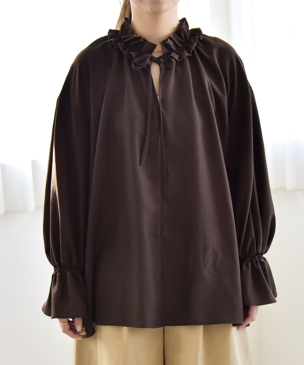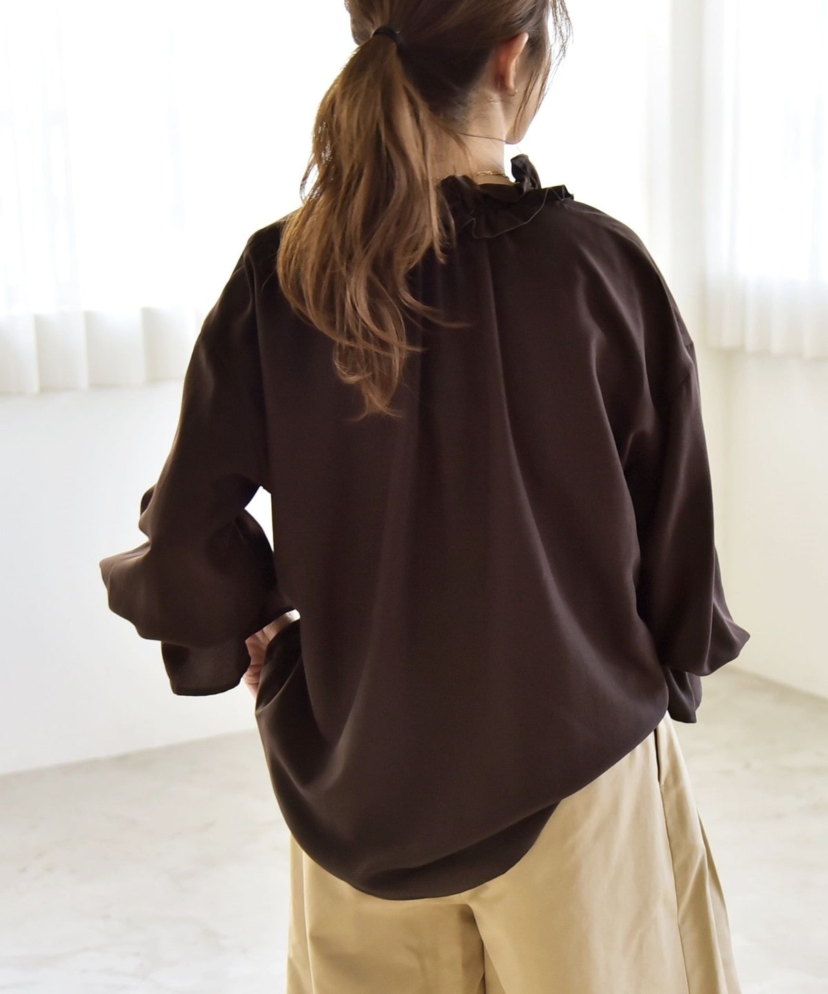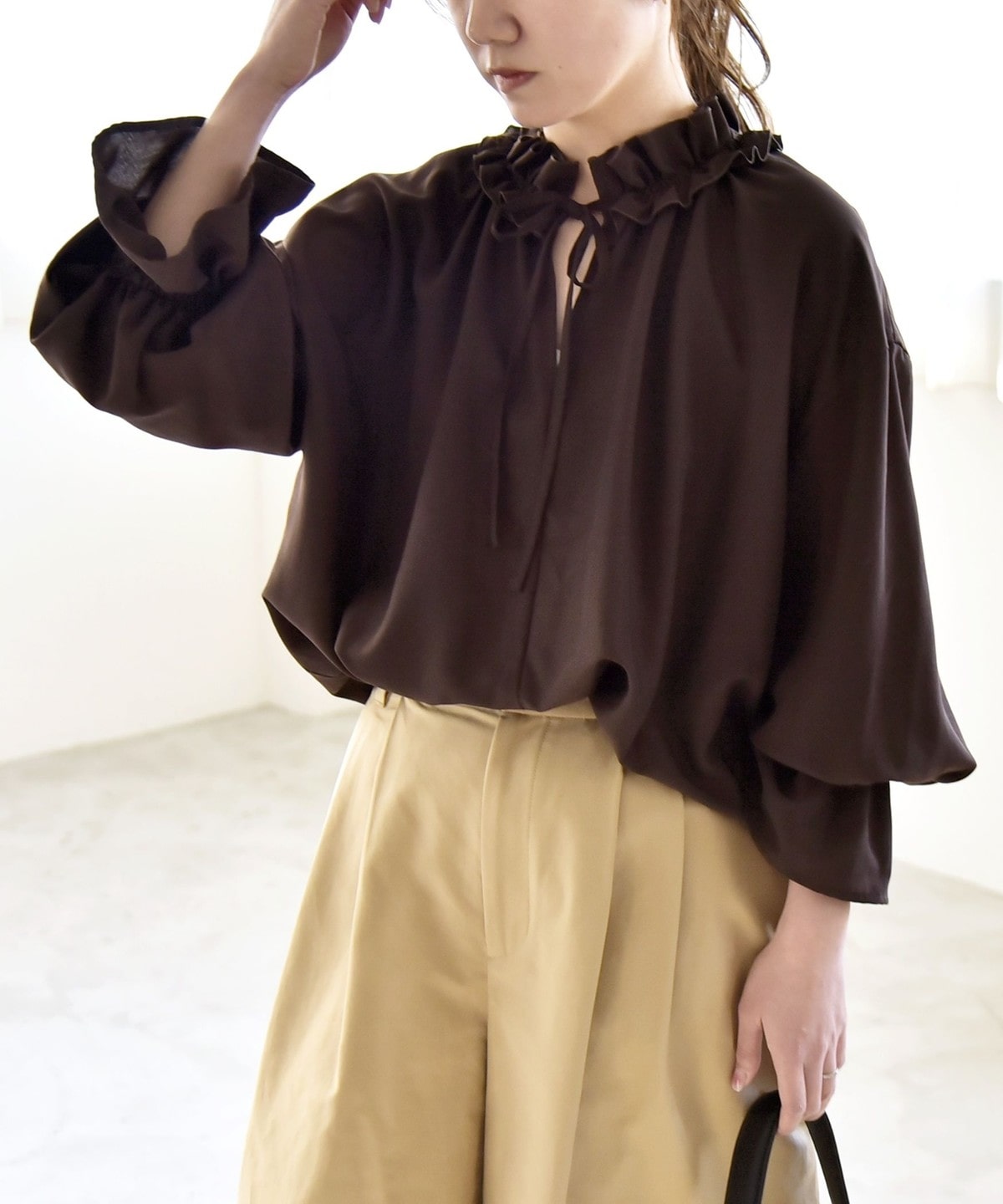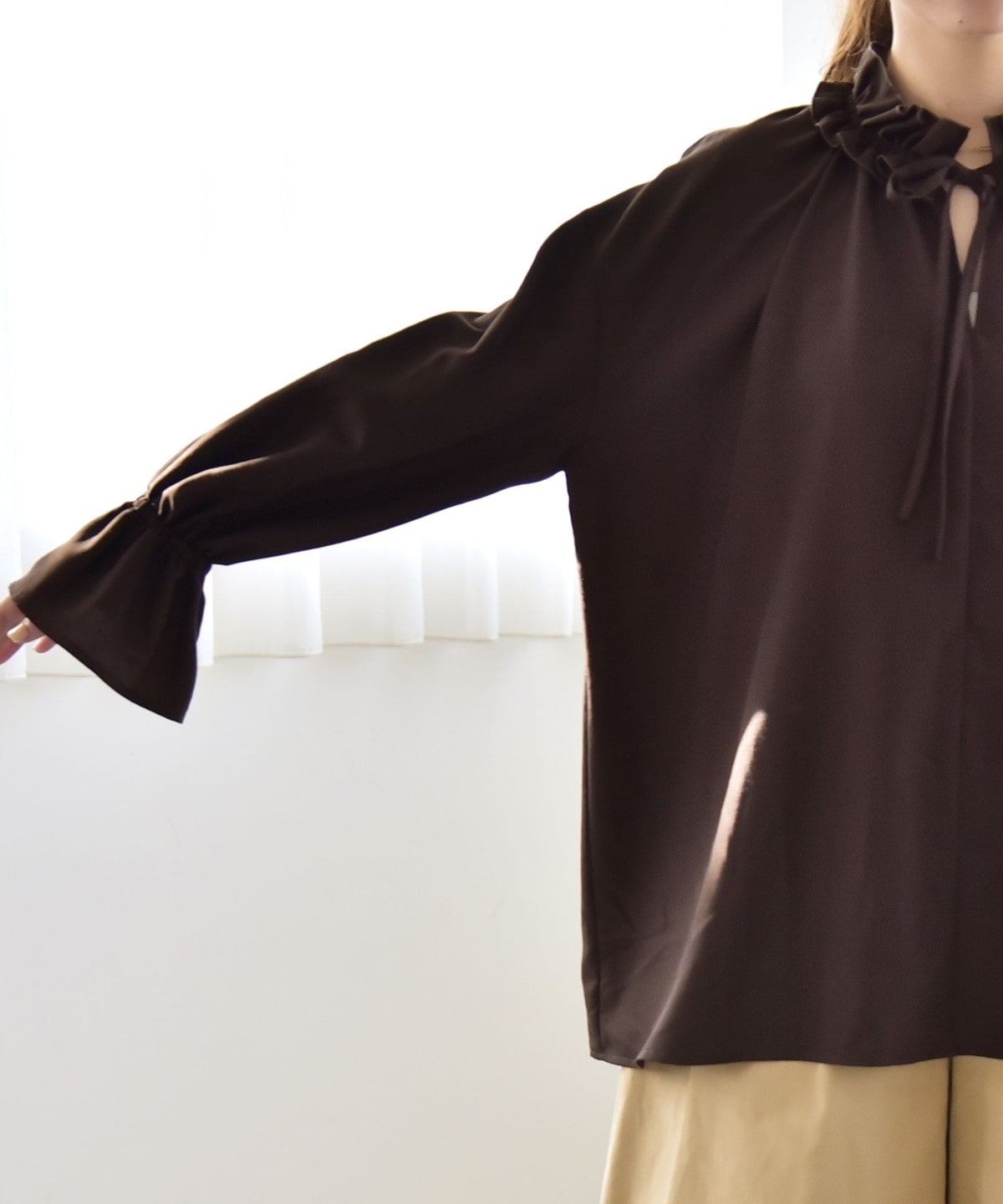 フリル襟で顔周りが華やぐ、着映えブラウス。