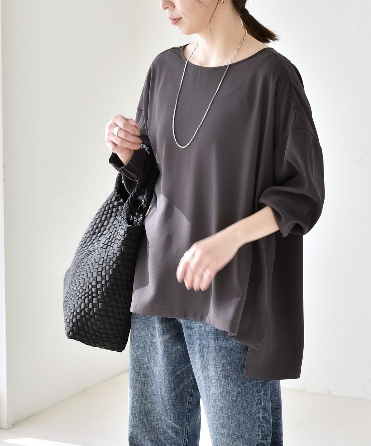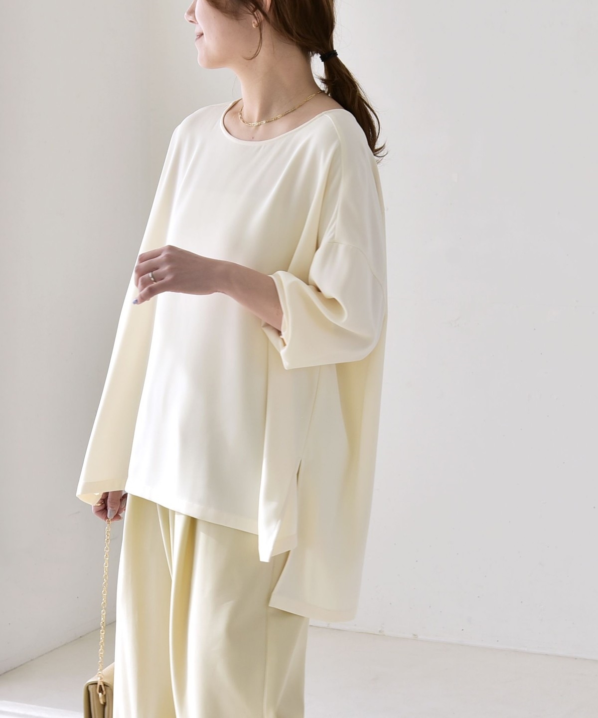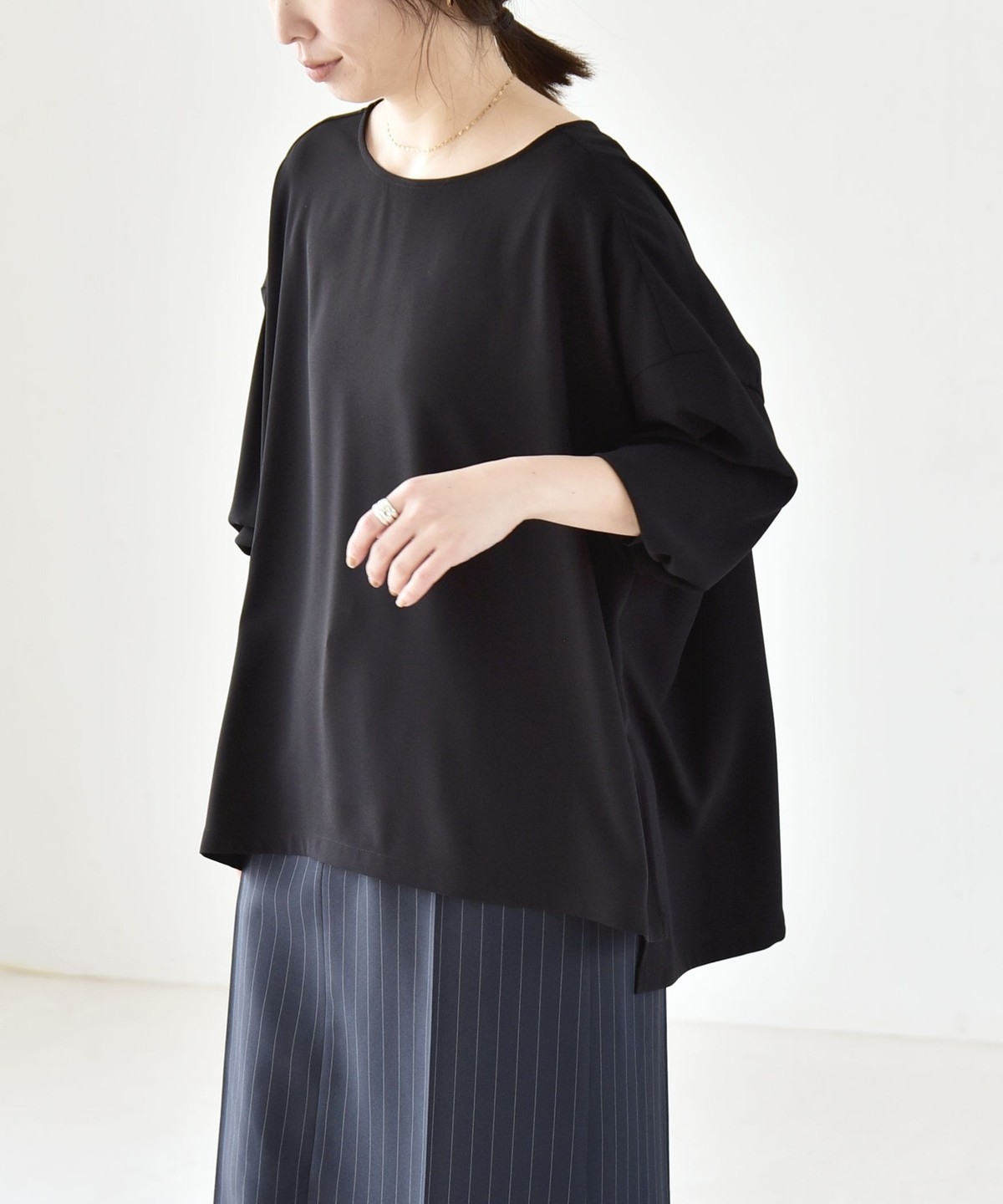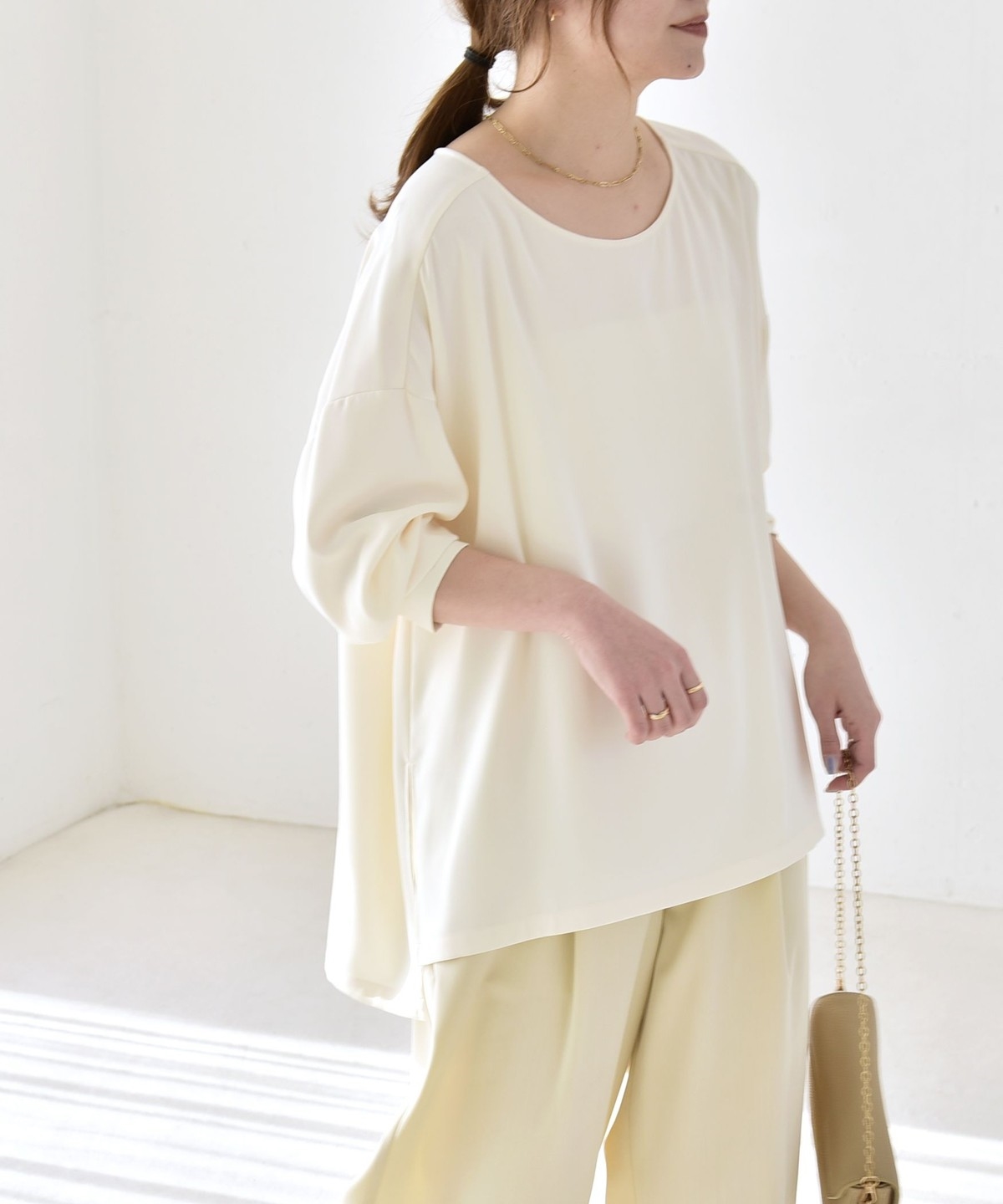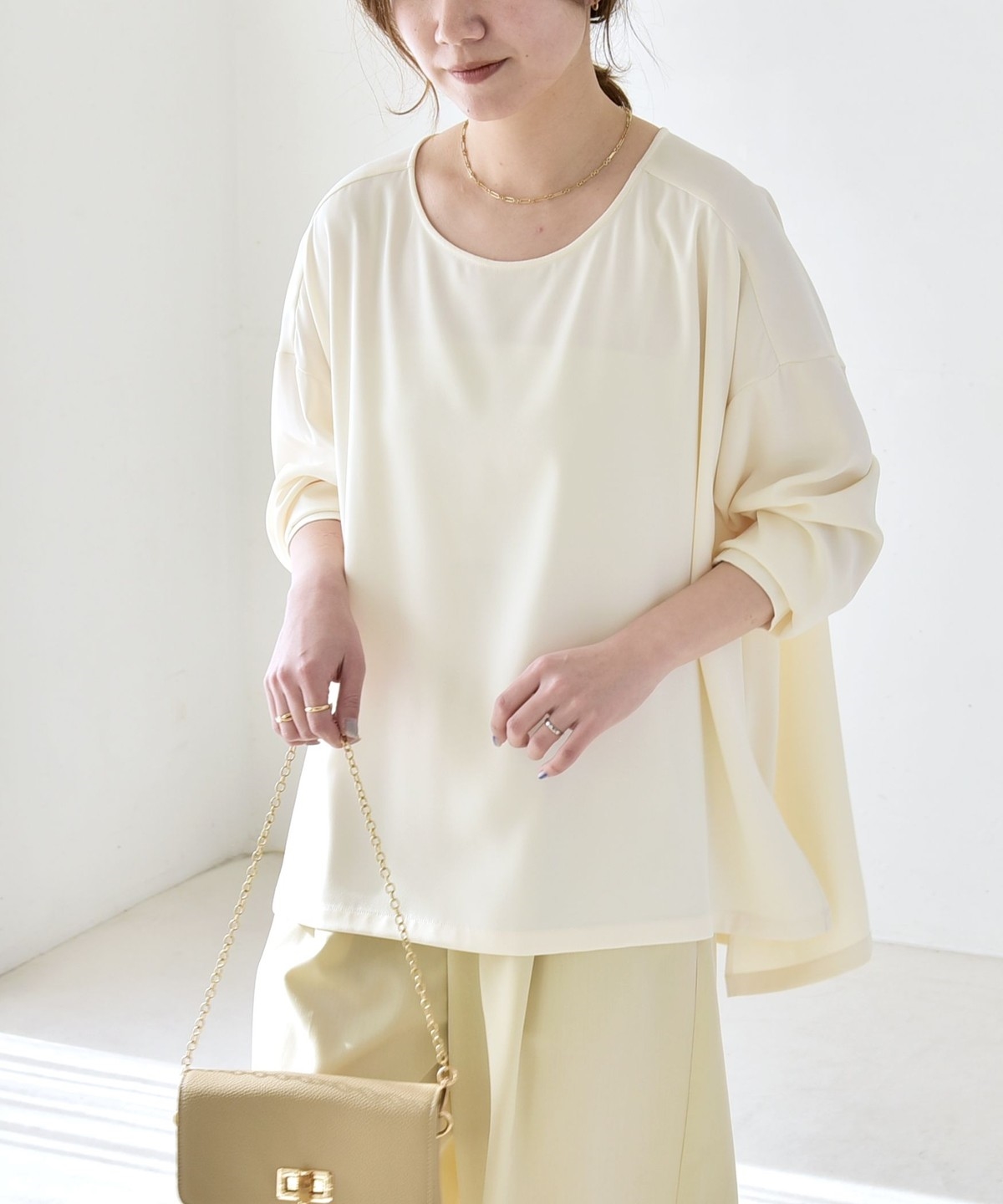 落ち感のあるとろみ素材が女性らしいT-ブラウスが登場。