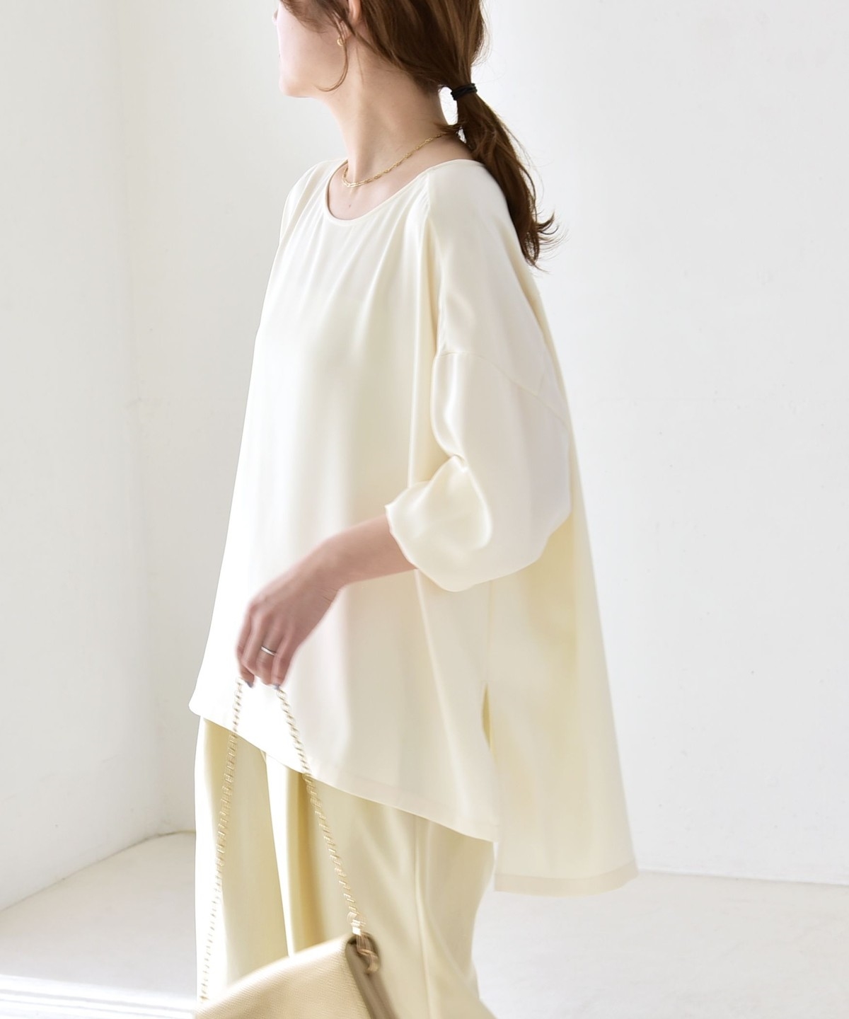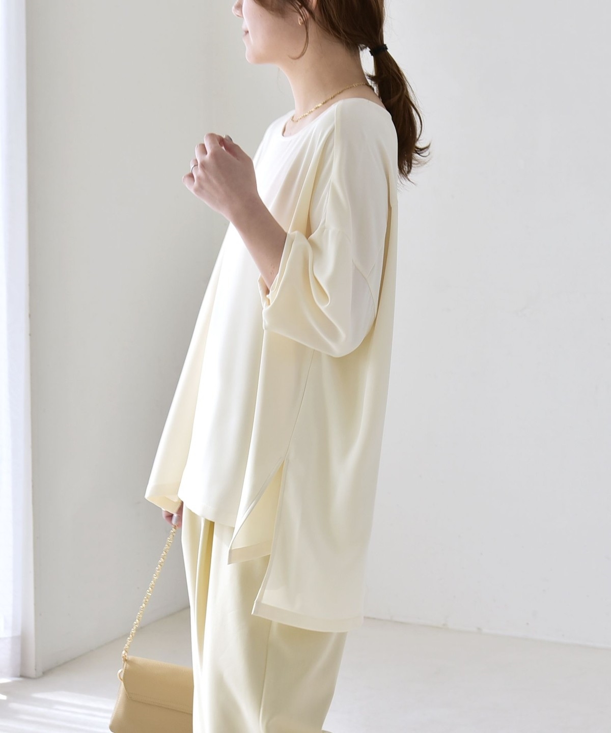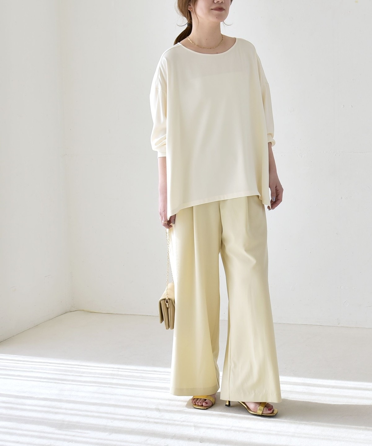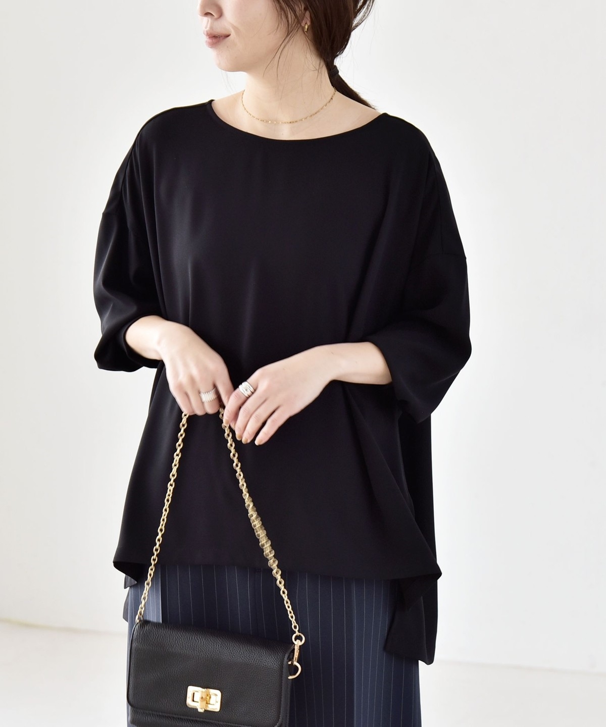落ち感のあるとろみ素材が女性らしいT-ブラウスが登場。