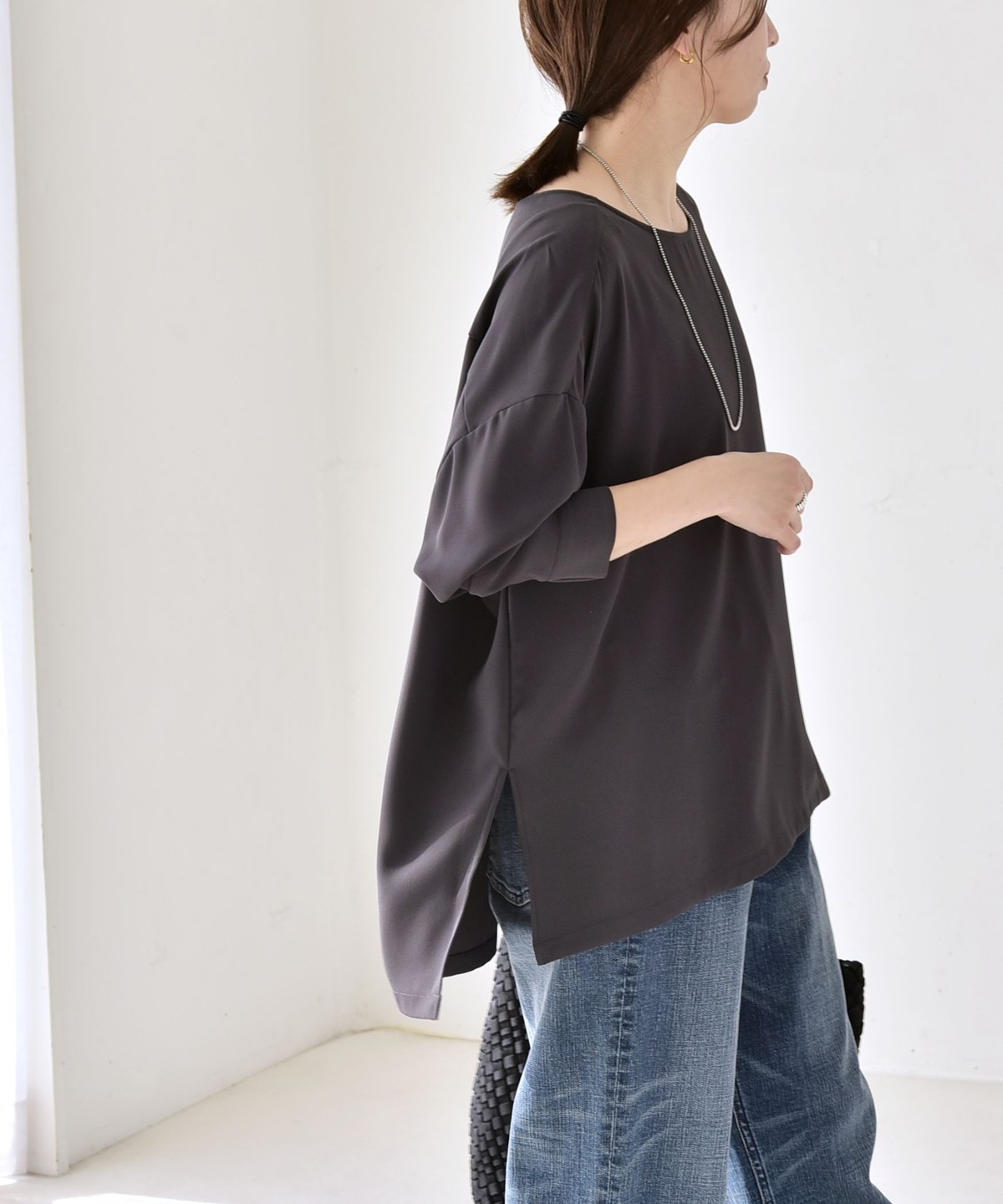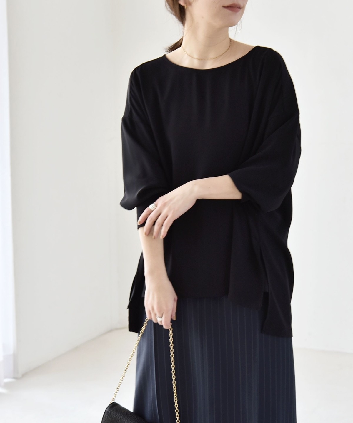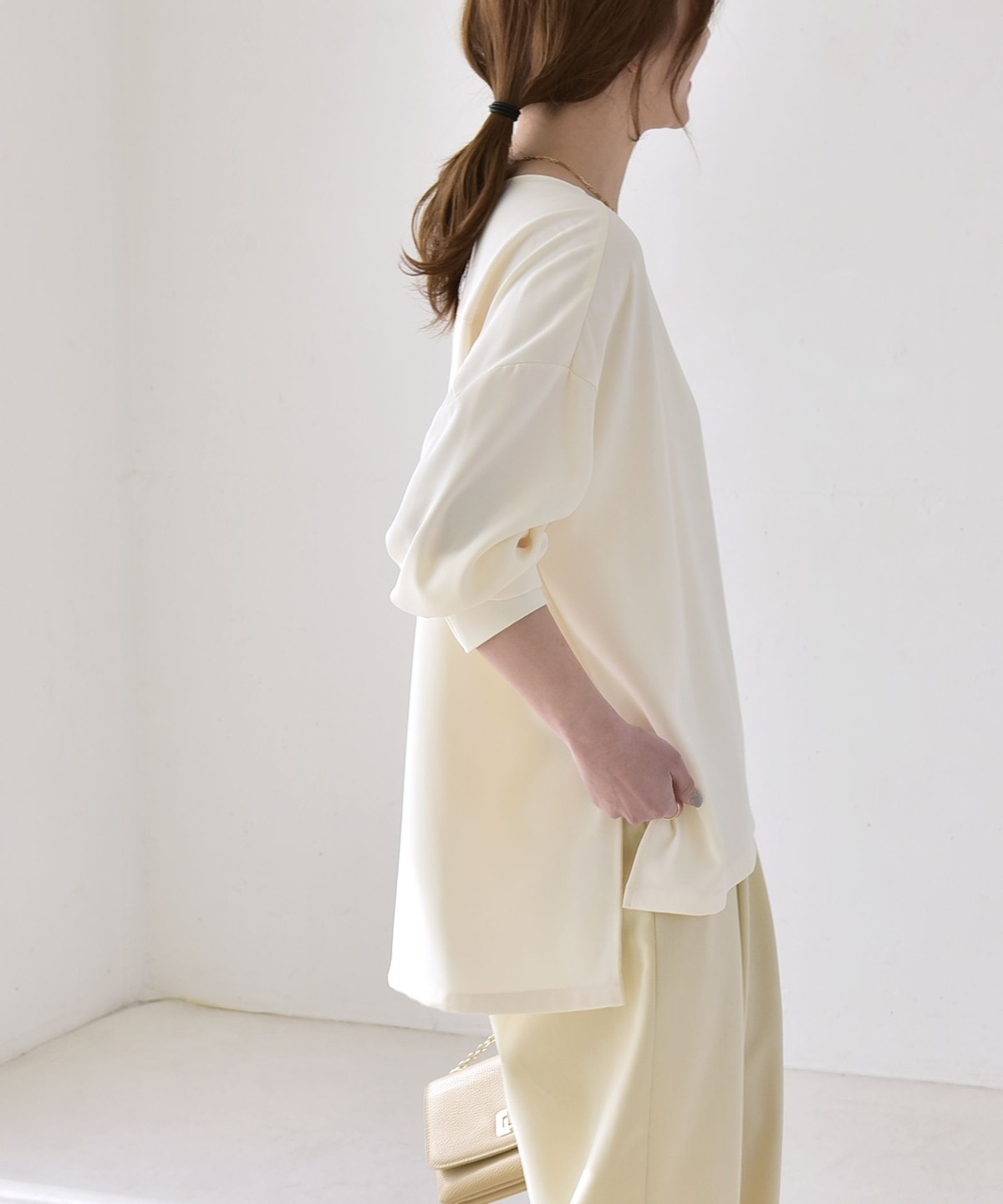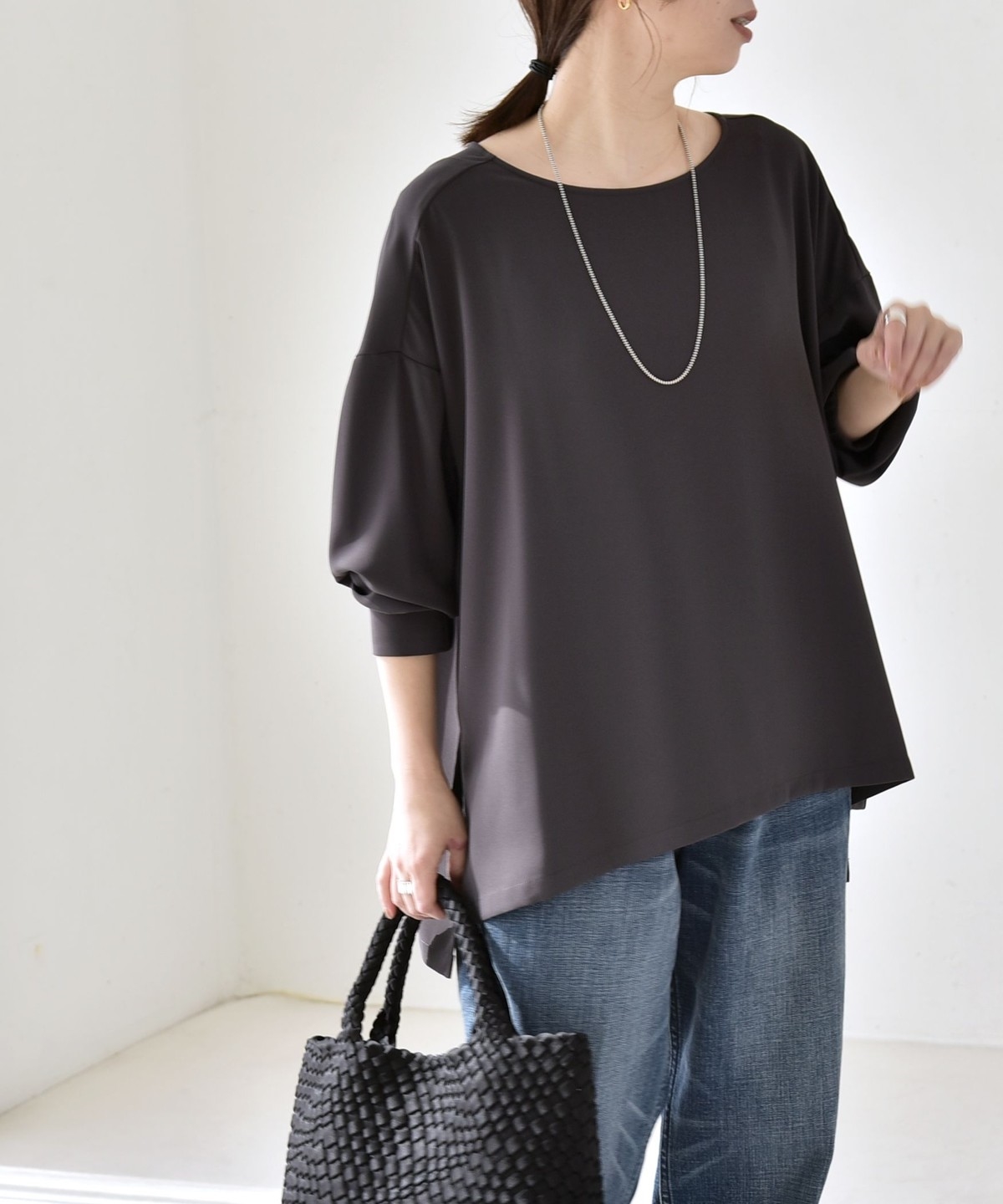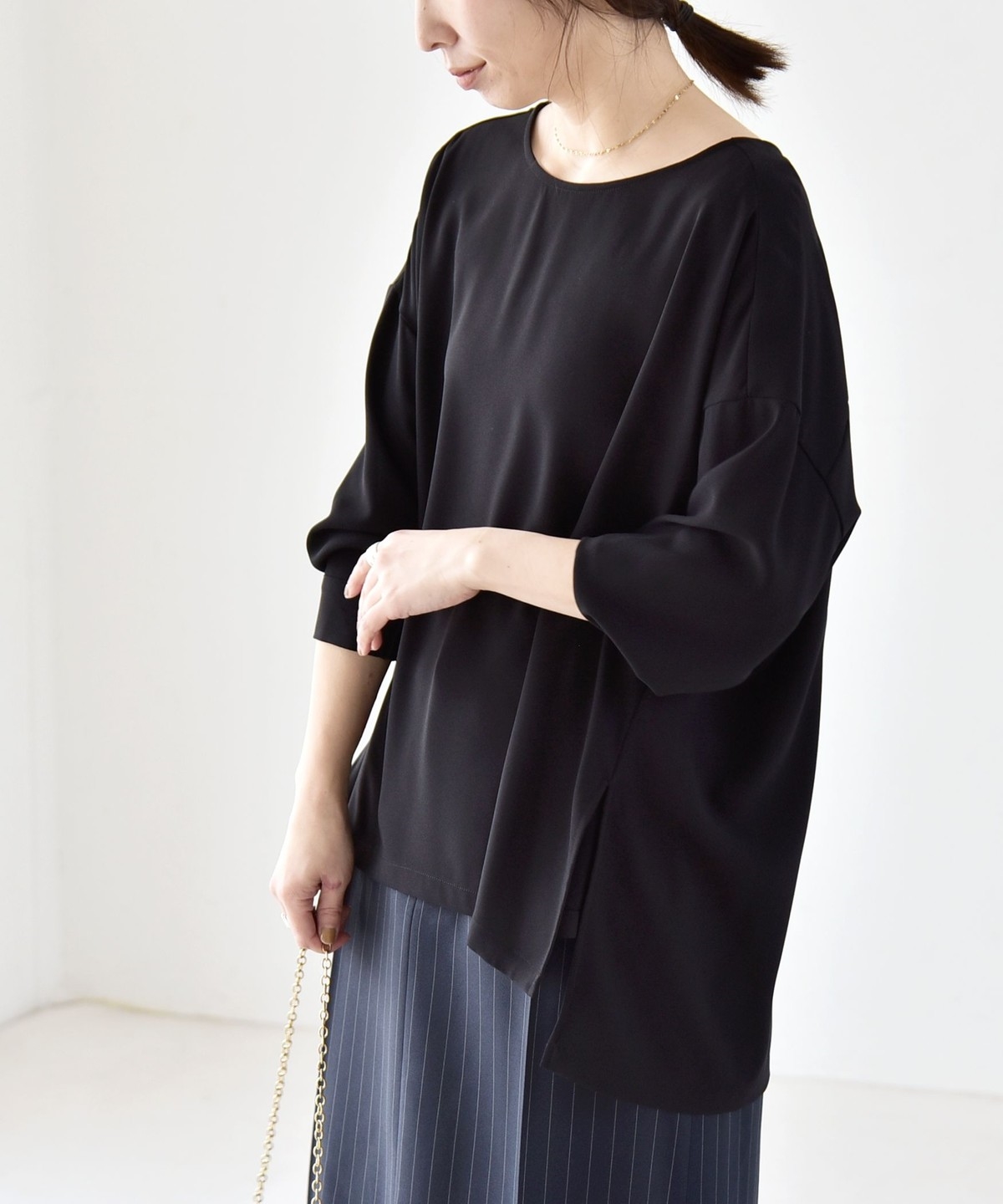 落ち感のあるとろみ素材が女性らしいT-ブラウスが登場。