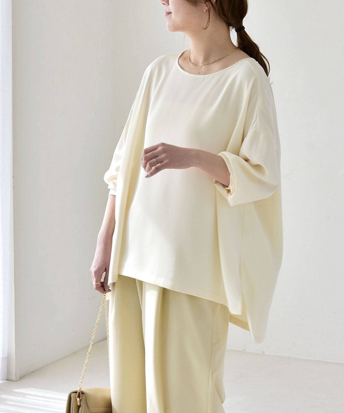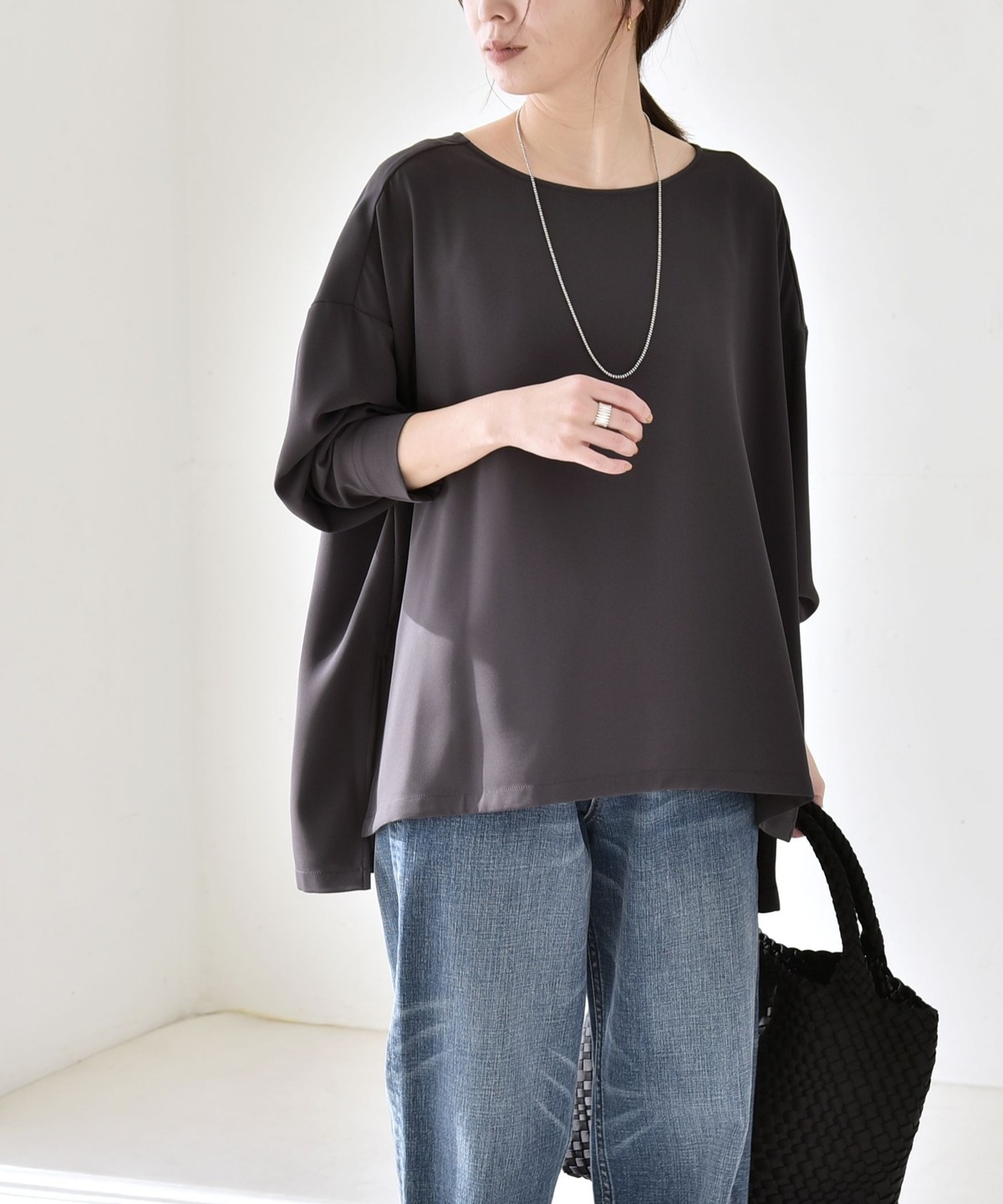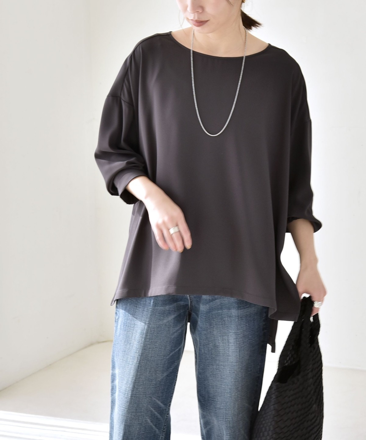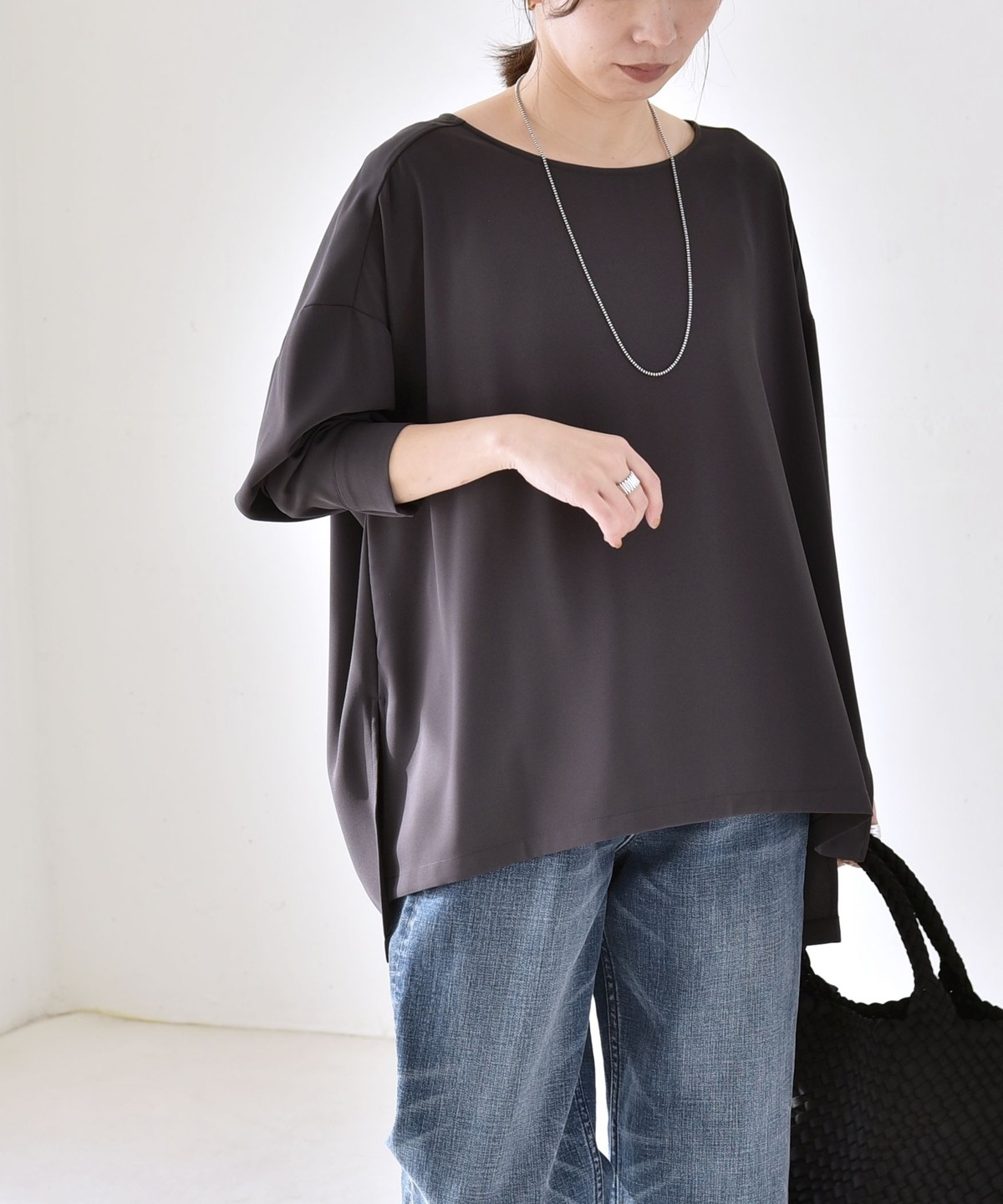 落ち感のあるとろみ素材が女性らしいT-ブラウスが登場。