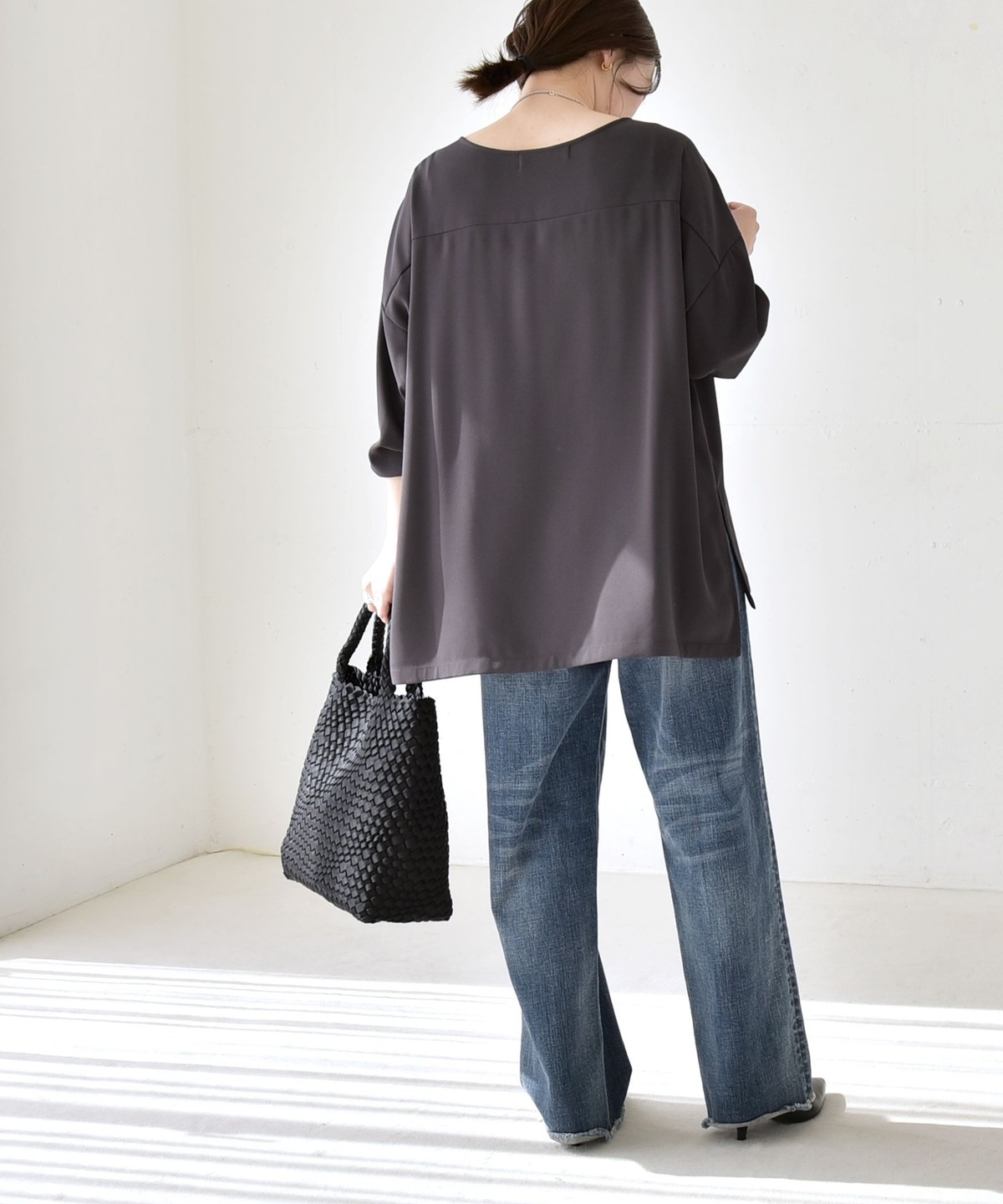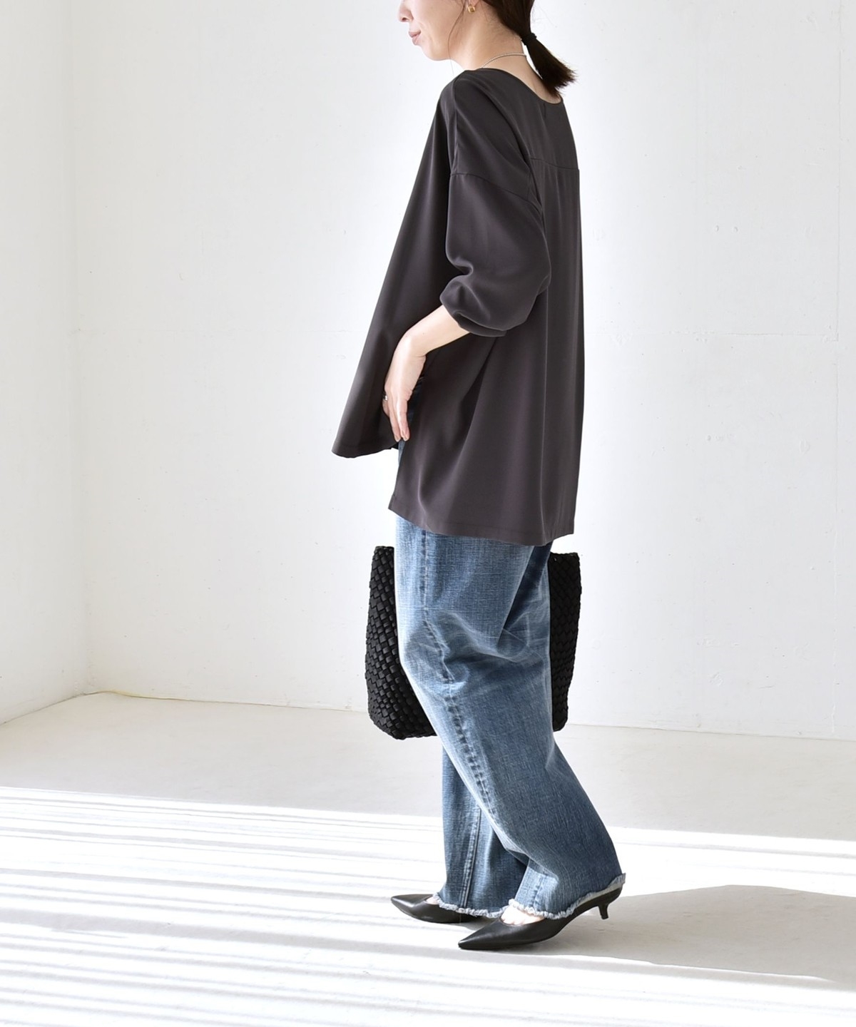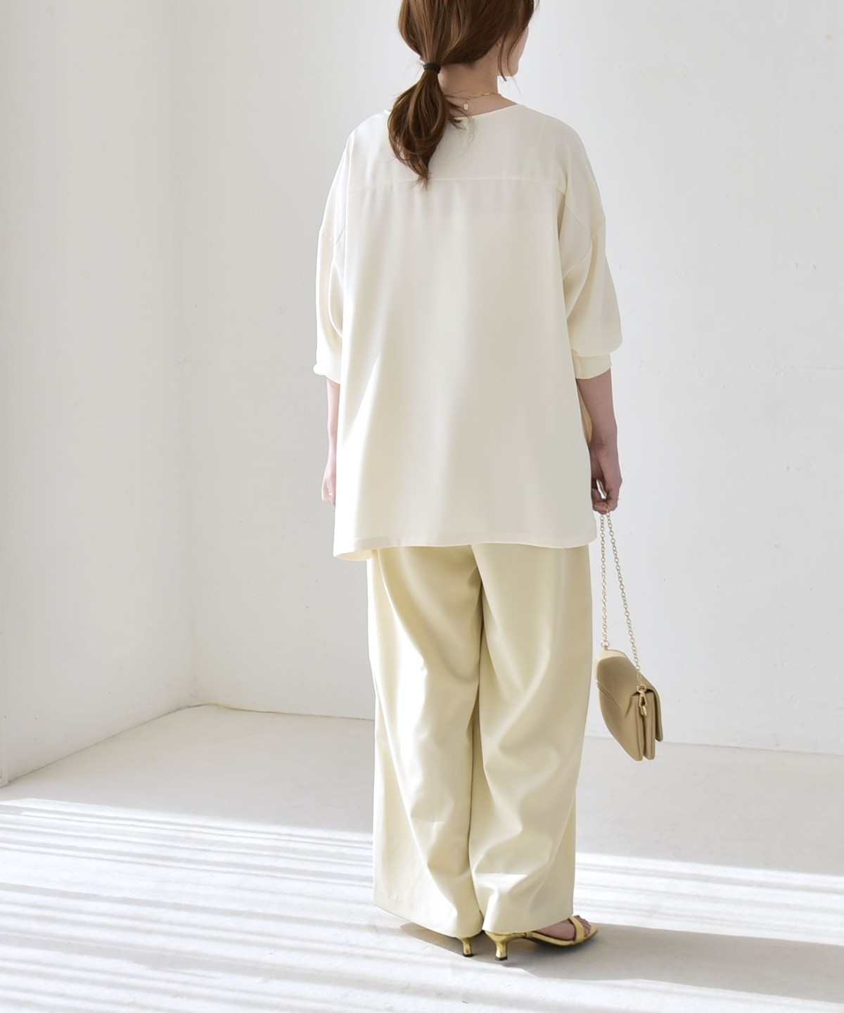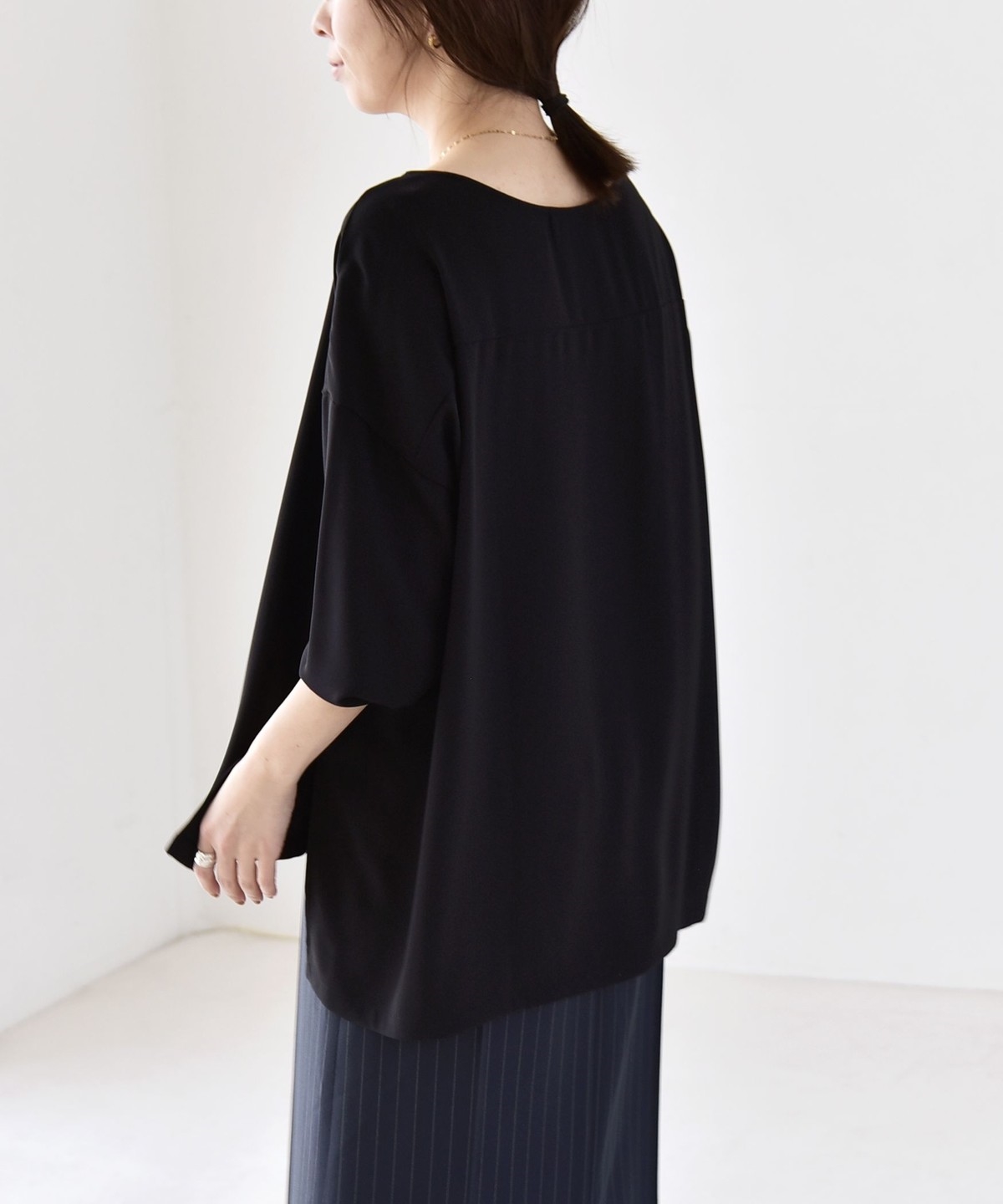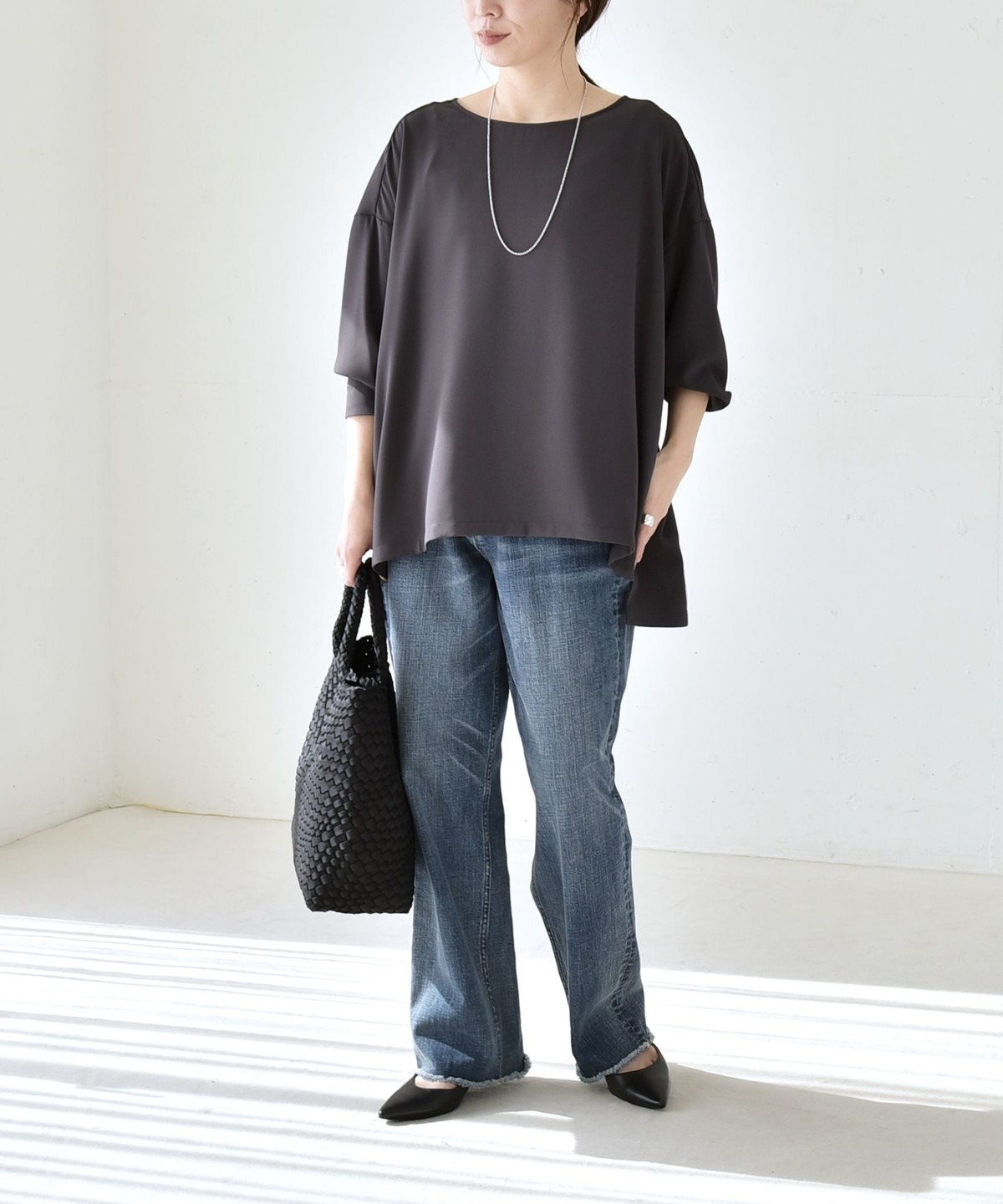 落ち感のあるとろみ素材が女性らしいT-ブラウスが登場。