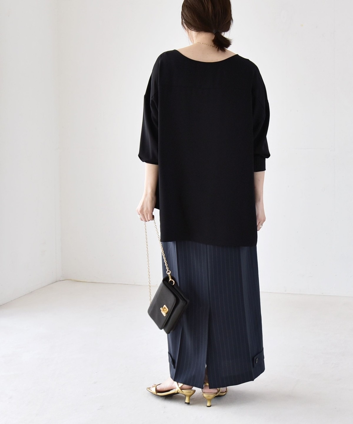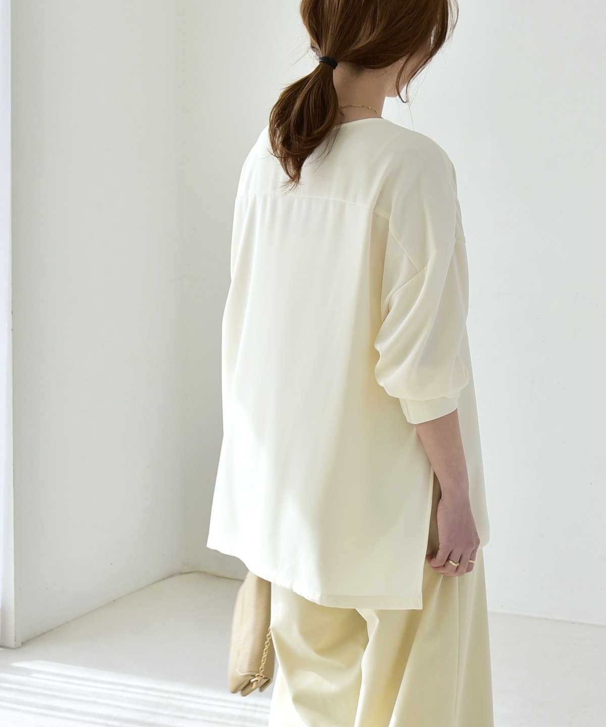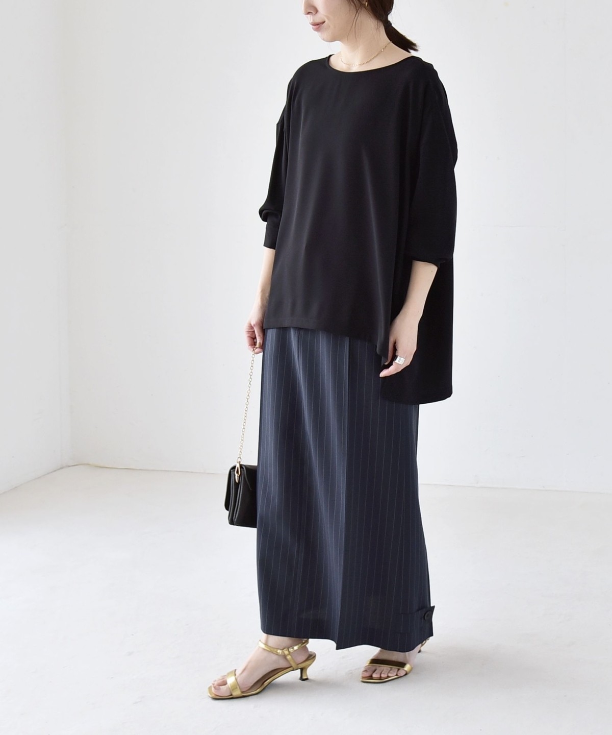 サイドのスリットと軽い生地感で、着るだけでニュアンスのある大人っぽい着こなしに。
