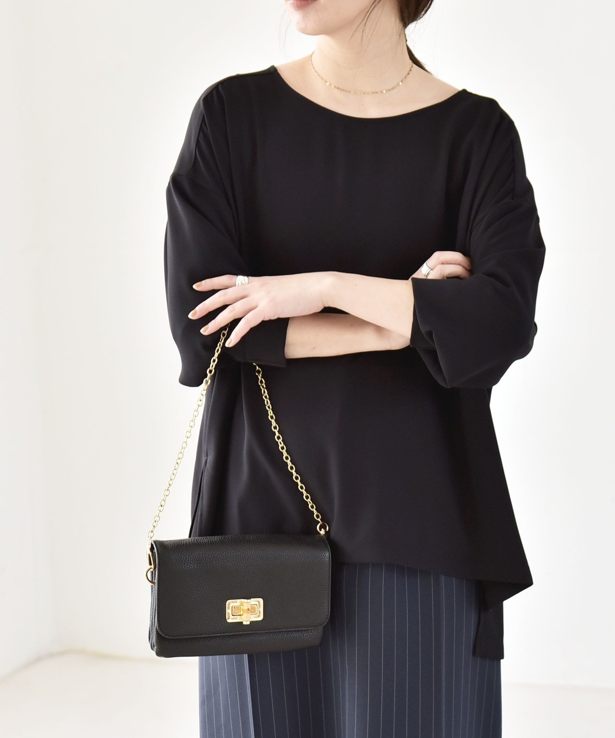 首元はややゆるく開いているため、アクセサリー合わせがおすすめ。