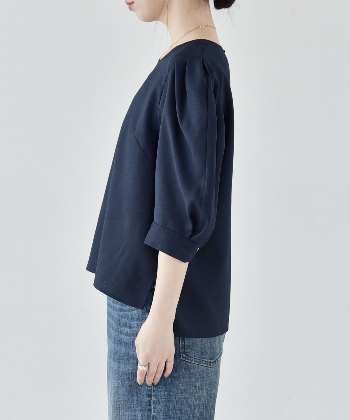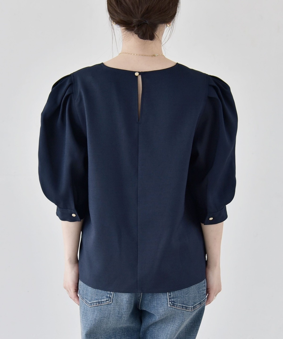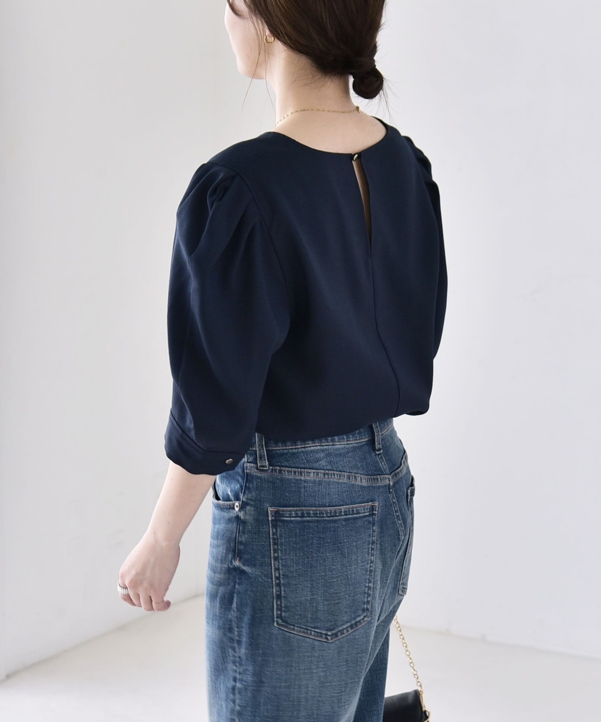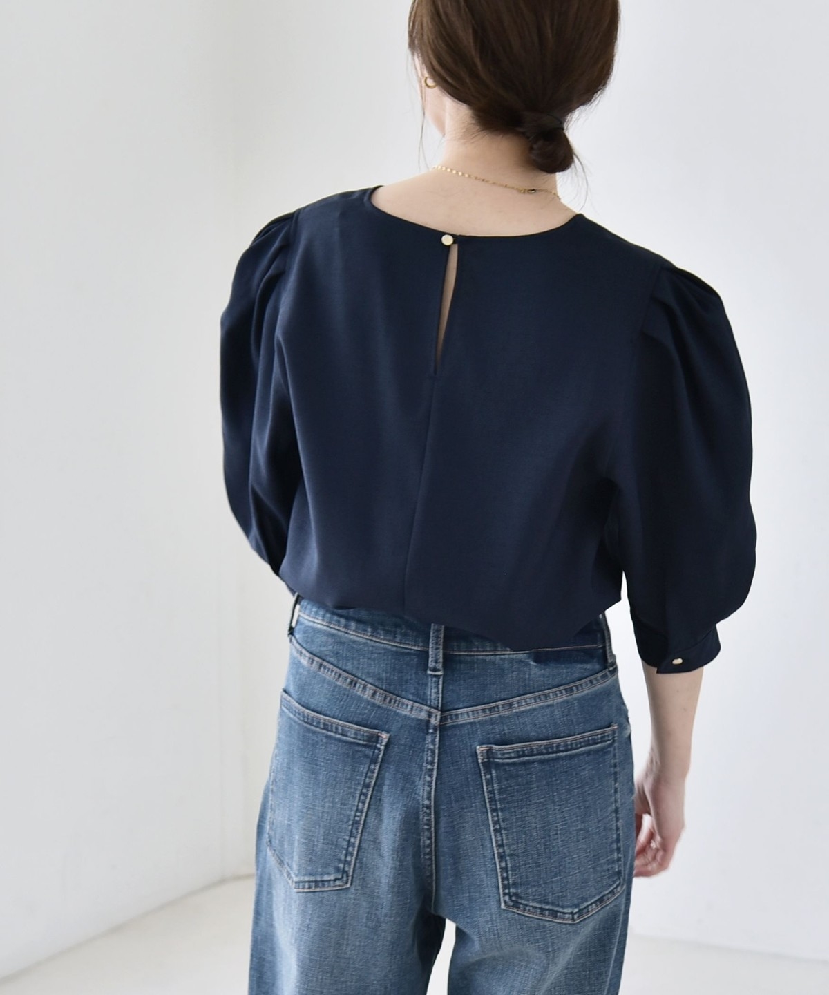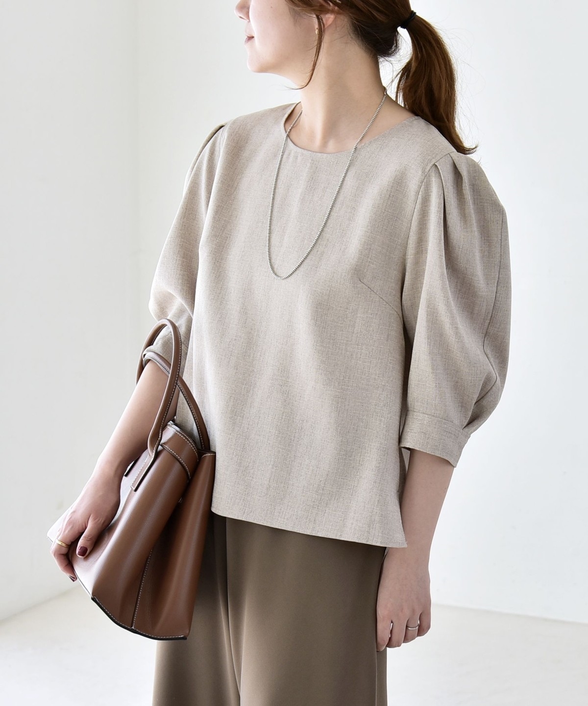 《予約》quaranciel:〈洗濯機可能〉リネンライク パフスリーブ クルーネック ブラウス