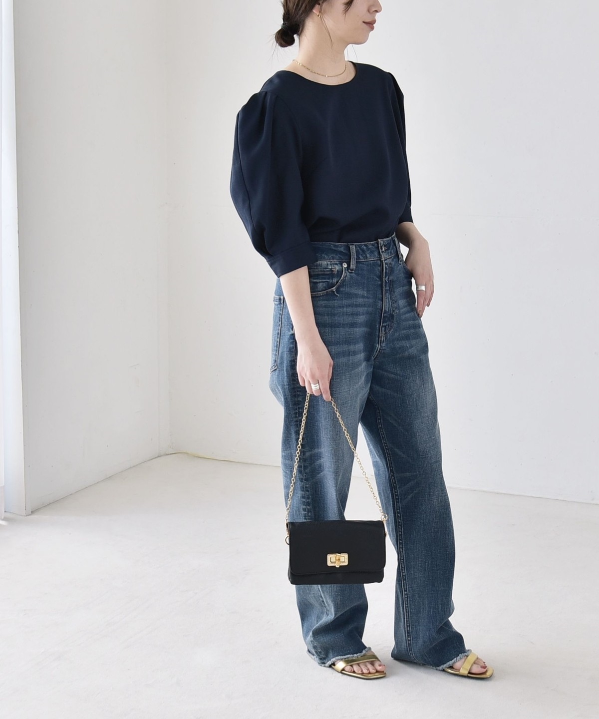 ベーシックにデニム合わせで、女性らしいカジュアルミックススタイルで着こなしたい一着。
