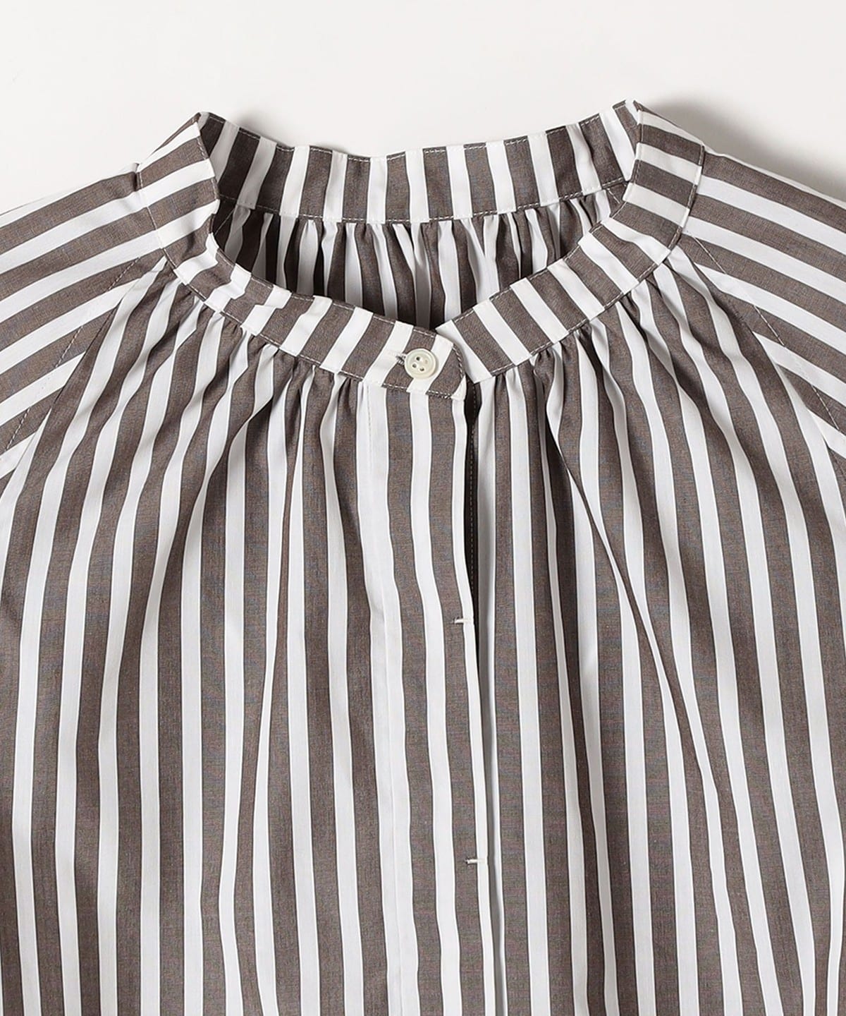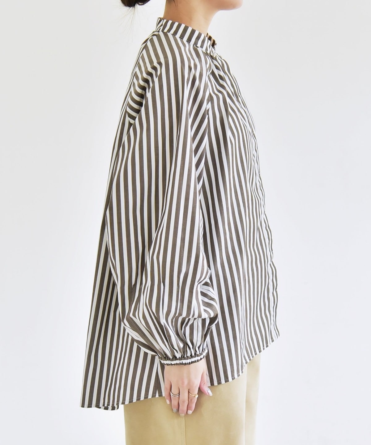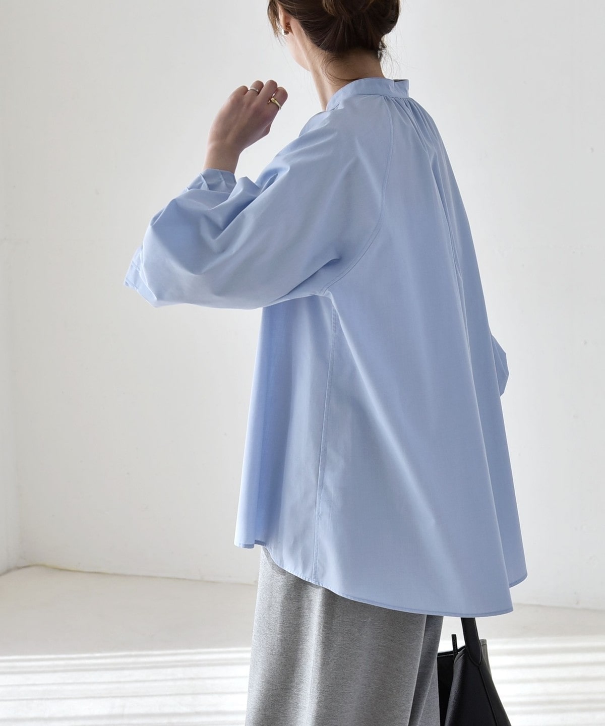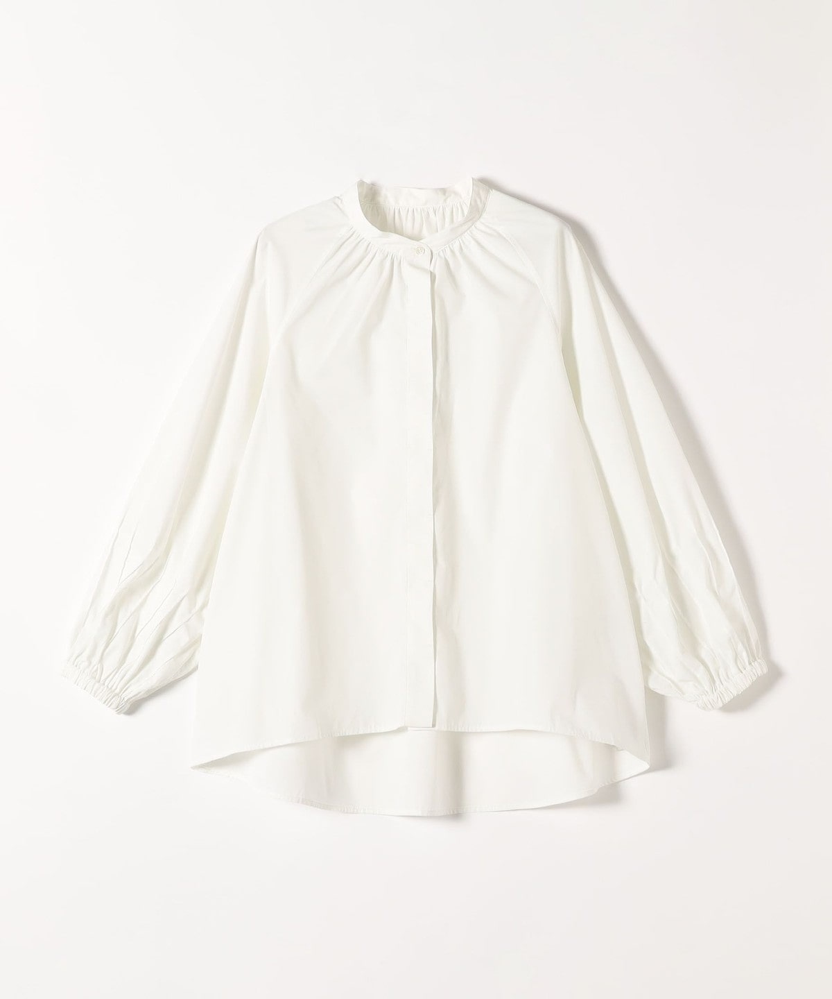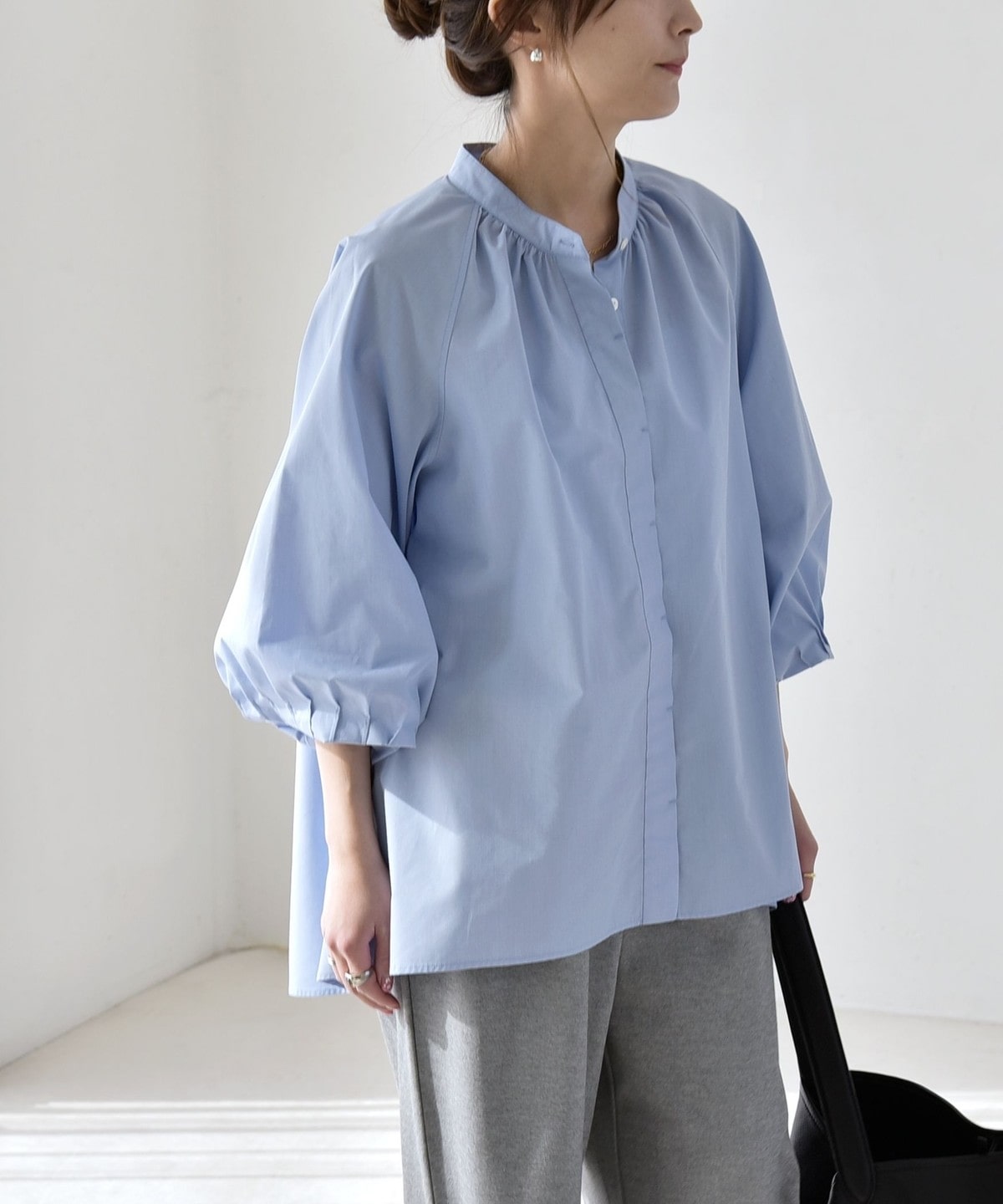 《一部予約》quaranciel:〈洗濯機可能〉REPREVE バンドカラー ギャザー パフ シャツ ブラウス