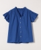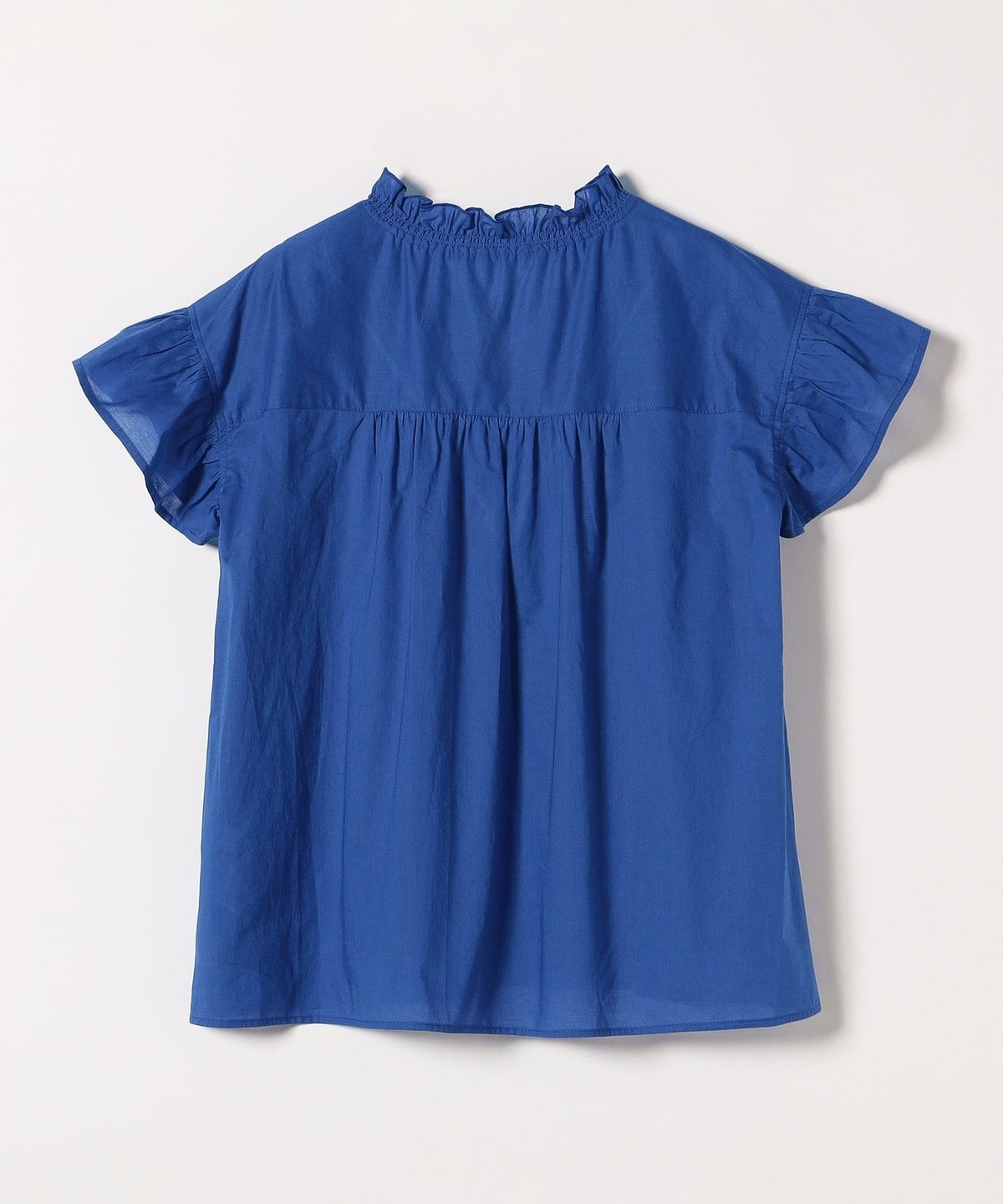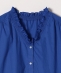 4. quaranciel:〈手洗い可能〉コットン フリルネック フレアスリーブ ブラウス ブルー