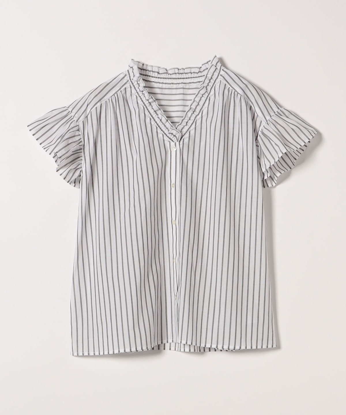 3. quaranciel:〈手洗い可能〉コットン フリルネック フレアスリーブ ブラウス グレー