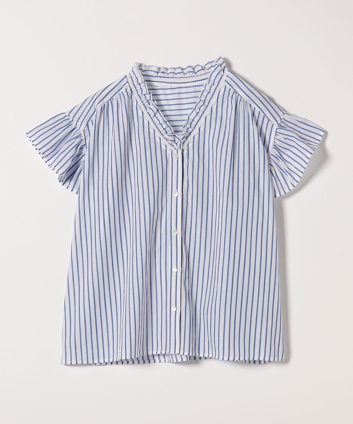 1. quaranciel:〈手洗い可能〉コットン フリルネック フレアスリーブ ブラウス ライトブルー
