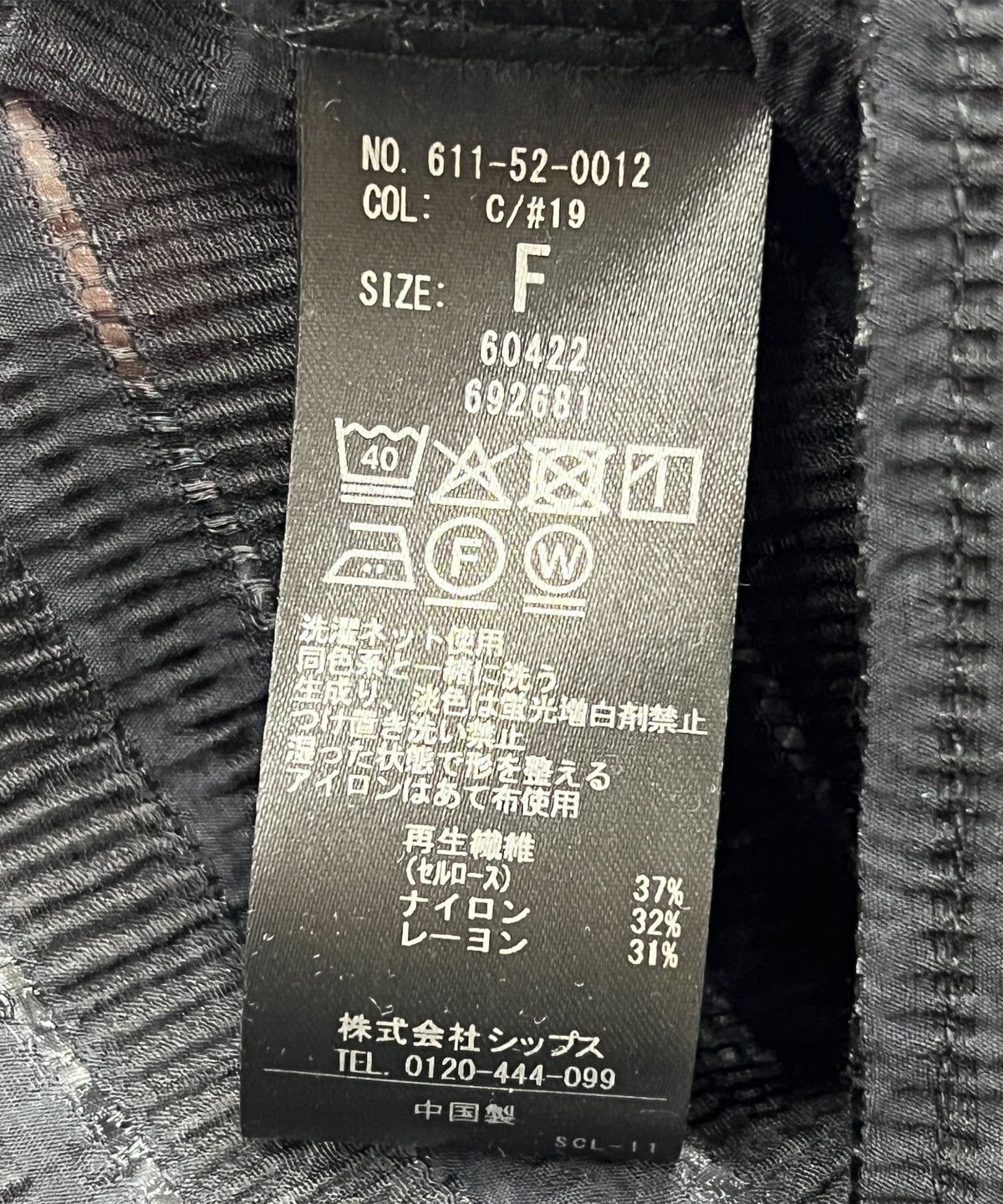 素材:再生繊維(セルロース)37%, ナイロン32%, レーヨン31%