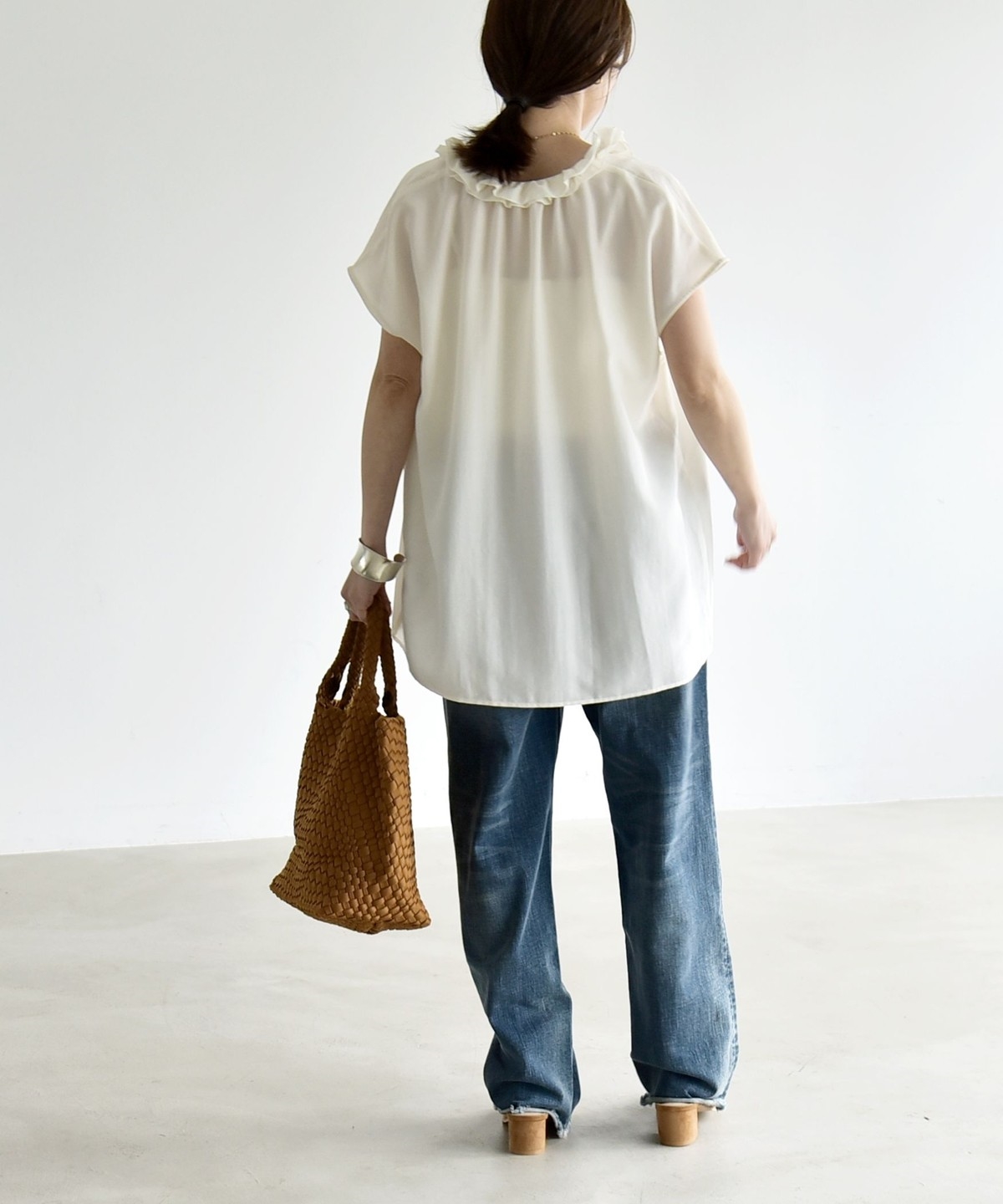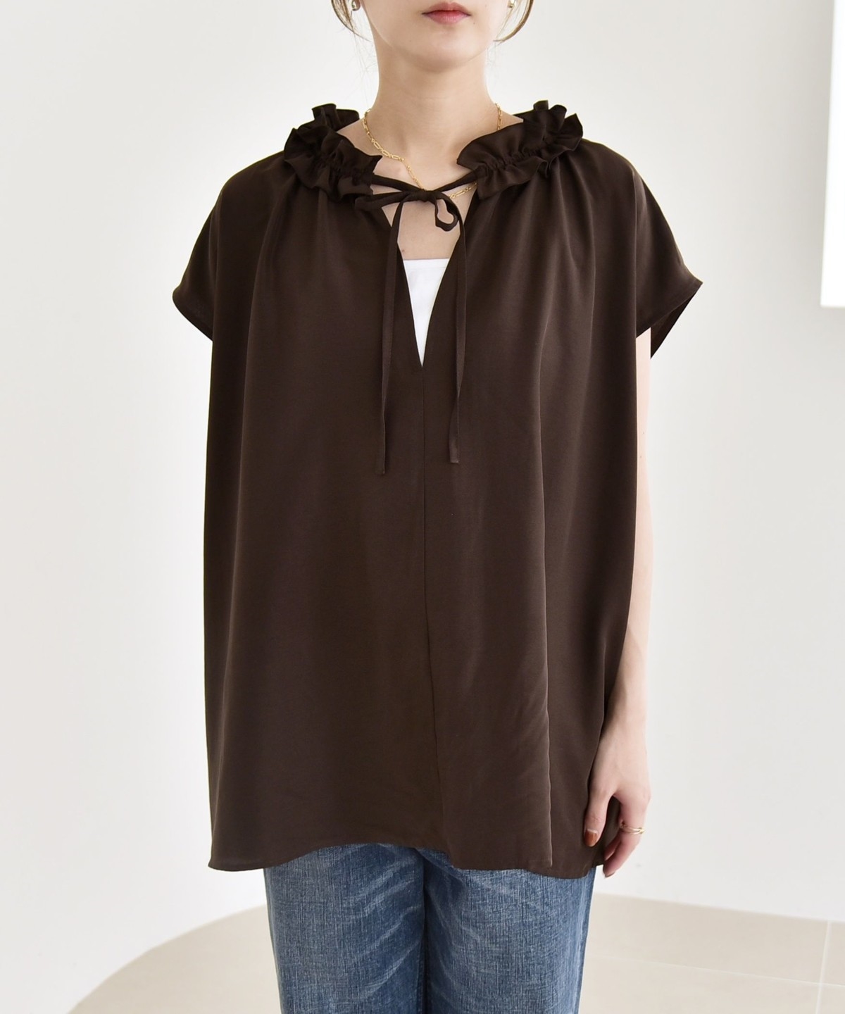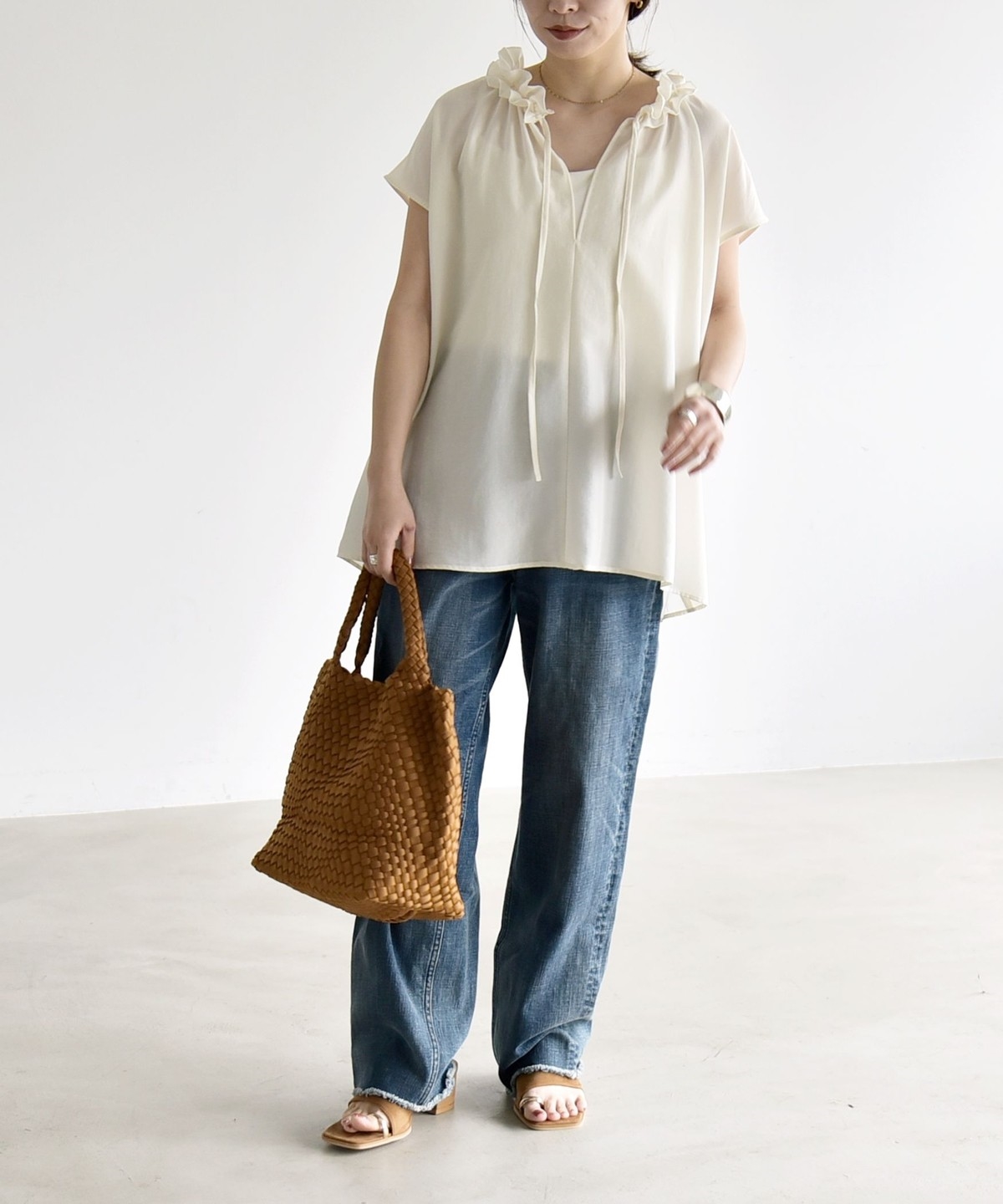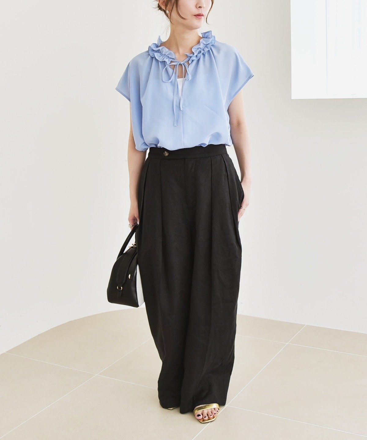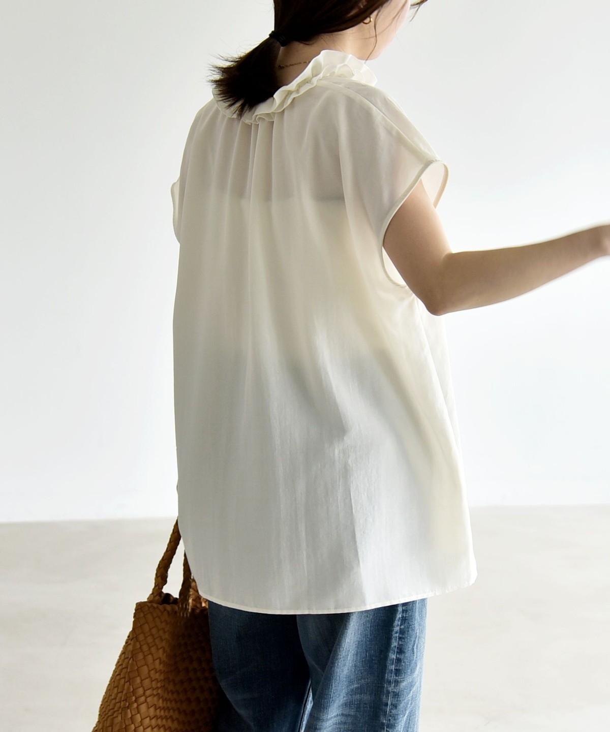 とろみ素材とフリルディテールが、大人フェミニンな主役ブラウス