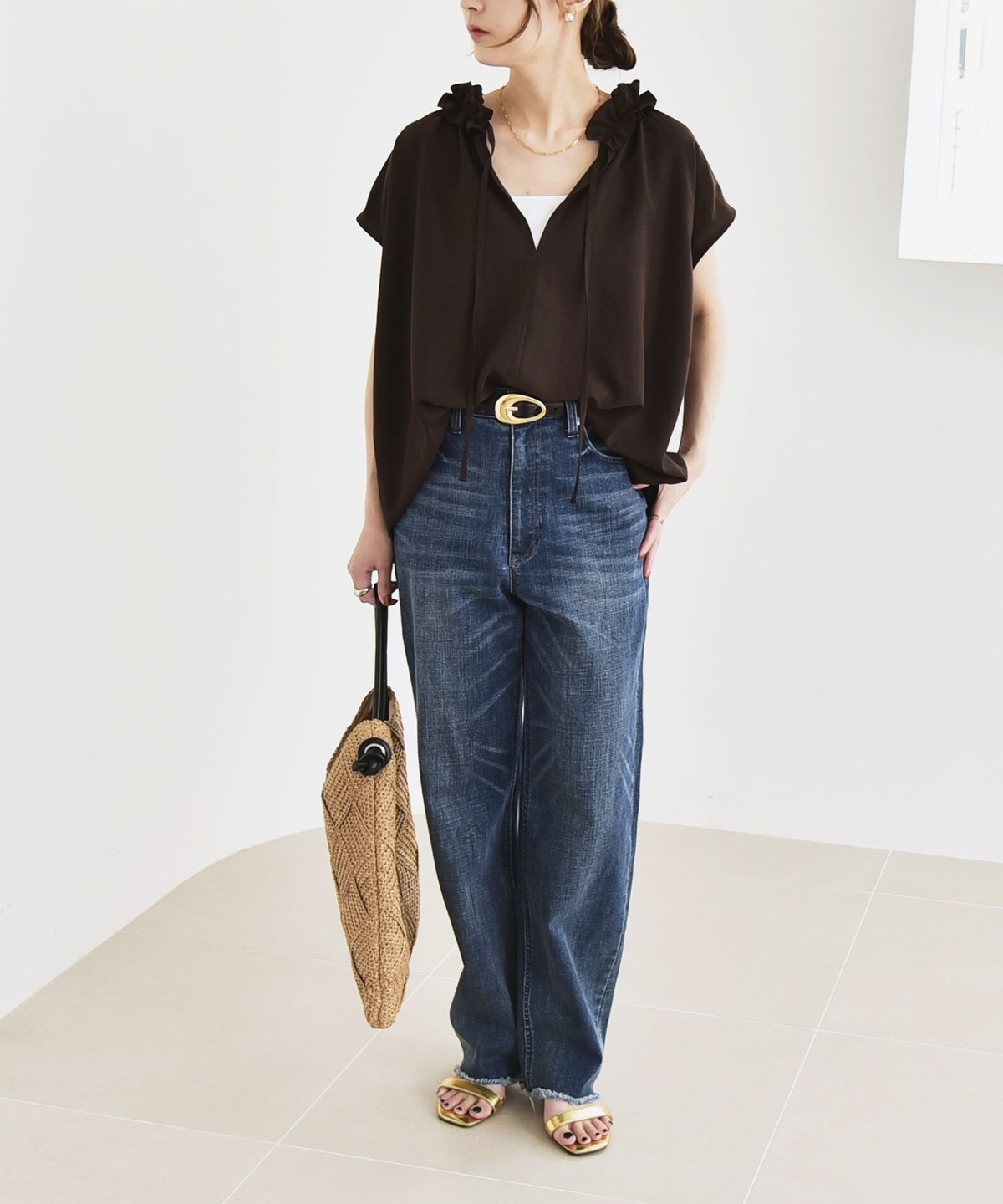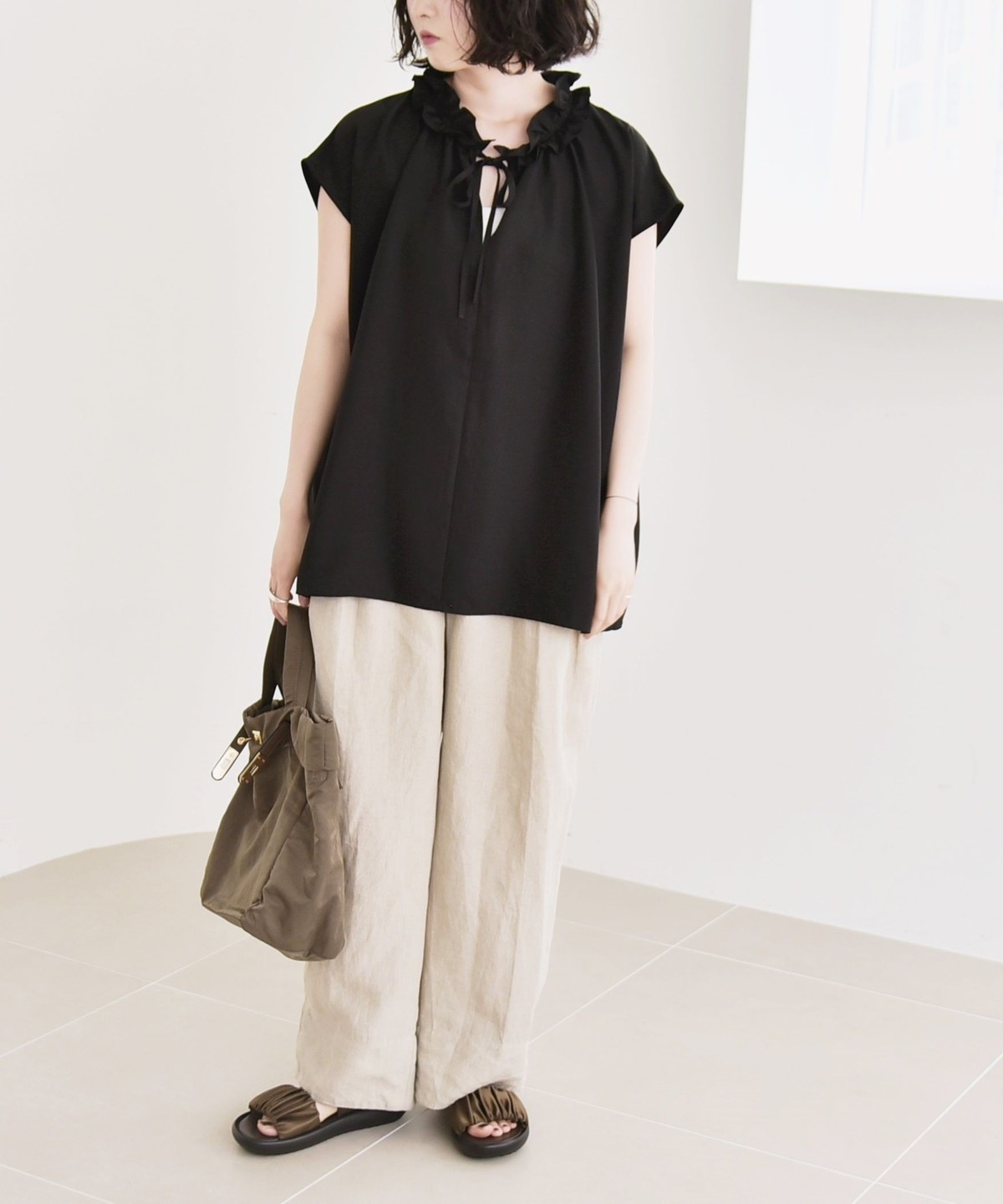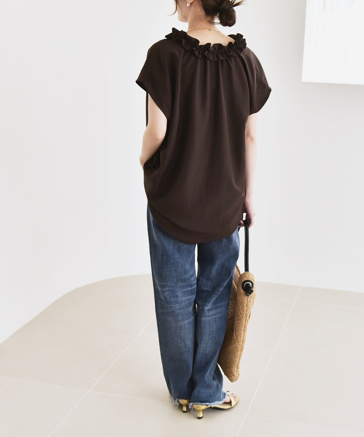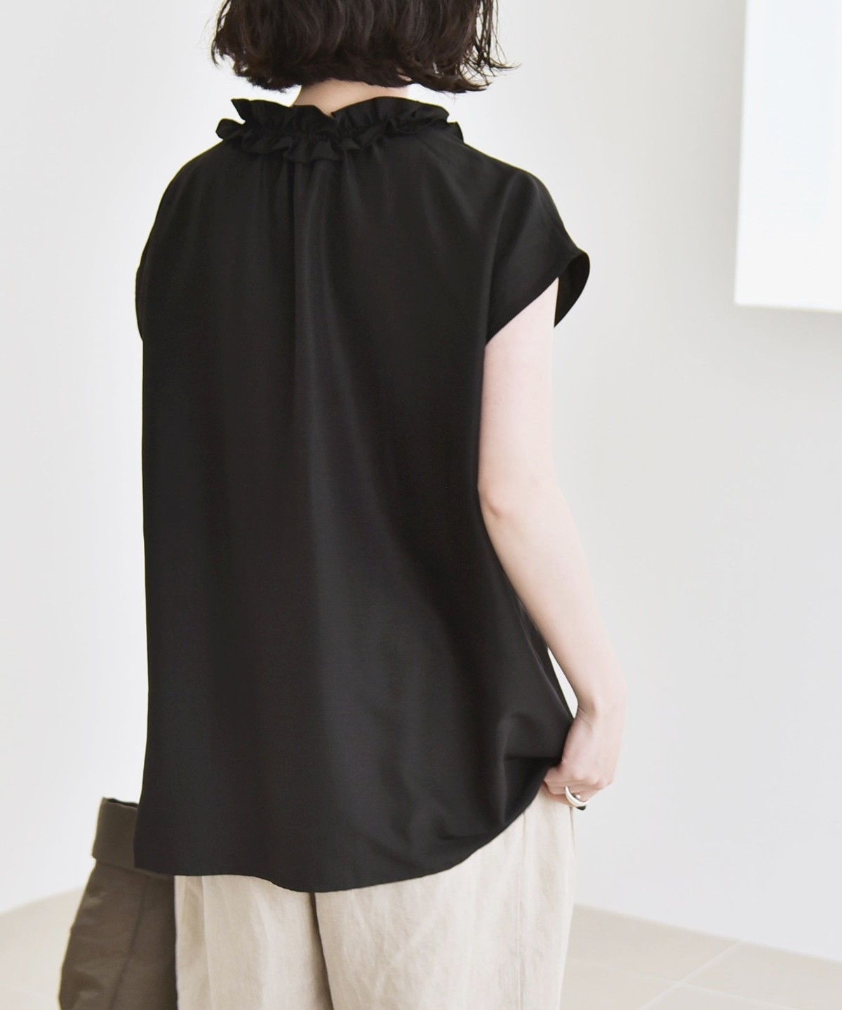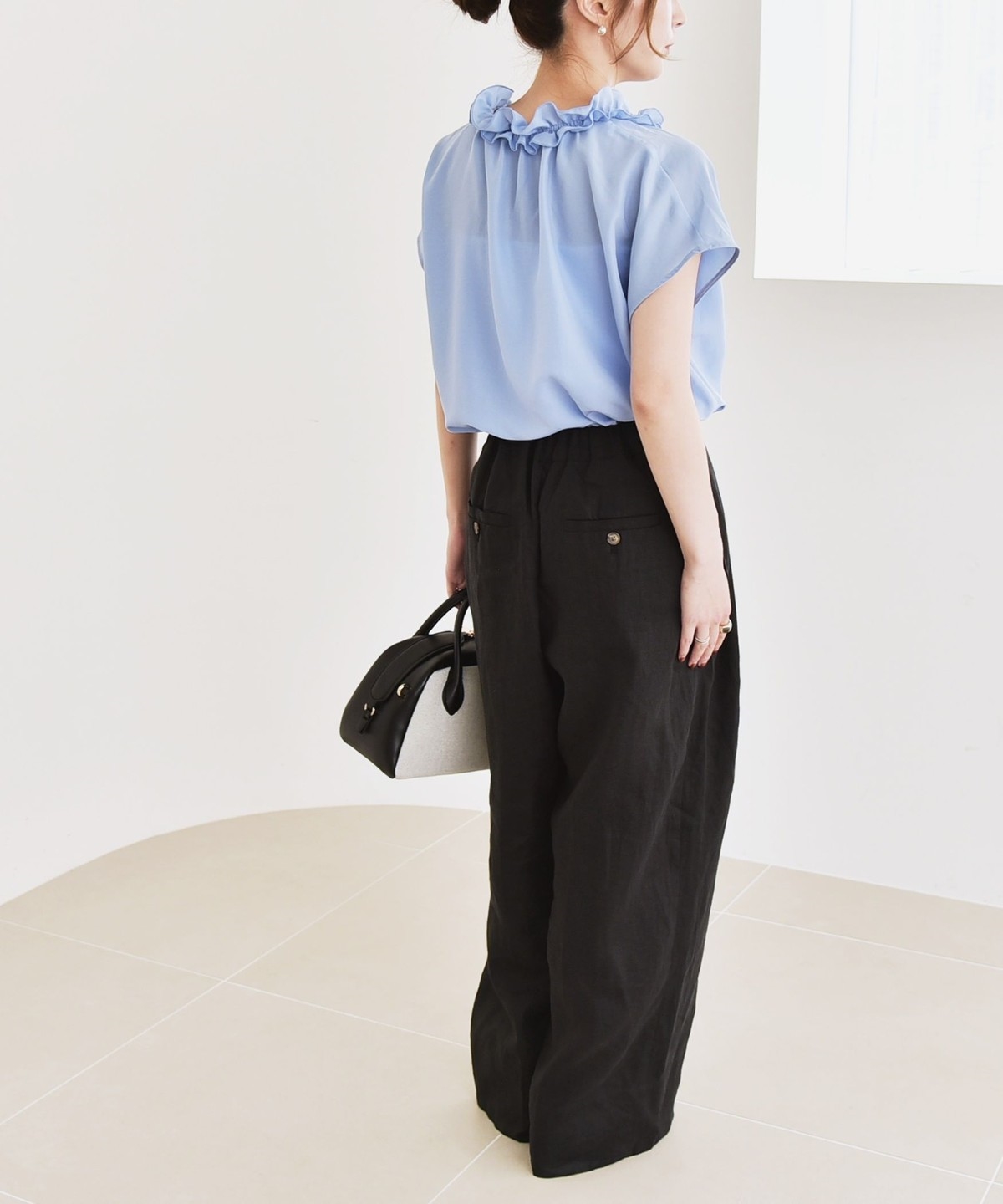 とろみ素材とフリルディテールが、大人フェミニンな主役ブラウス