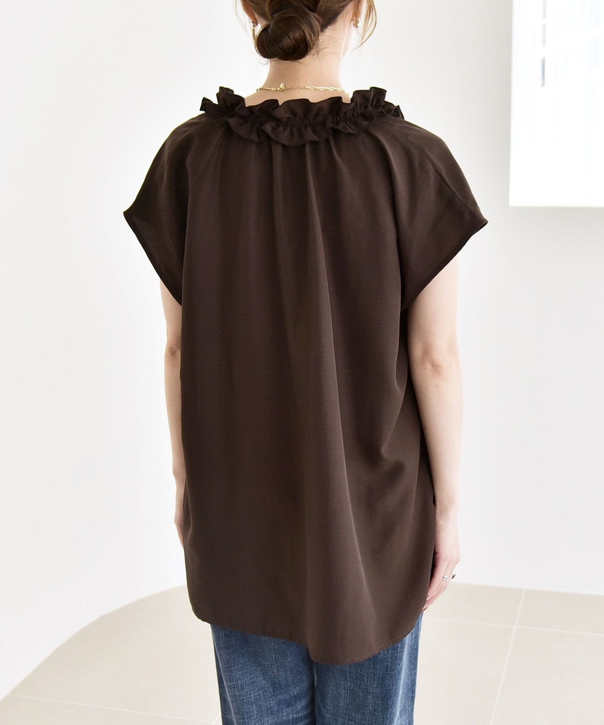 一枚ではもちろん、秋口にはジャケットやカーディガンからフリル襟を覗かせたレイヤードスタイルもおすすめ。