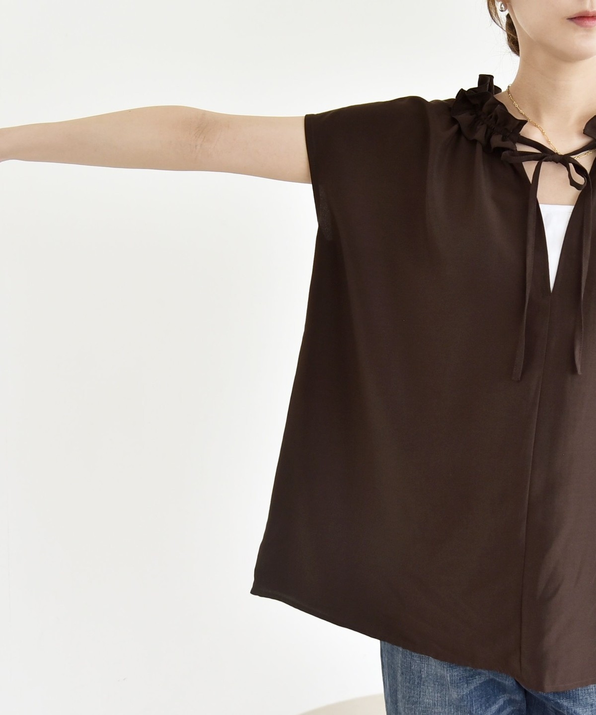 《追加予約》quaranciel:〈洗濯機可能〉フリルカラー リボン フレンチスリーブ ブラウス