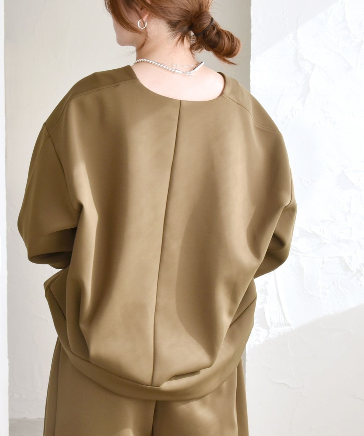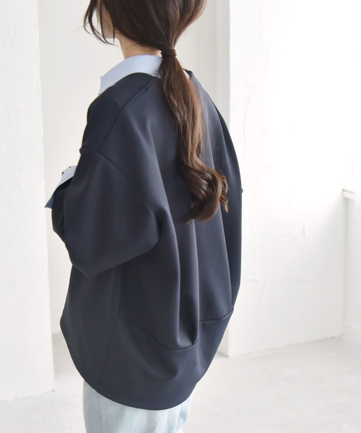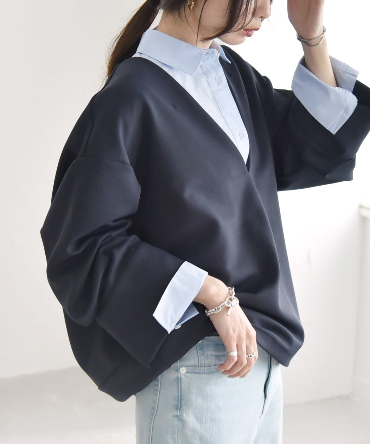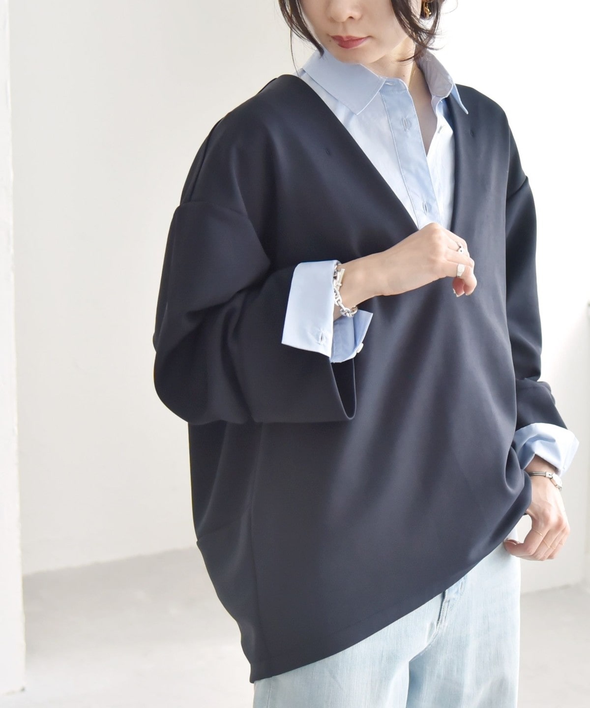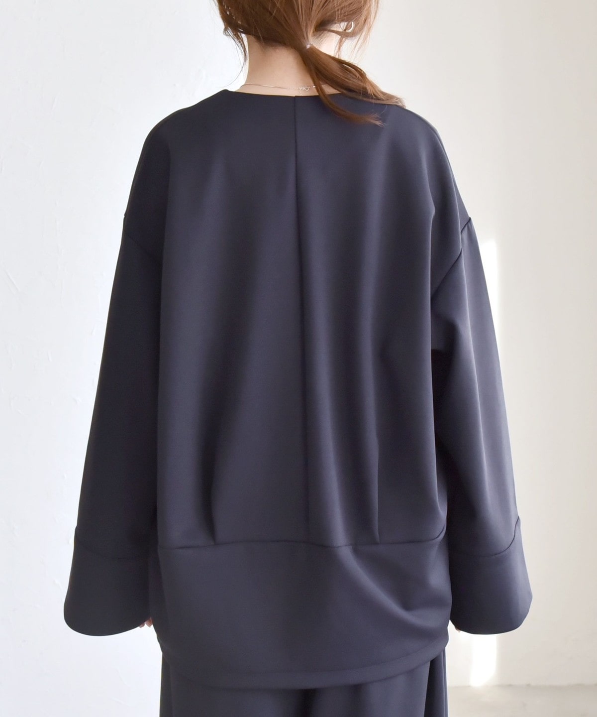 バックスタイルのコクーンシルエットがポイントのVネックプルオーバー。