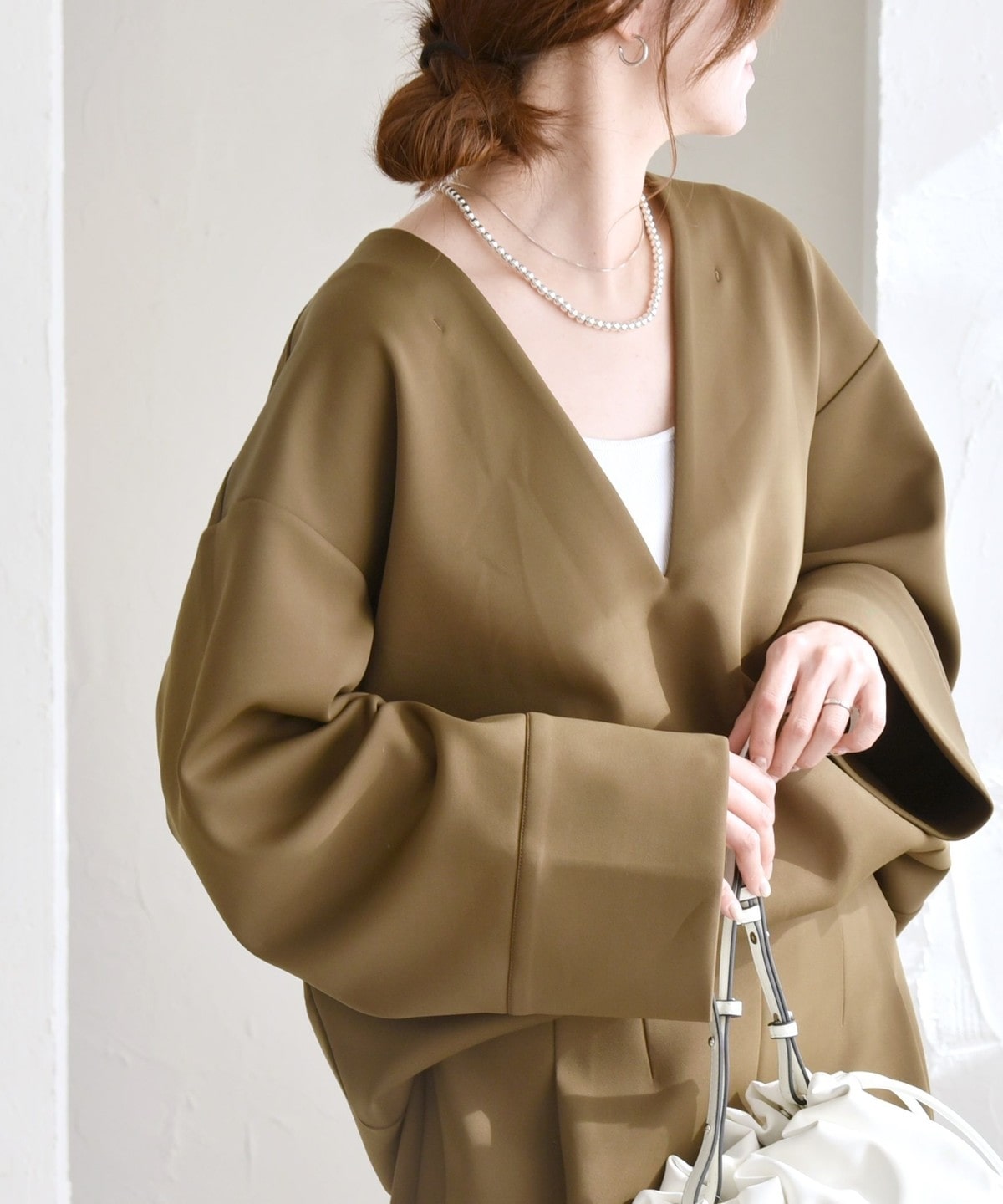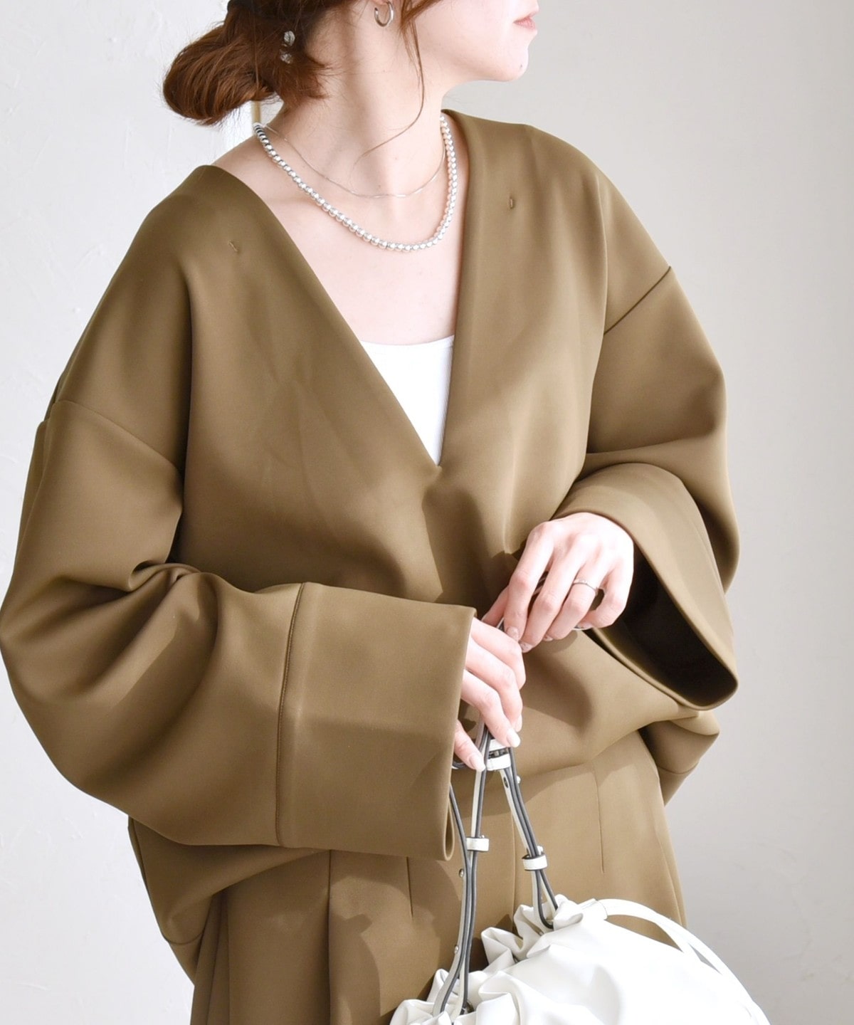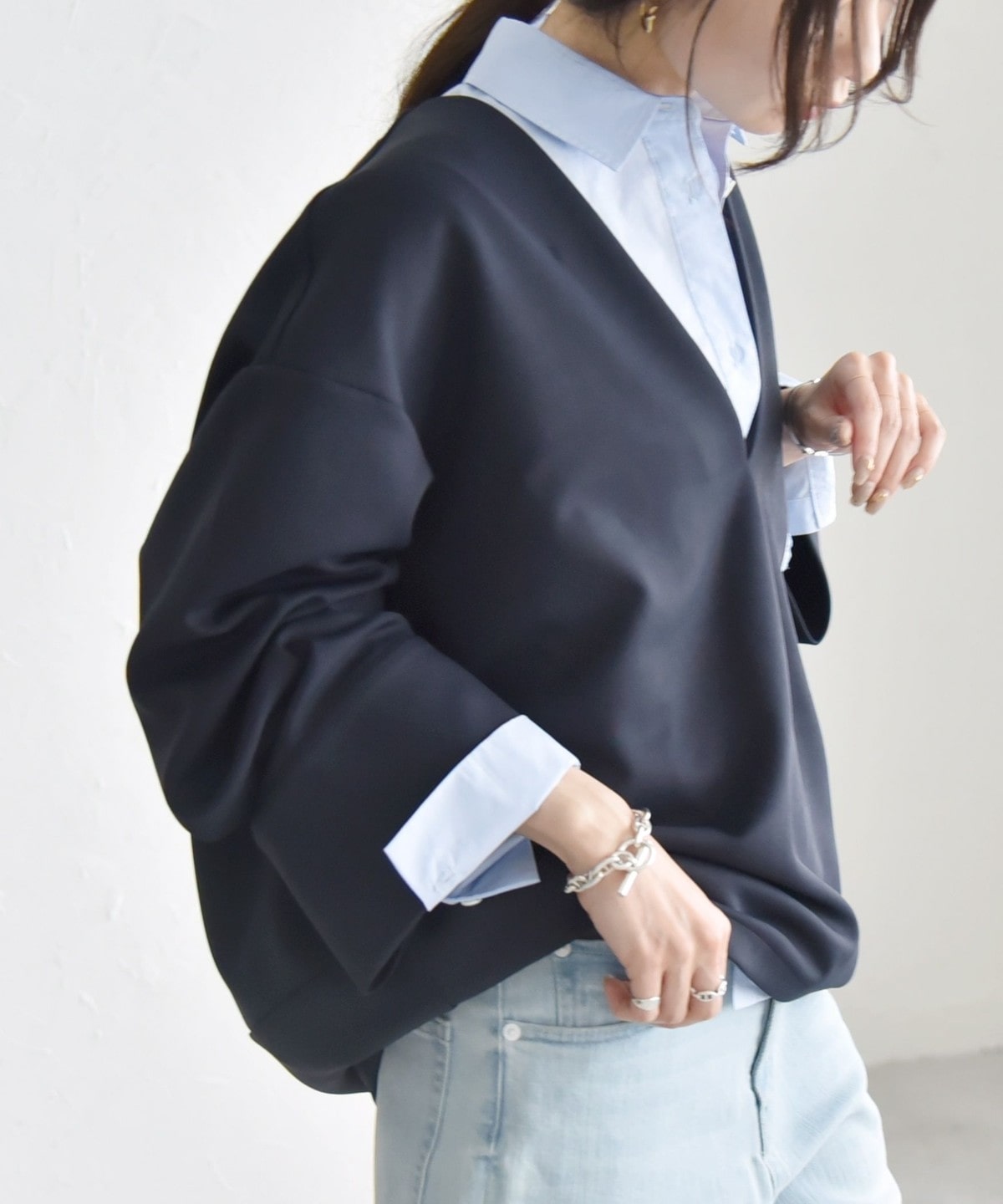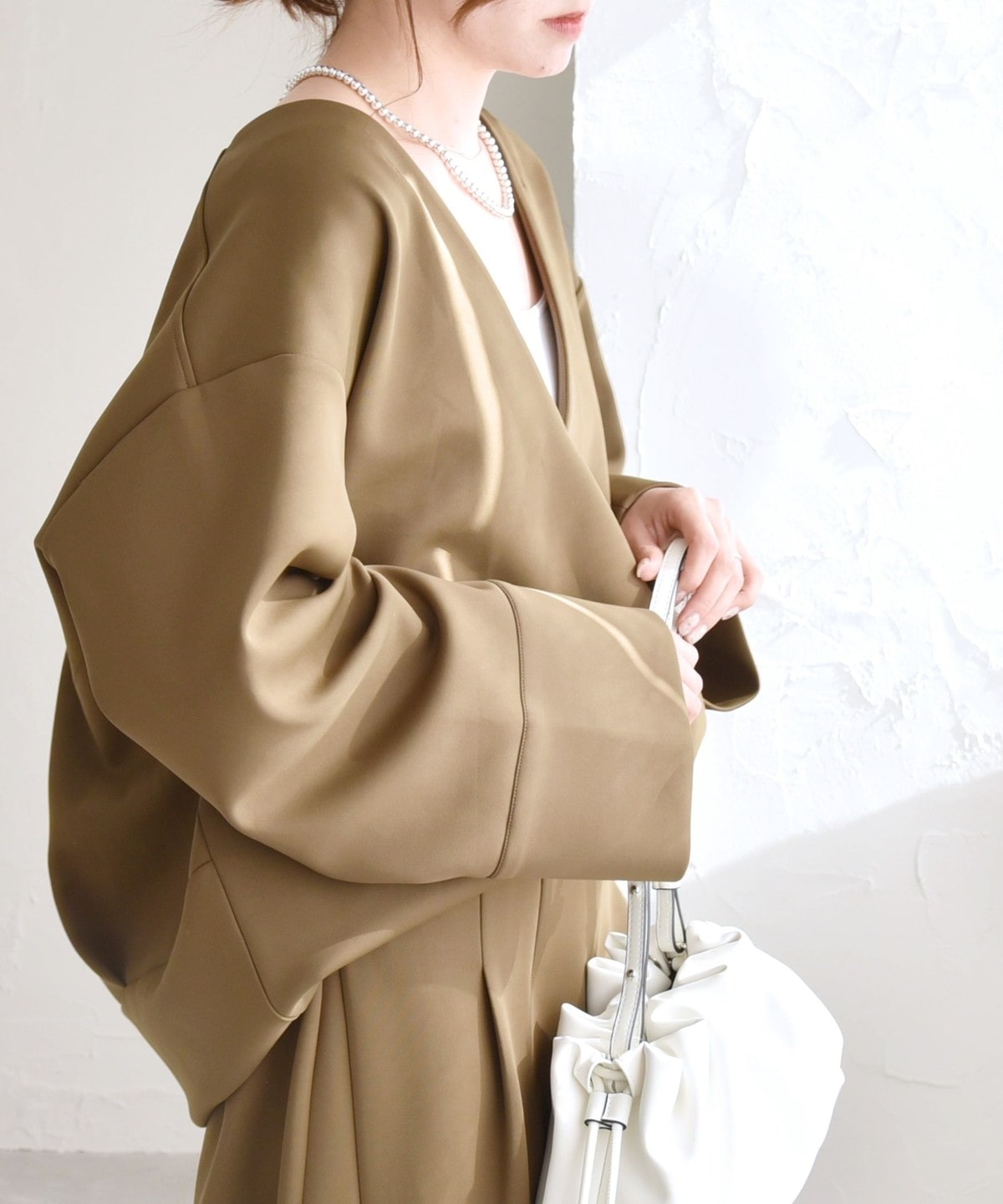 バックスタイルのコクーンシルエットがポイントのVネックプルオーバー。
