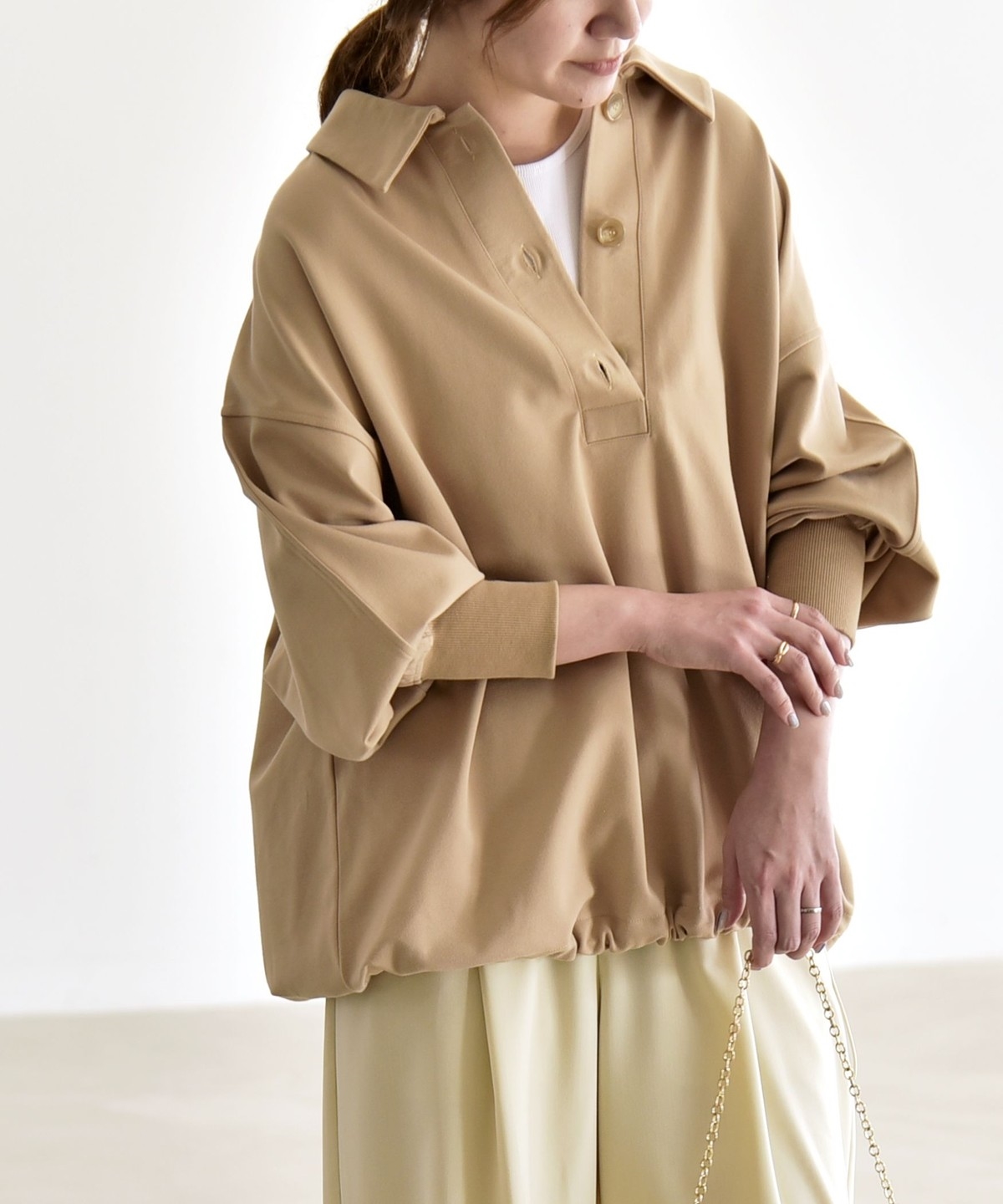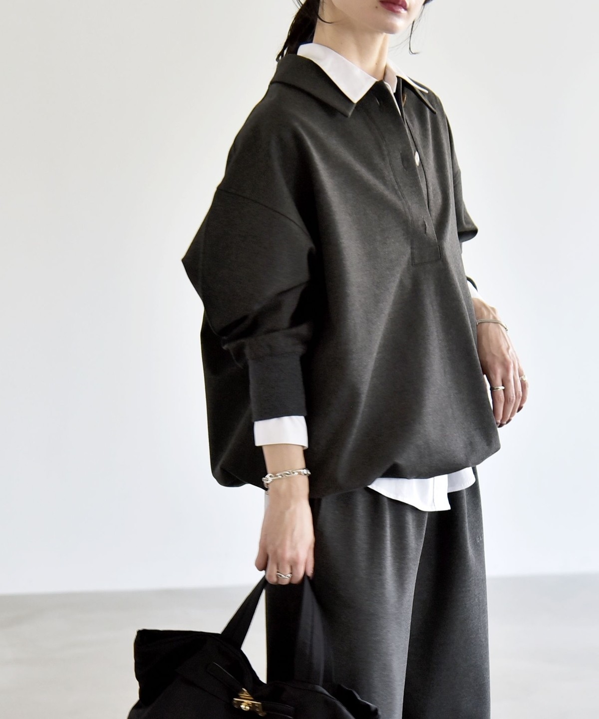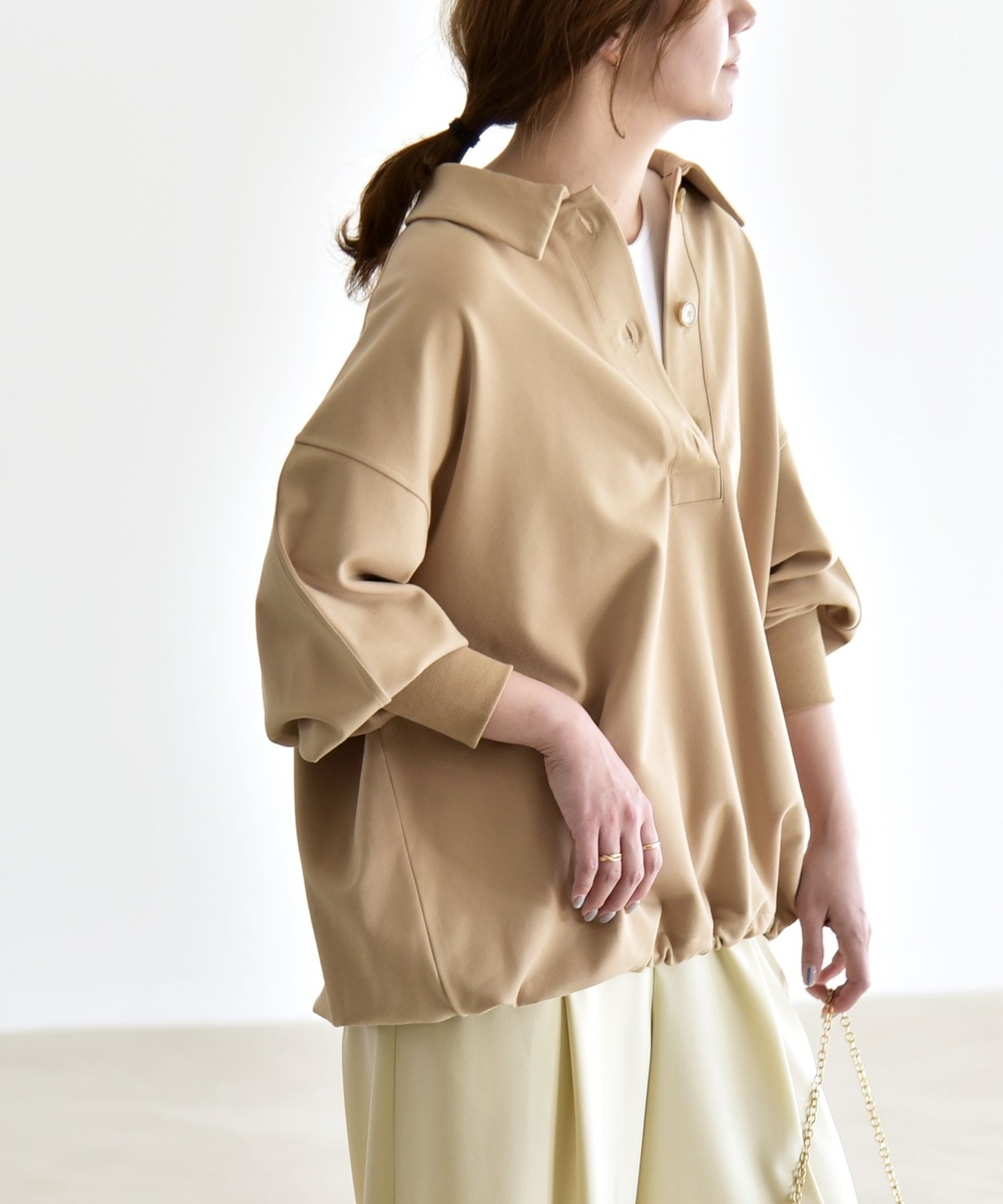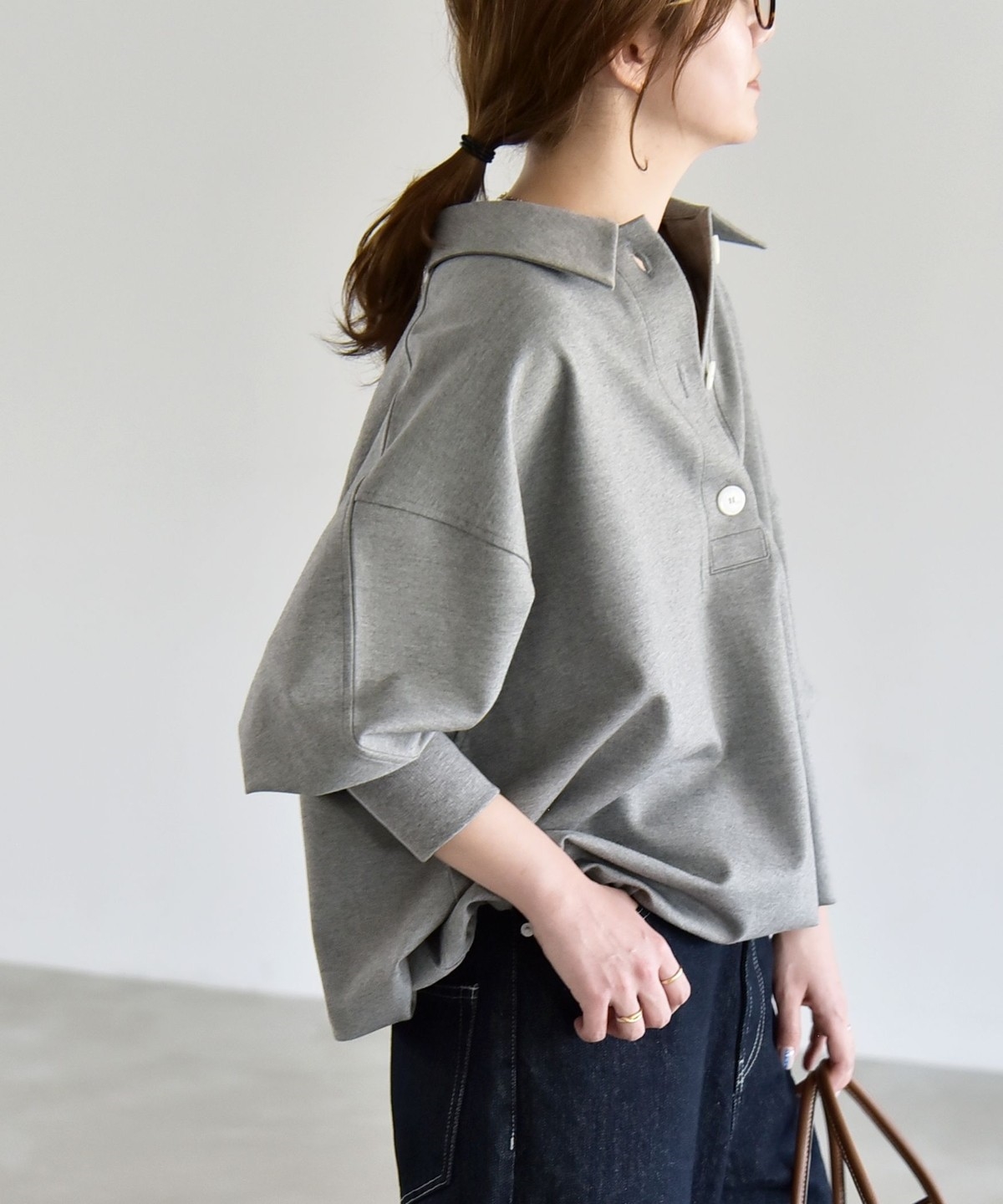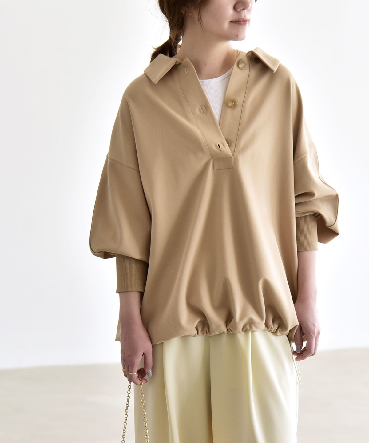ラグラン型のビックシルエットに、ドルマン袖でリラックス感のあるポロプルオーバー。