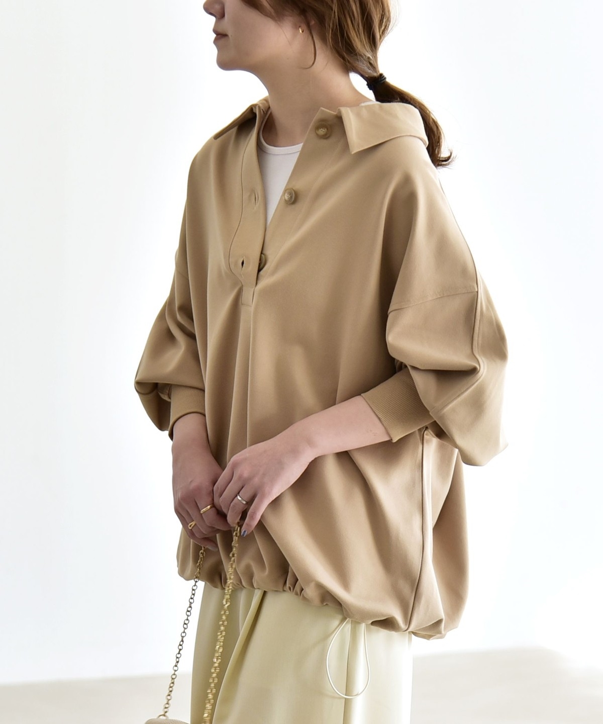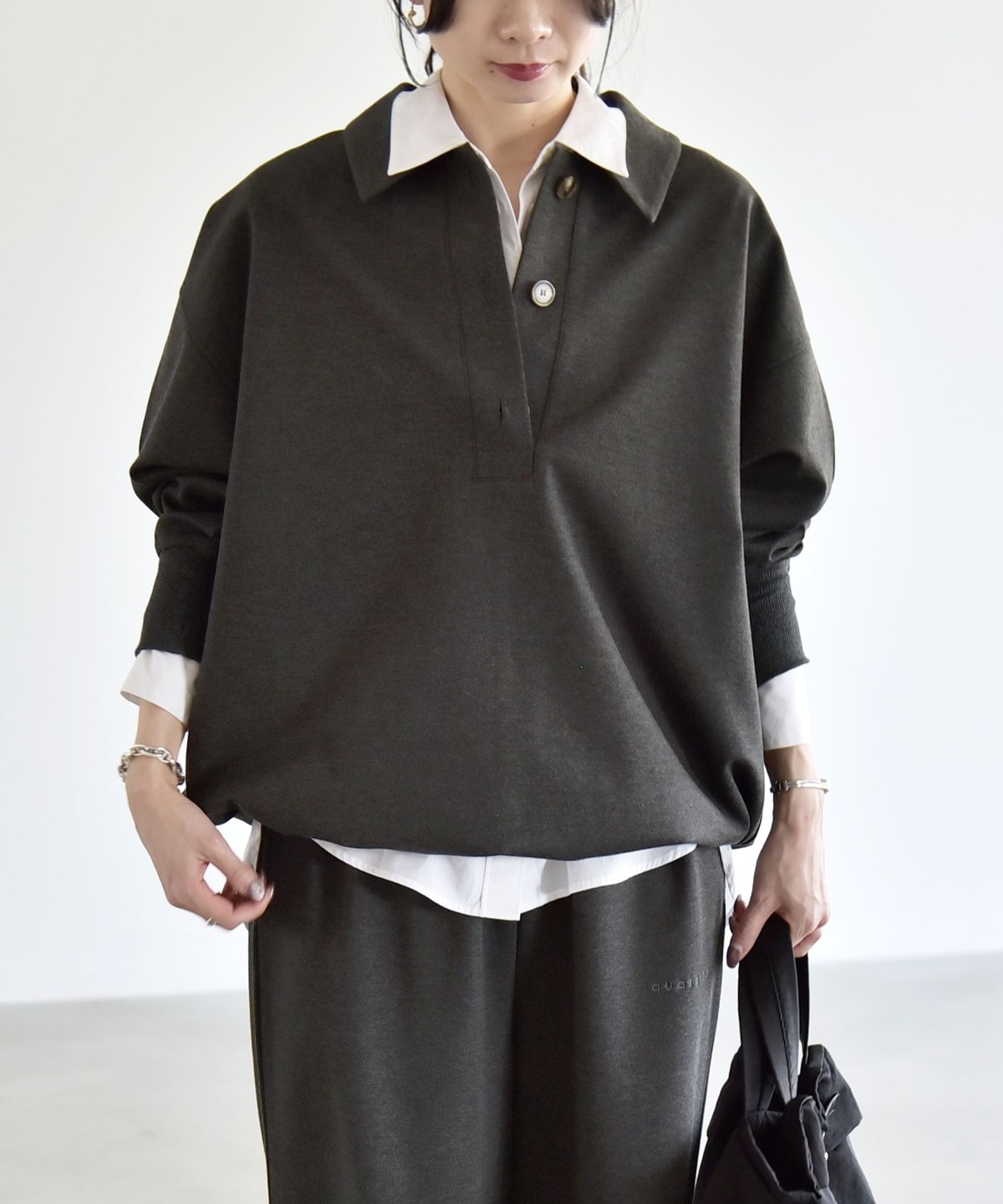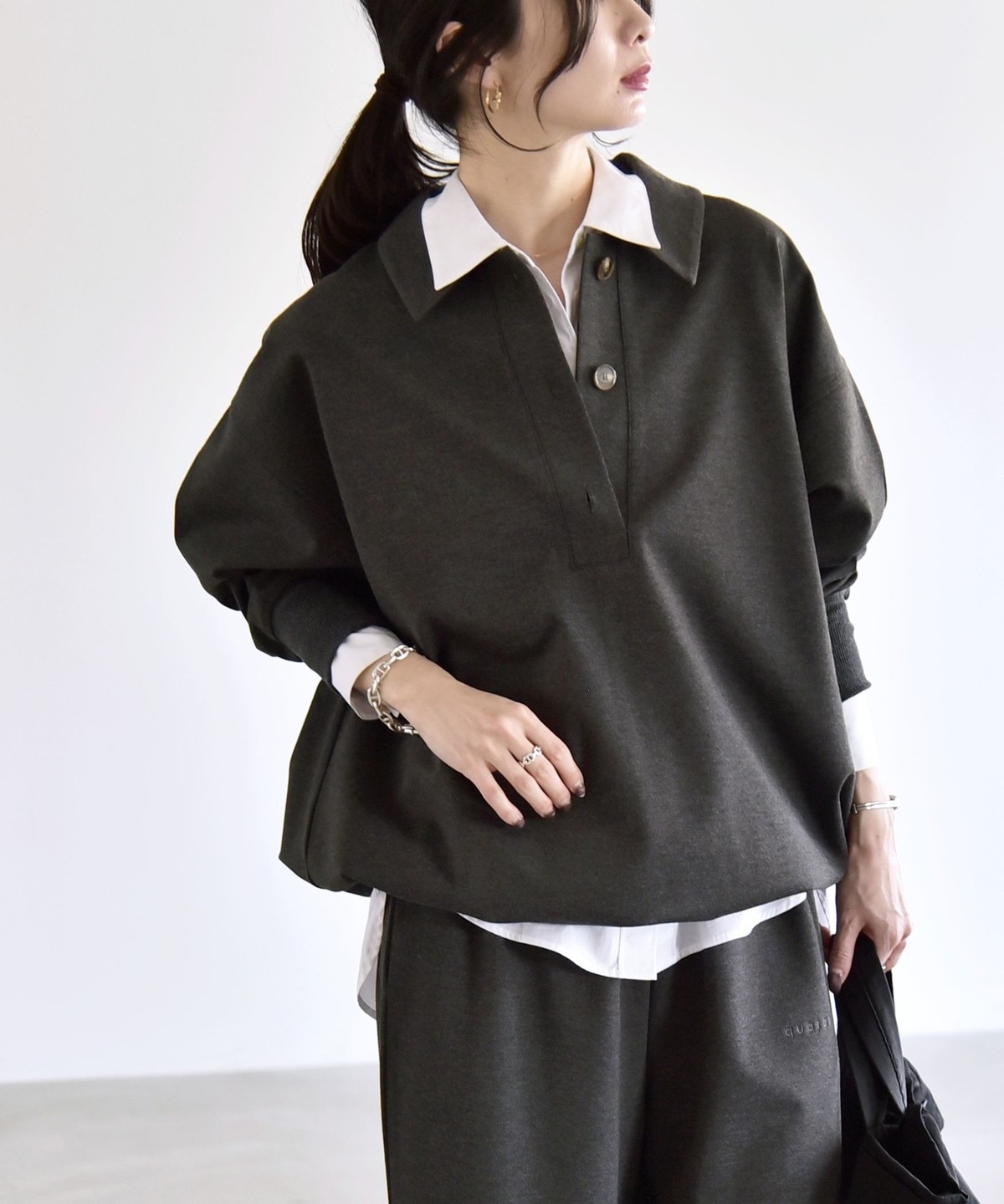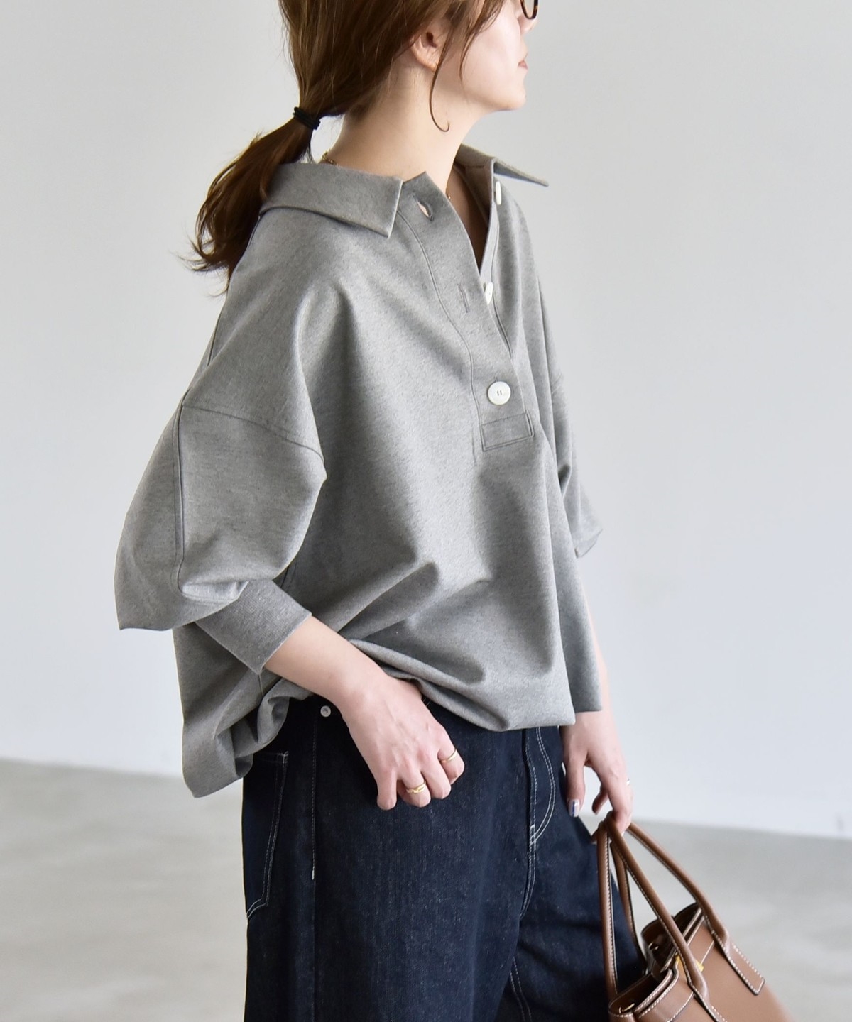 ラグラン型のビックシルエットに、ドルマン袖でリラックス感のあるポロプルオーバー。