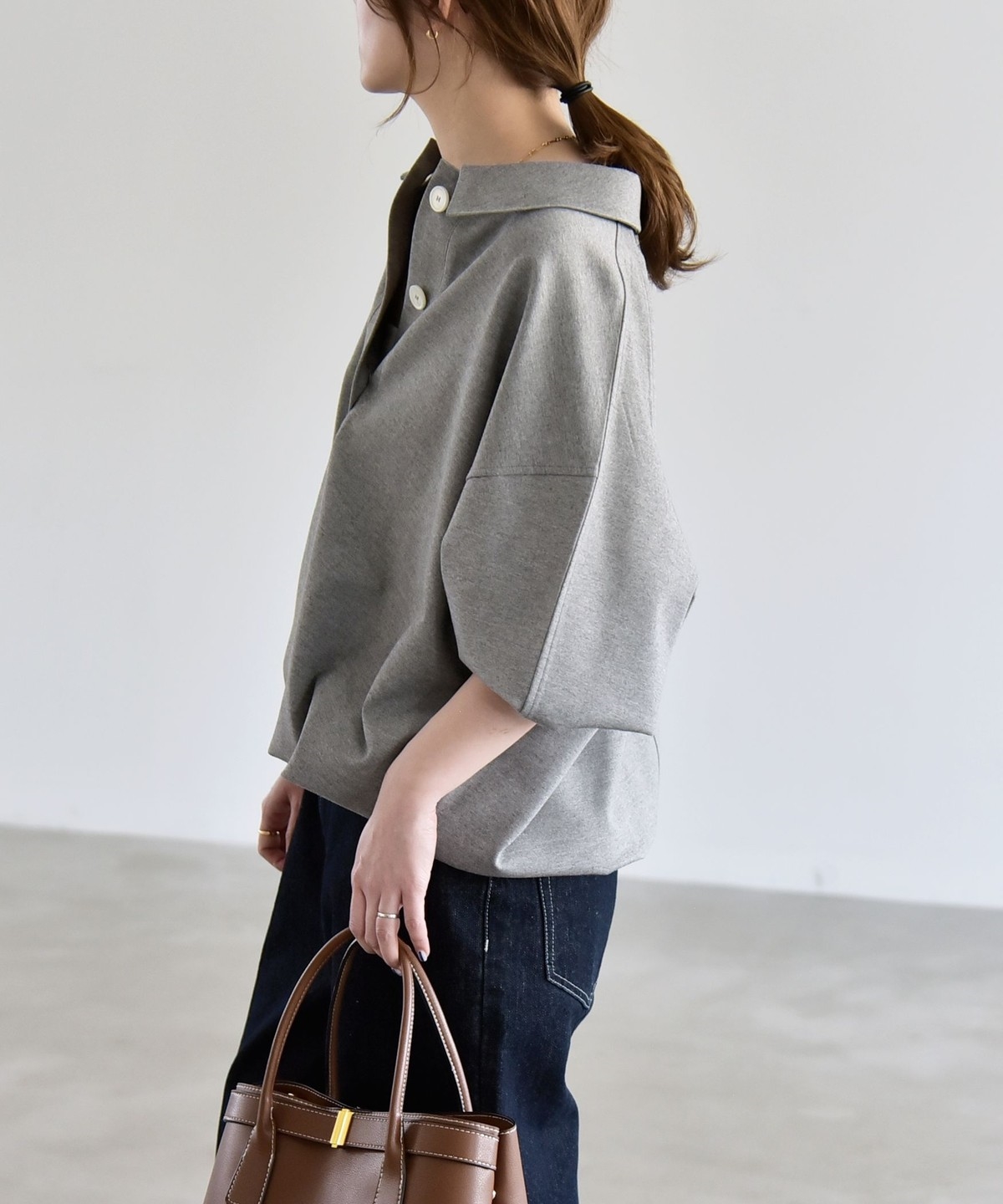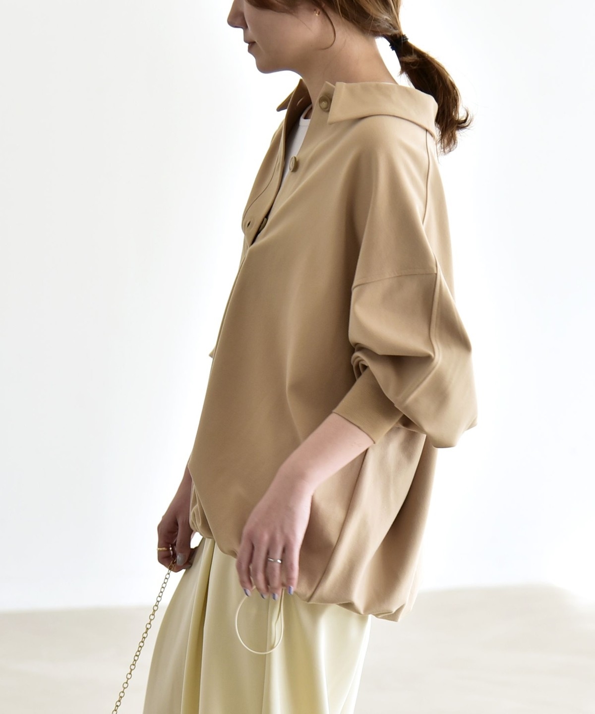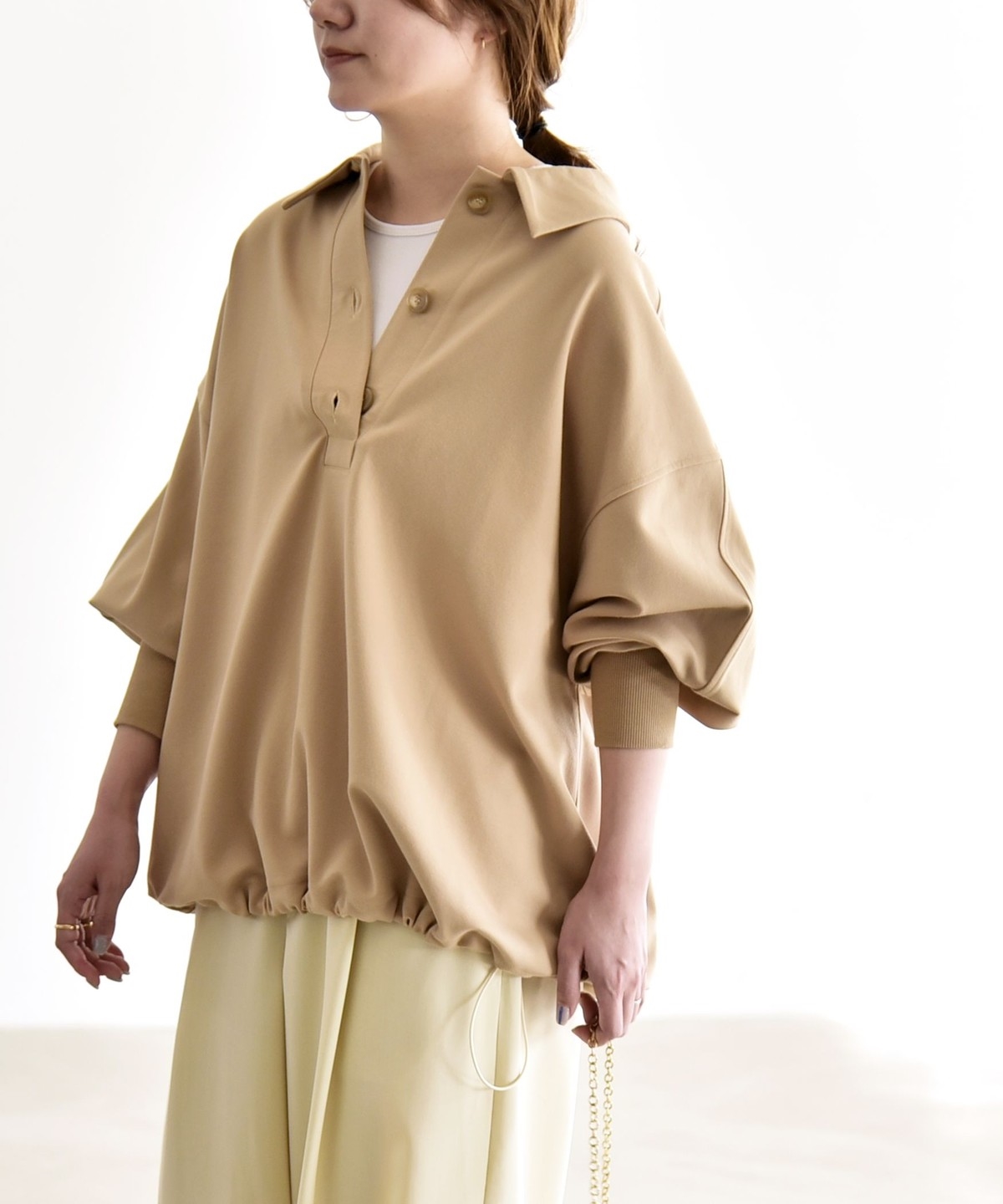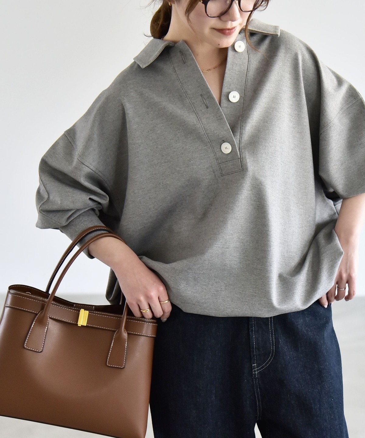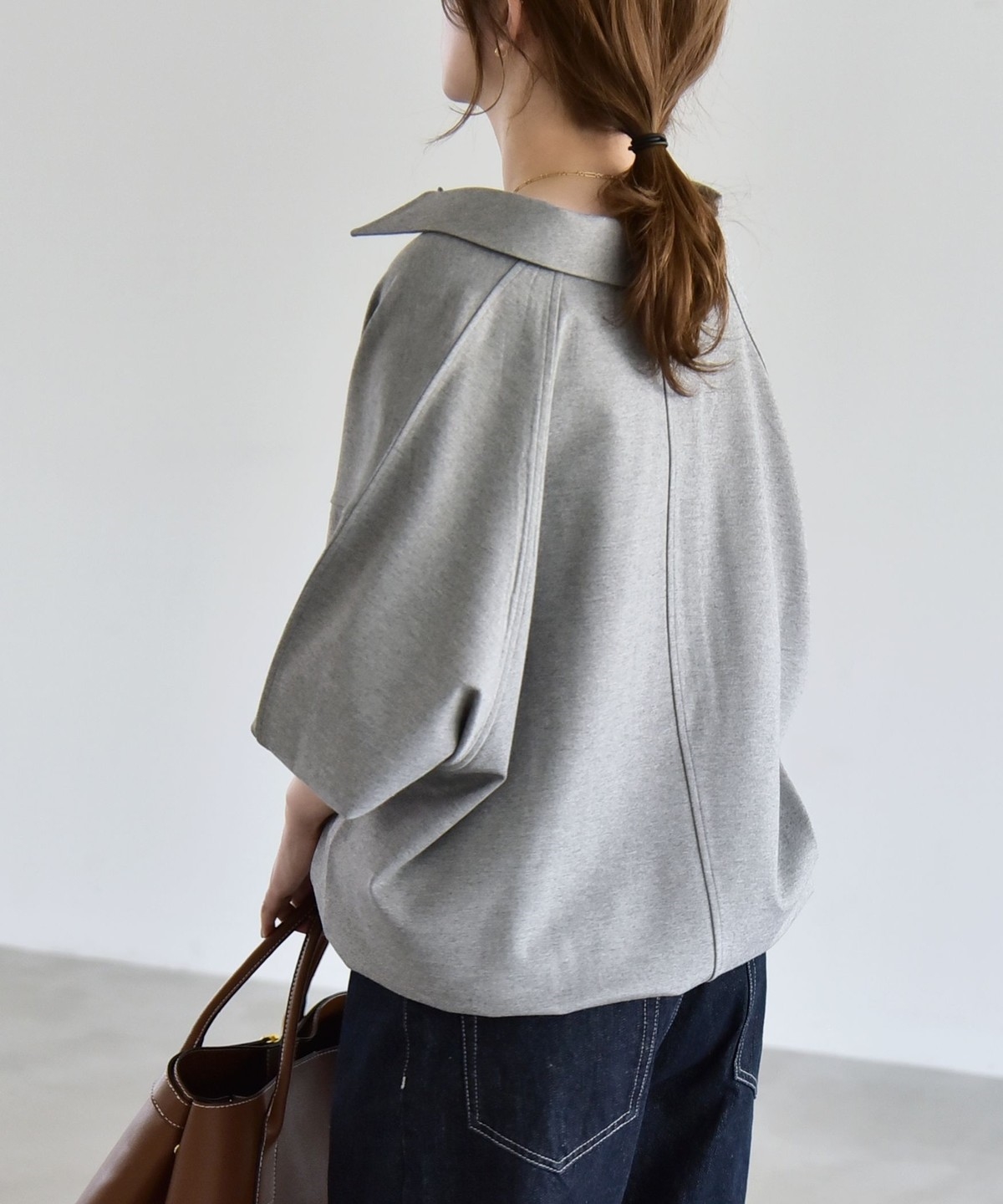 ラグラン型のビックシルエットに、ドルマン袖でリラックス感のあるポロプルオーバー。