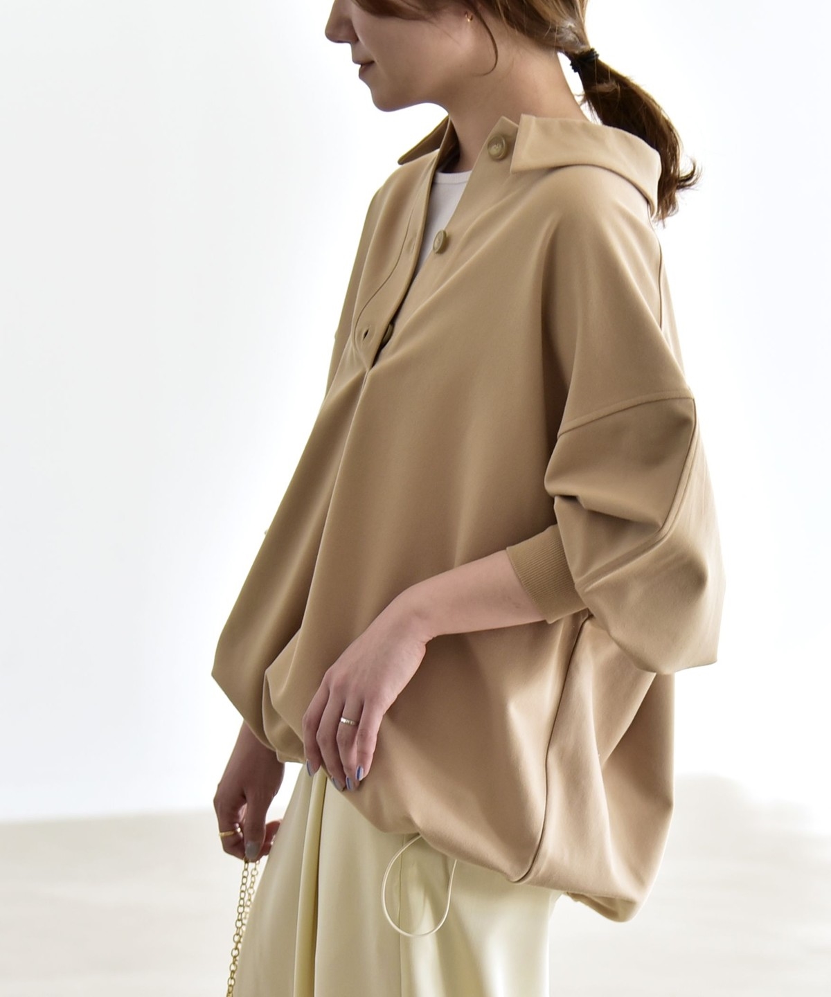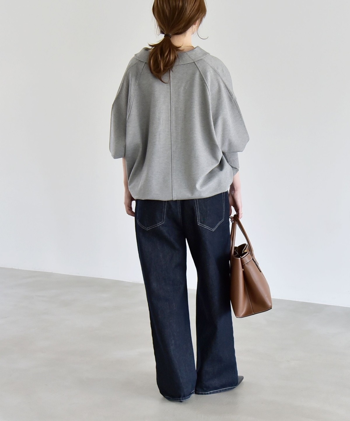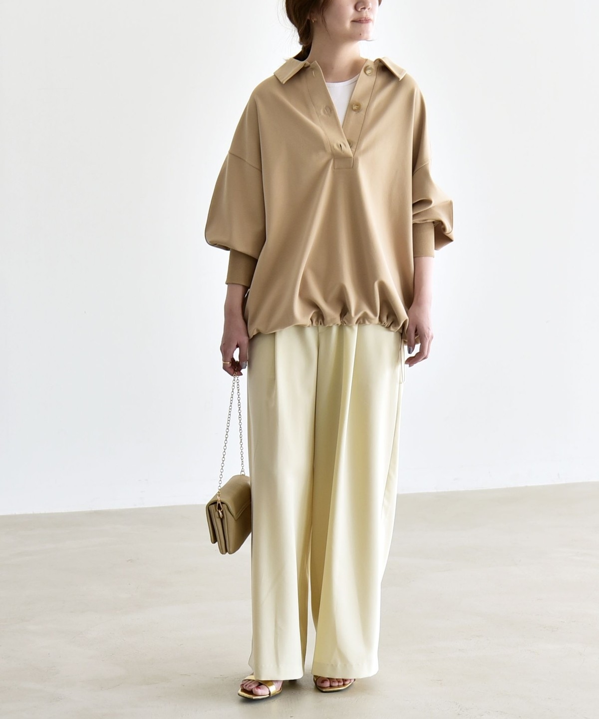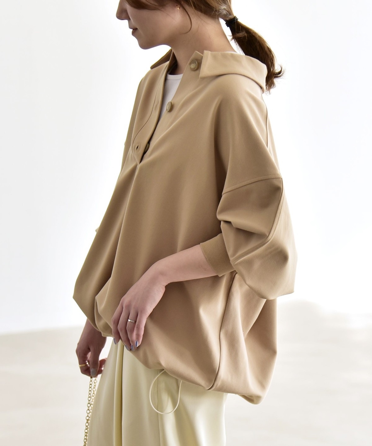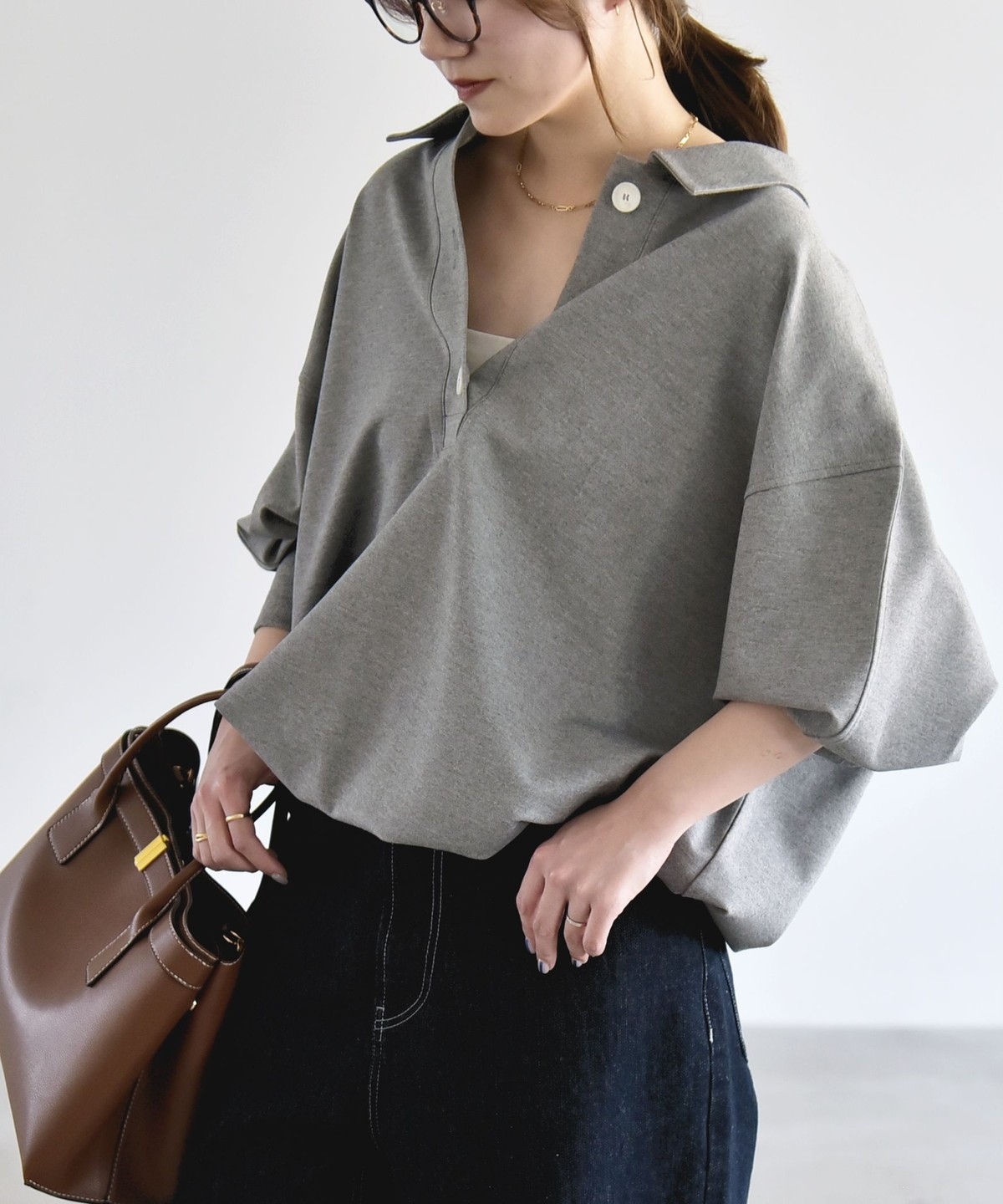 ラグラン型のビックシルエットに、ドルマン袖でリラックス感のあるポロプルオーバー。