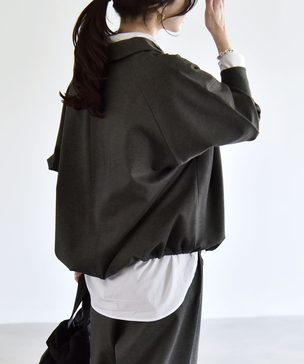 裾はドローコード付きなので、ボトムに合わせて形を変えるのもおすすめです。